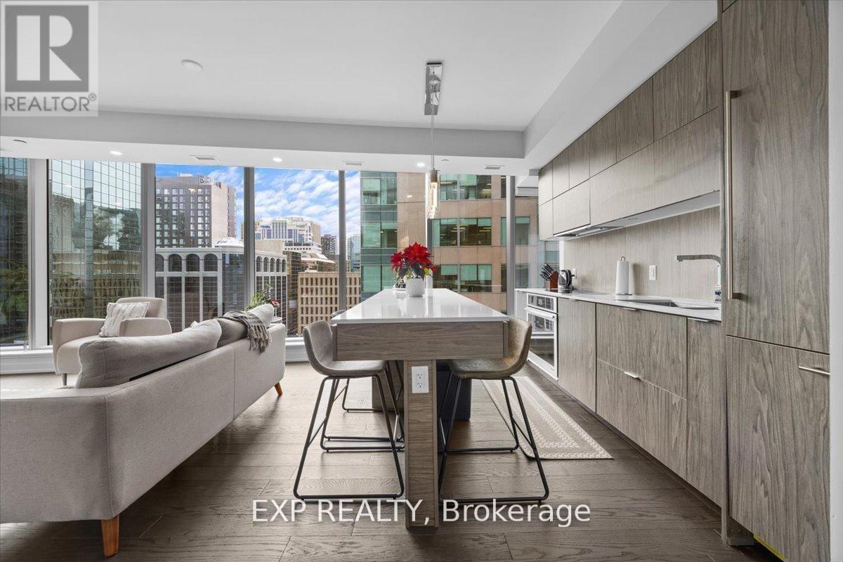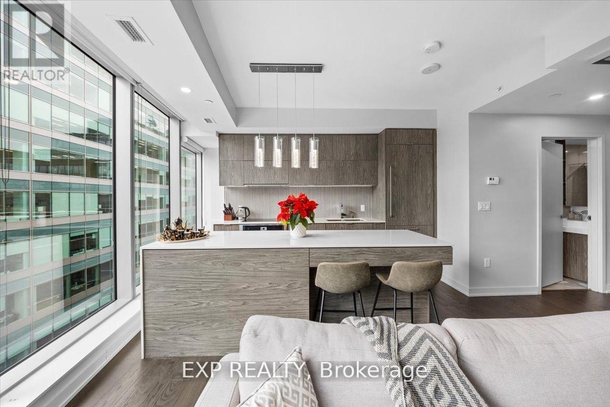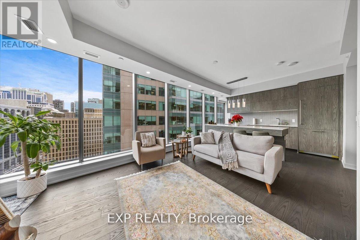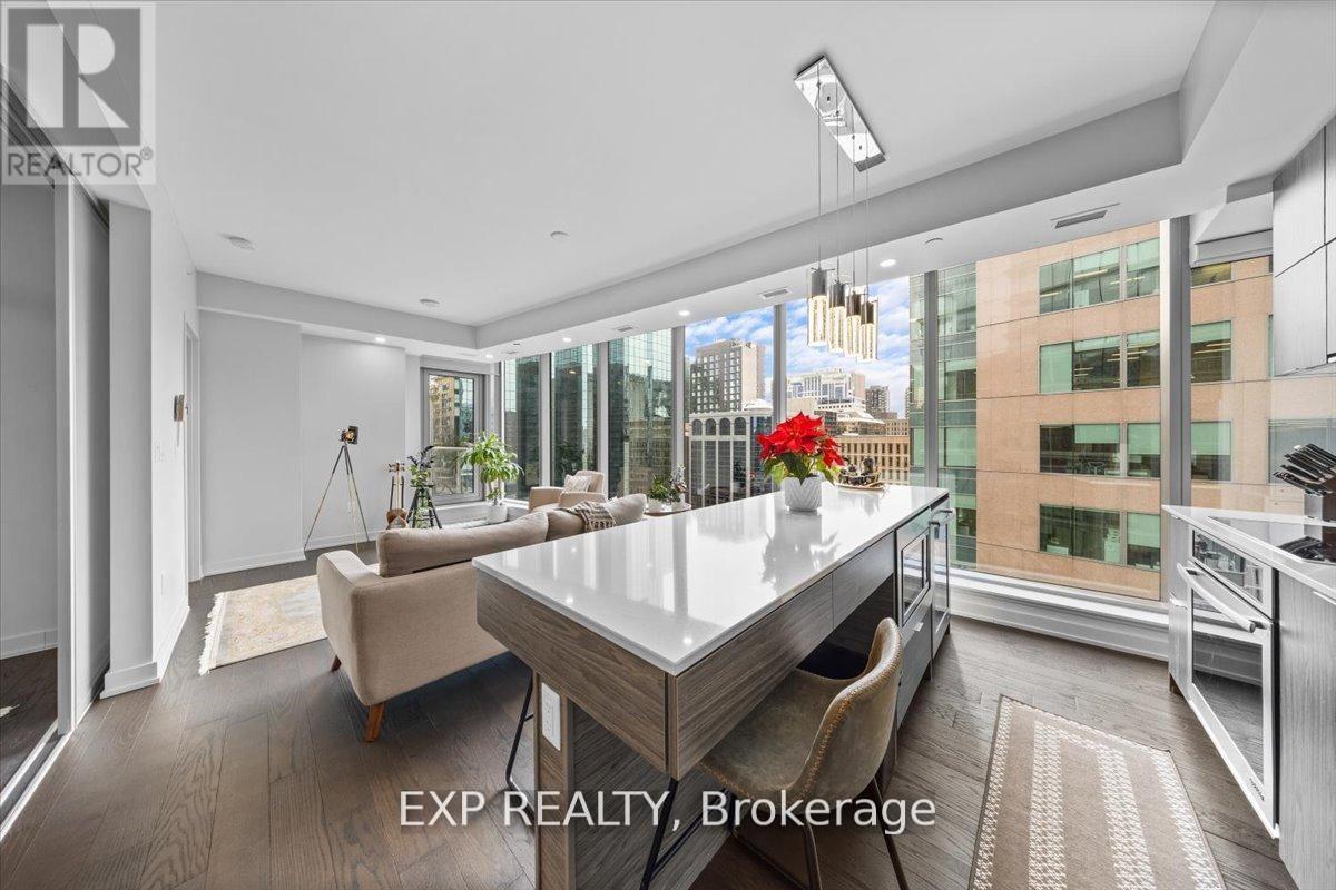 Welcome to Unit 910 at 101 Queen Street - the pinnacle of Ottawa luxury living. This stunning 2-bedroom, 2-bathroom corner suite offers an elevated lifestyle in the heart of the capital, with sweeping views of the downtown skyline framed by floor-to-ceiling windows and a private corner patio perfect for morning coffee or evening unwinding. Inside, the unit showcases high-end finishes throughout, including rich hardwood flooring and two beautifully appointed full bathrooms designed with premium materials. The thoughtful layout provides both comfort and sophistication, ideal for professionals or anyone seeking an urban sanctuary steps from it all. Located just moments from Parliament Hill, federal office buildings, boutiques, restaurants, shopping, recreation, and the future home of the Ottawa Senators, this address places you at the centre of the city's most exciting developments for years to come. 101 Queen Street is renowned for offering Ottawa's most expansive amenity collection, including a private movie theatre, a full indoor fitness centre, professional office and co-working spaces, a rejuvenating sauna, and the iconic and private access Sky Lounge overlooking Parliament Hill. This is more than a condo - it's a lifestyle defined by elegance, convenience, and unmatched access to the best of the city. Unit 910 at 101 Queen Street invites you to experience luxury living at its finest. (id:64974)