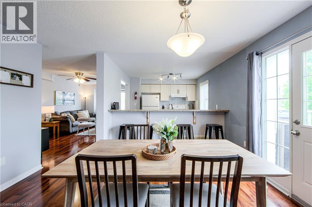Welcome to this beautifully updated corner unit townhouse, ideally located on a quiet street in the desirable Hawthorne Village neighbourhood.This popular ‘Oakgrove’ model by Mattamy Homes offers 1,353 sq. ft. of turnkey, move-in-ready living space. The ground level features a versatile den—perfect for a home office—as well as convenient laundry facilities and direct access to the garage. Upstairs, you’ll find a bright and airy open-concept layout, complete with engineered hardwood flooring, a convenient powder room, and a spacious living, dining, and kitchen area. The kitchen includes a breakfast bar and walks out to a private second-level deck, ideal for morning coffee or evening relaxation. The upper level boasts THREE generously sized bedrooms and a well-appointed 4-piece bathroom. Enjoy two-car parking in the driveway, no condo fees, and low-maintenance living. Located close to schools, parks, shopping, and transit—this home truly has it all! (id:64974)