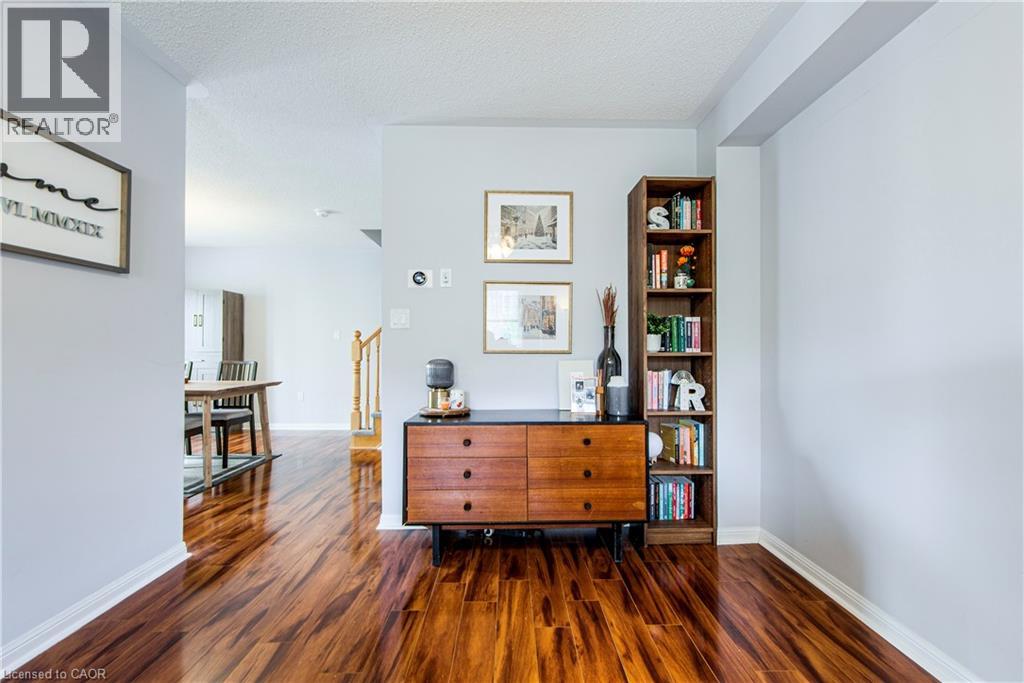 Welcome to this beautifully updated corner unit townhouse, ideally located on a quiet street in the desirable Hawthorne Village neighbourhood.This popular ‘Oakgrove’ model by Mattamy Homes offers 1,353 sq. ft. of turnkey, move-in-ready living space. The ground level features a versatile den—perfect for a home office—as well as convenient laundry facilities and direct access to the garage. Upstairs, you’ll find a bright and airy open-concept layout, complete with engineered hardwood flooring, a convenient powder room, and a spacious living, dining, and kitchen area. The kitchen includes a breakfast bar and walks out to a private second-level deck, ideal for morning coffee or evening relaxation. The upper level boasts THREE generously sized bedrooms and a well-appointed 4-piece bathroom. Enjoy two-car parking in the driveway, no condo fees, and low-maintenance living. Located close to schools, parks, shopping, and transit—this home truly has it all! (id:64974)