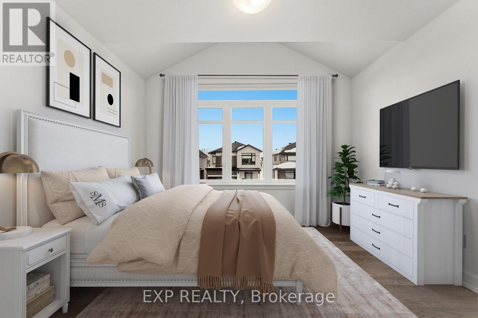 Absolute stunner!! This house has carefully thought-out upgrades. Starting our upgrade list w/hardwood stairs to the second floor AND to the finished basement. Hardwood on the main floor, the entire second floor & vinyl in the basement. Carpet-free! Wide, open concept plan with 9ft ceilings on the main floor, quartz counters in the kitchen & powder room & upgraded appliances. The living room has a gas-burning fireplace w/oak beam mantle. The kitchen features a large island with an extended bar, a great work space or for entertaining. Loads of cabinetry, including pots-and-pan drawers, pantry cabinet & stainless appliances ( including slide-in range) & chimney hood fan. As you make your way to the second floor, you will notice the beautiful oak stairway w/upgraded iron spindles & a window for natural light. Upstairs is spacious & bright with hardwood throughout the entire second floor. Large primary bedroom w/incredible walk-in closet. When we say "luxury ensuite," we really mean it. Take a look at that custom shower!! 6 ft shower w/dual showerheads, upgraded wall tile, & a mosaic shower base, plus custom glass door. Double sink floating vanity, w/quartz counters, upgraded 24x24" tile & a linen closet in the ensuite. Down the hallway, you will find 3 generously sized bedrooms w/hardwood floors, & a walk-in closet in bedroom 2. Main bathroom w/beautiful 24x24" upgraded floor tile, & quartz counters to complement. Second-floor laundry room has ceramic tile flooring & added upper cabinets for added storage. As we make our way down to the basement level, you will again notice hardwood stairs from the main floor to the basement. Vinyl flooring, large windows, & a 3-piece bathroom w/quartz counters & a shower make this level of the home the perfect spot for games room, TV nights, or entertaining. Situated in the highly sought-after Riverside South community, on a quiet street surrounded by detached homes, makes this home the perfect choice! Some photos virtually staged (id:64974)