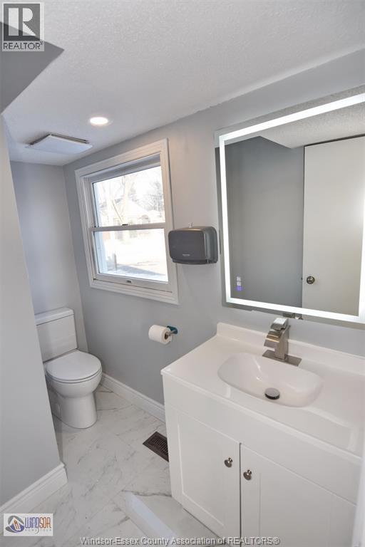 FULLY RENOVATED AND READY FOR NEW TENANTS TO OCCUPY W/APPROX 1350 SQ.FEET OF FINISHED USABLE SPACE. FANTASTIC FRONT RD LOCATION IN LASALLE FOR THIS 1.5 STORY COMMERCIAL PROPERTY WITH HIGH ROAD TRAFFIC AND HIGH VISUAL EXPOSURE SITUATED DIRECTLY IN FRONT THE NEW LASALLE ""EVENT CENTER AND PARK"". PERFECT FOR MANY W2 COMMERCIAL USES THAT MAY INCLUDE MEDICAL AND PROFESSIONAL SERVICES, OFFICE, CLINIC, FLORIST, STUDIO, SALON, RETAIL SALES ETC ETC. THE BUILDING IS SOLID OFFERING AN OPEN PALET OF USES. MAINTENANCE FREE EXTERIOR. 2 BATHROOMS, FULL BASEMENT. MAIN FLOOR WITH MEZZANINE & 3 ADDITIONAL ROOMS. UPPER 2ND FLOOR WITH ATTRACTIVE LARGE SKYLIGHTS. NEWER FURNACE & C-AIR. SOUTH FACING SIGN W/TIMED LIGHTS. THE CORNER LOT PROVIDES ""HUGE FRONT"" ROAD SIGNAGE POTENTIAL. COMPLETE WITH STORAGE GARAGE, SIDE AND REAR PAVED ""PRIVATE"" PARKING FOR AT LEAST 7 CARS. PUBLIC BUS ROUTE IN FRONT. FAST POSSESSION AVAILABLE. (id:64974)