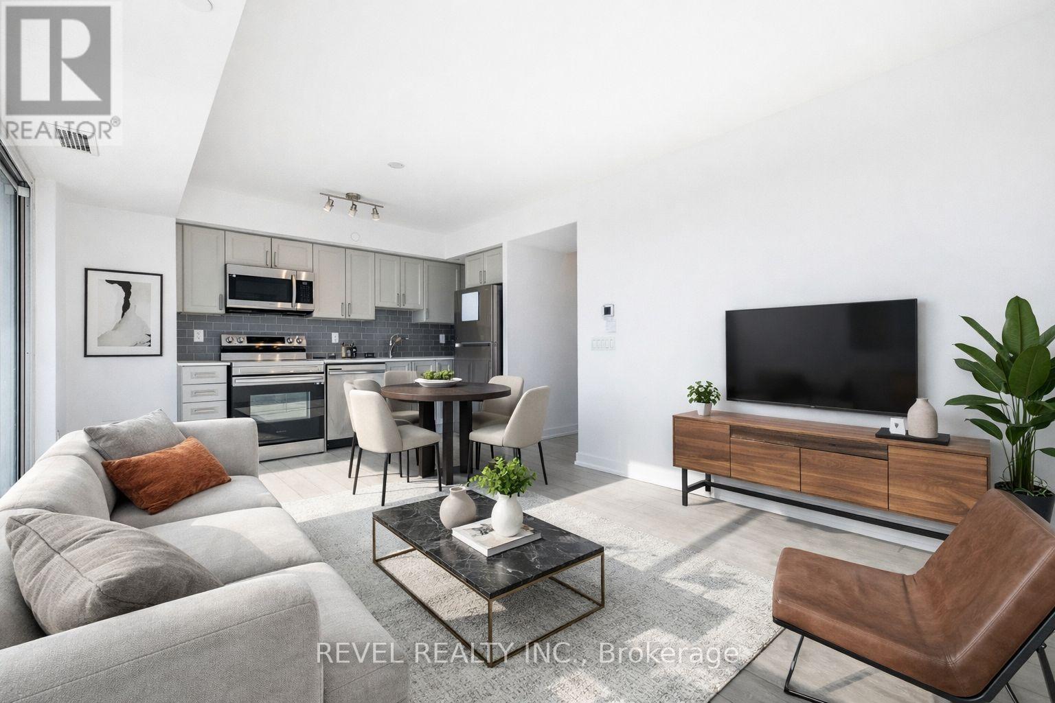 Welcome to Universal City Condos. This bright and modern 2-bedroom plus den, 2-bath suite features a functional open-concept layout and desirable southeast exposure, allowing for abundant natural light throughout the day. The unit offers two private balconies, perfect for enjoying morning sun and outdoor living. The contemporary kitchen is equipped with brand new stainless steel appliances, including fridge, stove, dishwasher, microwave, and exhaust fan, along with an upgraded extra-height cabinet above the fridge for added storage. Ideally located just steps to Pickering GO Station and minutes to Highway 401, Pickering Town Centre, Durham Live Casino, the marina, and scenic waterfront trails. Residents enjoy resort-style amenities such as an outdoor pool, fitness centre, party room, and 24-hour concierge, offering a convenient and well-connected lifestyle in one of Pickering's most sought-after communities. (id:64974)