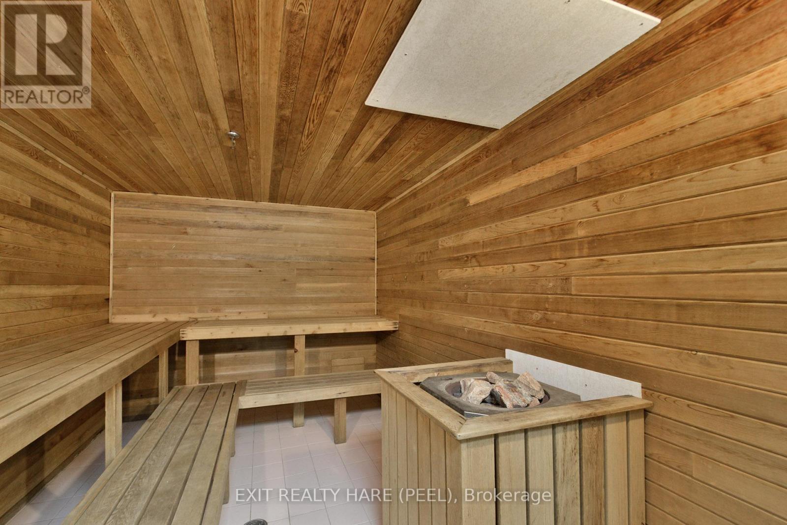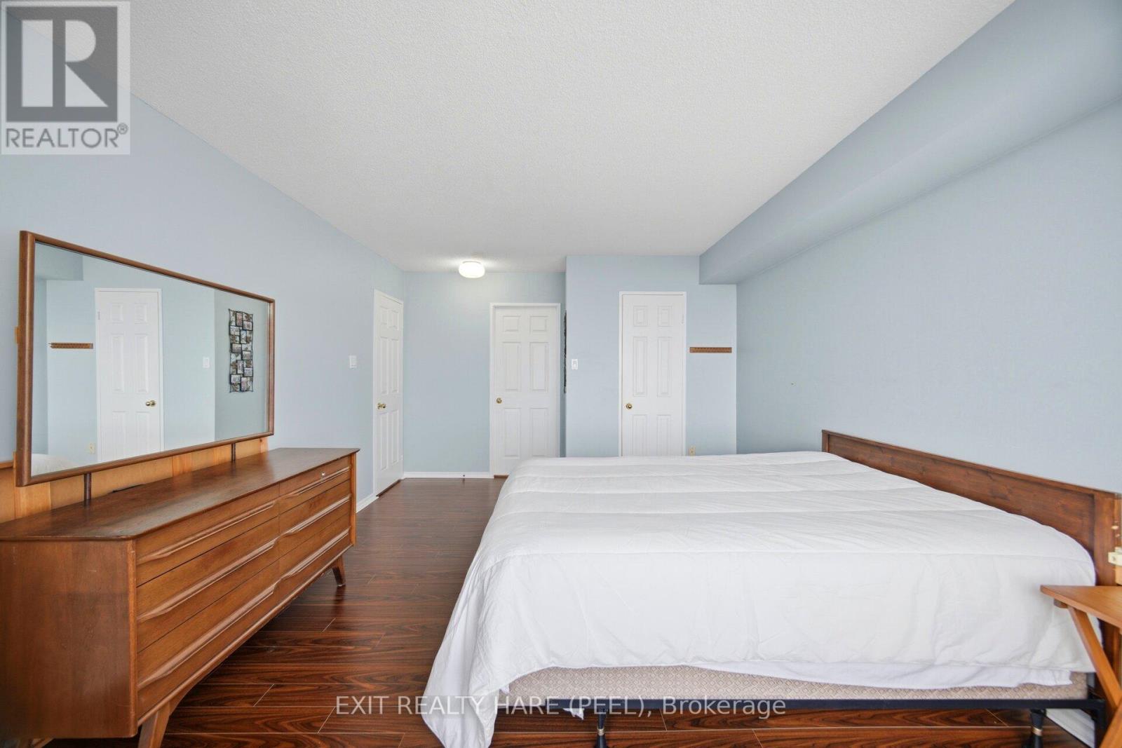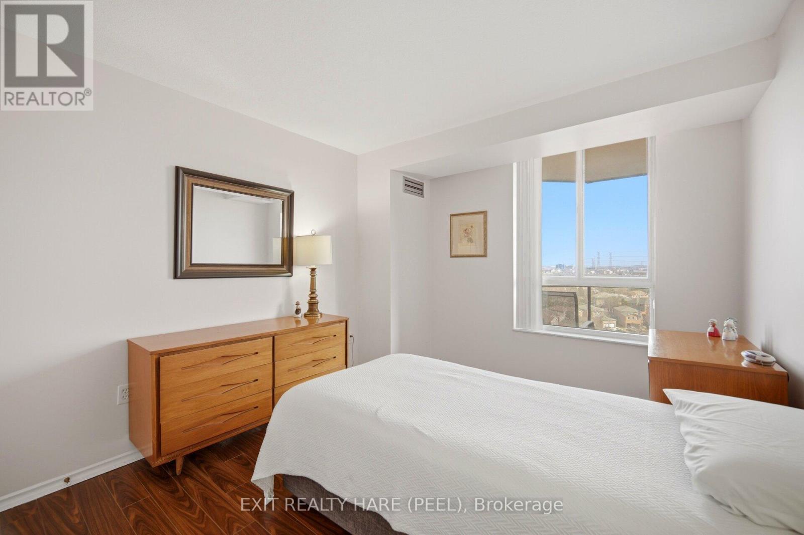 Beautiful "home in the sky" offering stunning views and an expansive layout! This bright and spacious condo features 2 bedrooms, 2 full bathrooms, plus a versatile den and a sun-filled solarium-perfect as an additional living space, reading room, or retreat. Oversized ensuite laundry room, 2 parking spots (Tandem) and locker. Enjoy the large living area with a defined dining space, ideal for entertaining. The eat-in kitchen features newer wood cabinetry and s/s appliances. Updated flooring throughout adds a fresh, modern feel. The primary suite includes updated bathroom cabinetry and an accessible shower, W/I closet. Step out onto your private balcony and take in the view. A true gem with incredible amenities including an outdoor pool, sauna, tennis court, squash courts, shuffle board, library, billiards rm, outdoor BBQ area, putting green, party rm and a fitness room. Close to Shoppers World, Schools, Brampton Transit, Easy Access To 401, 407 and 403 Highways, and Steps To The Coming-Soon Hurontario LRT!! Shows 10+. (id:64974)