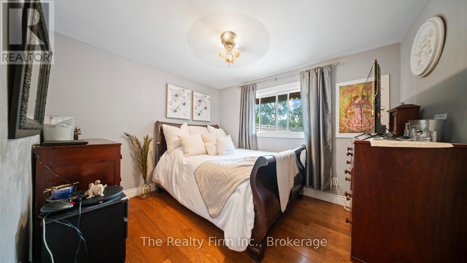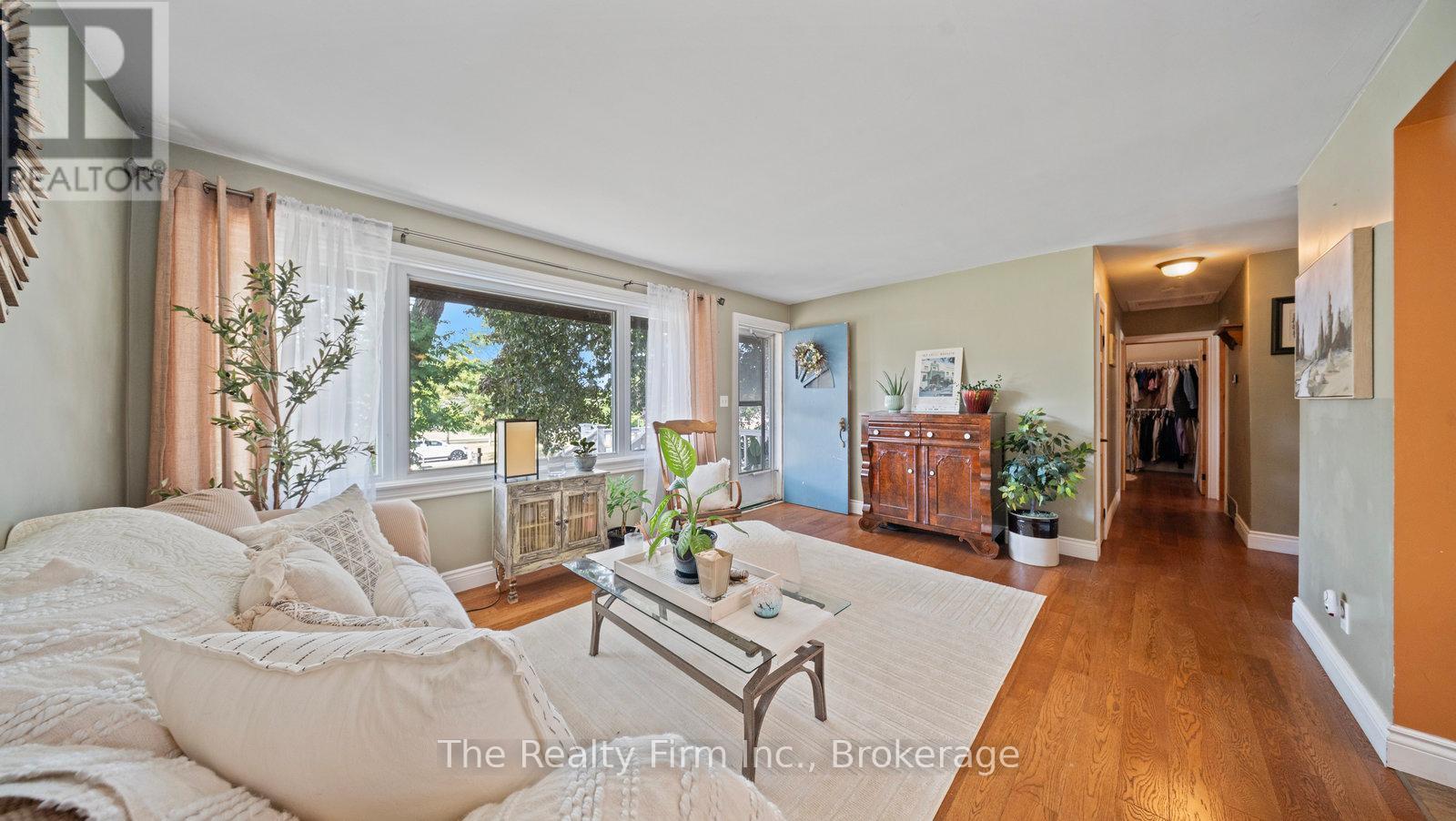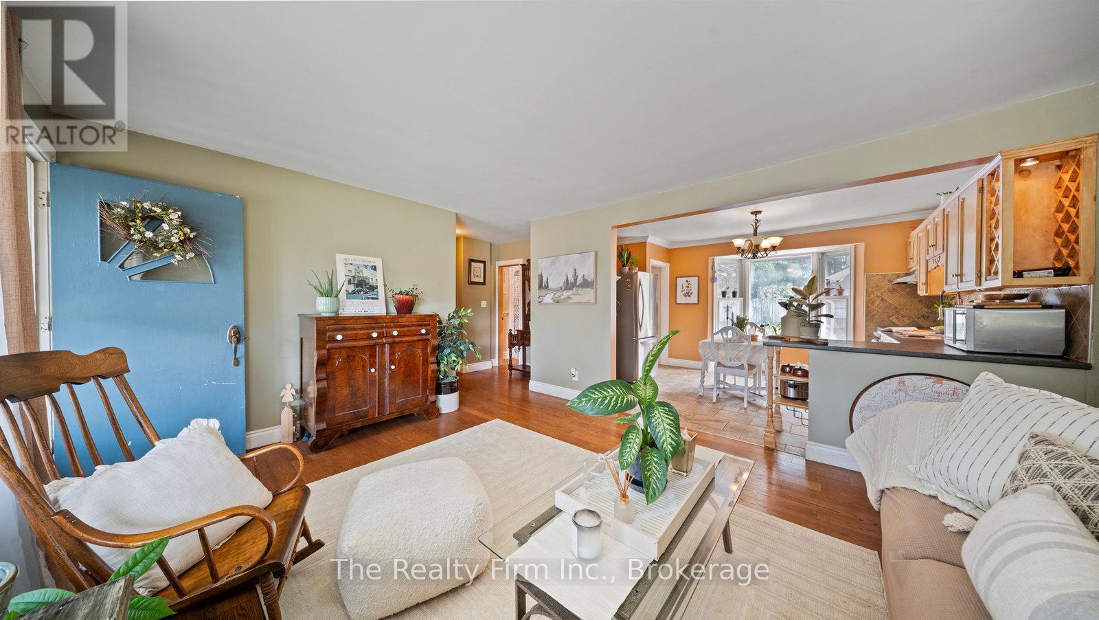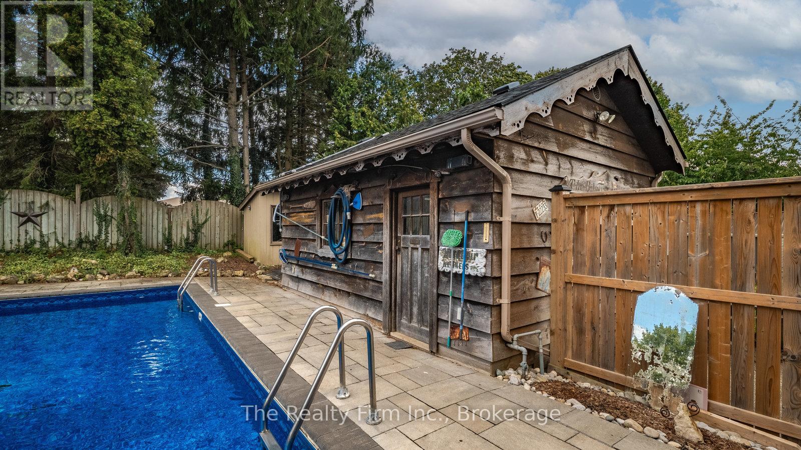 Welcome to a home that feels like a retreat in every season. Thoughtfully maintained and full of warmth, this 4-bedroom (one currently used as a dressing room), 2-bath raised bungalow offers the perfect blend of comfort, character, and modern updates. Inside, gleaming hardwood floors guide you through a welcoming layout that flows easily from the bright living room to the functional kitchen - ideal for everyday living and entertaining alike. The fully finished lower level expands your space with a cozy rec room, a charming saloon-inspired bar, an additional bedroom and bath, plus flexible space for a home office, gym, or playroom. Mechanical updates throughout provide peace of mind, while the home's thoughtful design invites connection and comfort year-round. Outdoors, enjoy a private yard with a covered porch overlooking a sparkling inground pool, detached garage, and plenty of room to gather and host summer get-togethers or quiet evenings by the fire pit. Perfectly positioned in a family-friendly neighbourhood just steps from Eastdale Public School, beautiful parks, major shopping, and easy access to the 401 and 403, this is a place where community, convenience, and lifestyle come together effortlessly. Come and see it for yourself - you'll feel right at home. (id:64974)