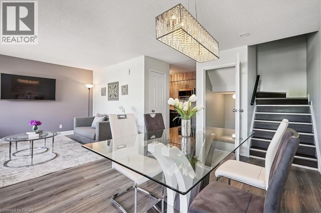 Welcome to this charming 2-bedroom condo, perfectly located on Hamilton’s East Mountain! Enjoy the convenience of being steps from shopping, right on a bus route, and just minutes to the LINC and Red Hill expressways. The main level features updated laminate flooring, a stylishly refreshed kitchen with modern appliances, a separate dining area, in-suite laundry, and a walkout to your own private balcony for fresh-air relaxation. Upstairs, you’ll find two bright bedrooms and an updated bathroom. Additional highlights include a glass French door, updated lighting, and budget-friendly condo fees. Quick possession is available – move in and enjoy! (id:64974)