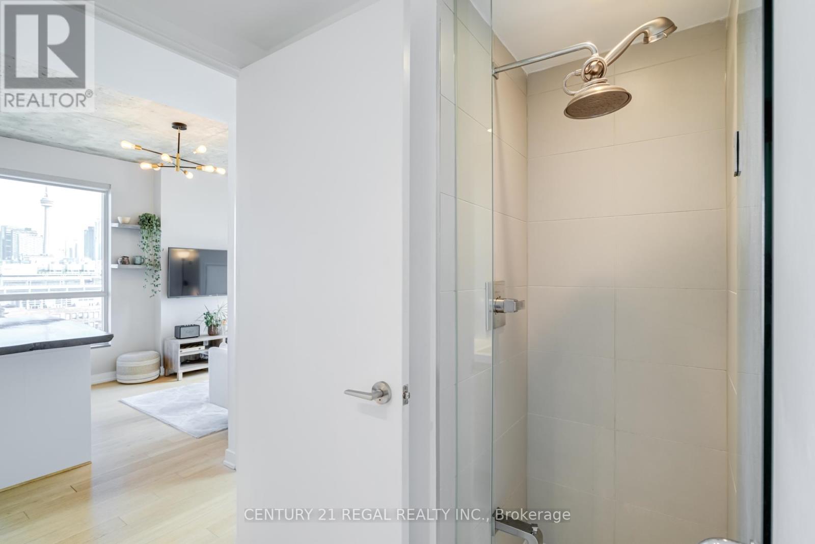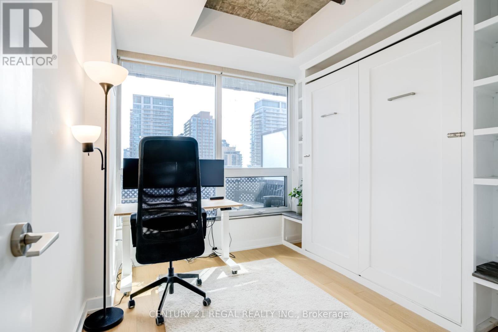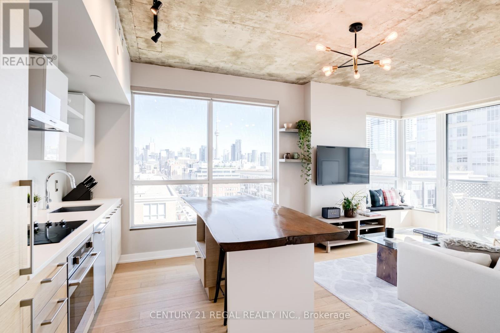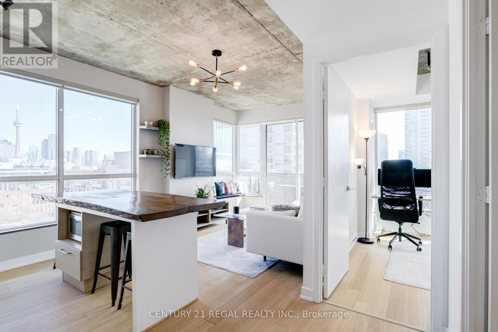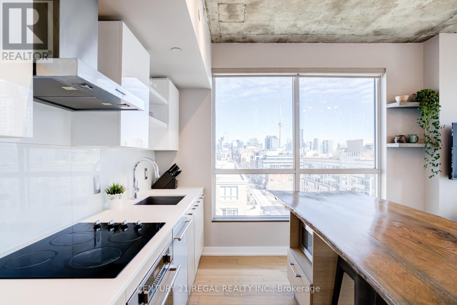 This stunning 2 bedroom, 2 bathroom southeast corner suite is a must-see! Located in the heart of King West, this sun-drenched unit offers incredible east-facing views of the downtown skyline and the CN Tower, along with beautiful southerly glimpses of the lake. The suite features 9ft hard loft ceilings and an expansive open-concept layout, making it perfect for both relaxing and entertaining.The spacious primary bedroom comes with a custom-built closet, while the second bedroom features a clever Murphy bed to maximize space. The modern kitchen is equipped with a custom island counter, ideal for cooking or enjoying a casual meal, and opens up to the living area which is flooded with natural light thanks to large windows throughout. Hardwood floors run seamlessly throughout the suite, adding a touch of elegance to the space. Step outside to the generous 95 sq ft balcony, perfect for enjoying your morning coffee or taking in the stunning views of the city. The parking spot is a standout feature, it's large and conveniently located near the elevator for easy access. Everything you could want is right at your doorstep. TTC, trendy King West shopping, and exceptional restaurants are just a short walk away. For outdoor enthusiasts, Trinity Bellwoods Park, Massey & Stanley Parks, Liberty Village, and the Waterfront Trails are all within minutes. The nearby No Frills, Metro, LCBO, Tim Hortons, Starbucks and pharmacy add to the convenience of the location, making this an unbeatable lifestyle opportunity. Dont miss out on this remarkable suite with its incredible views, modern features, and unbeatable location. (id:64974)