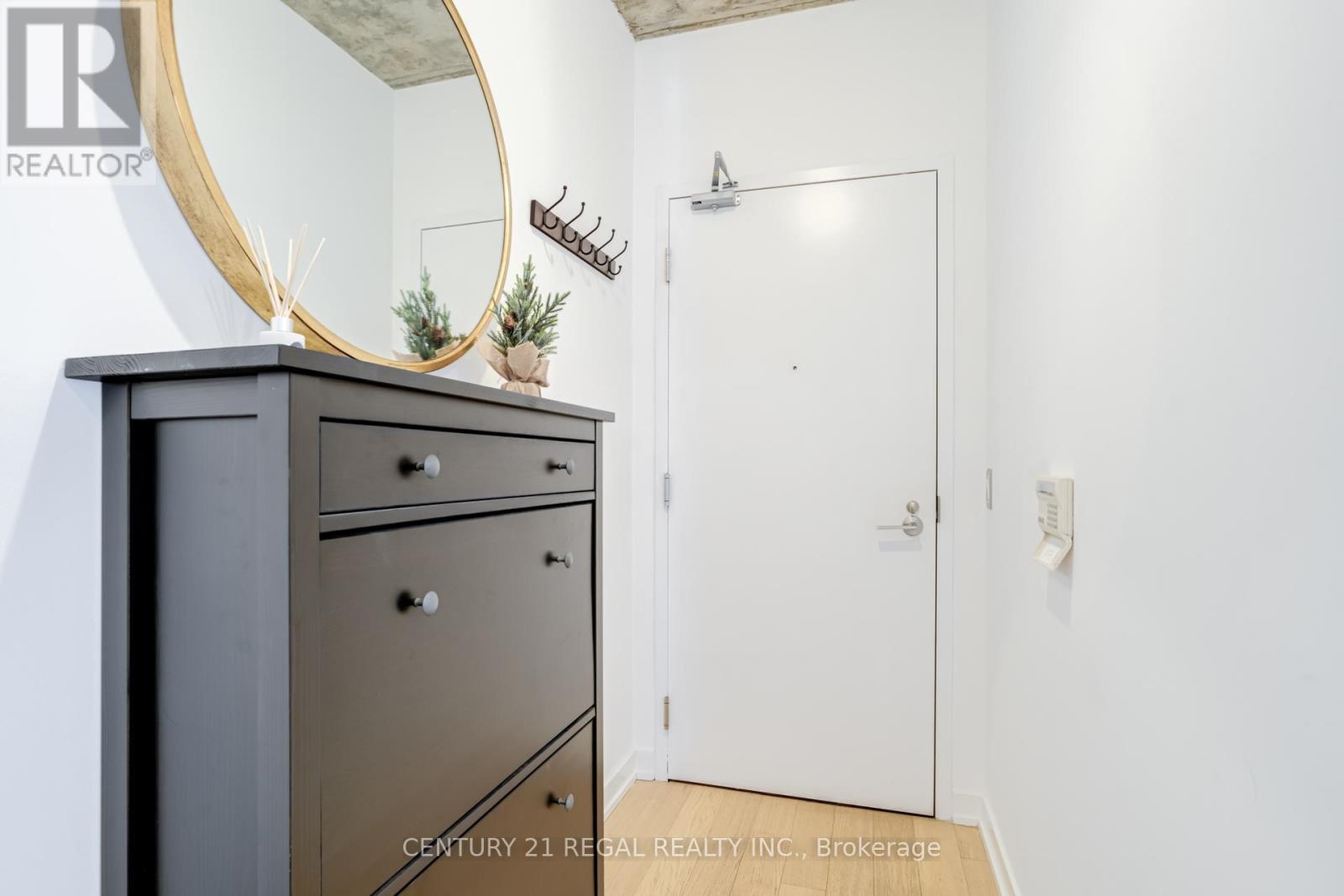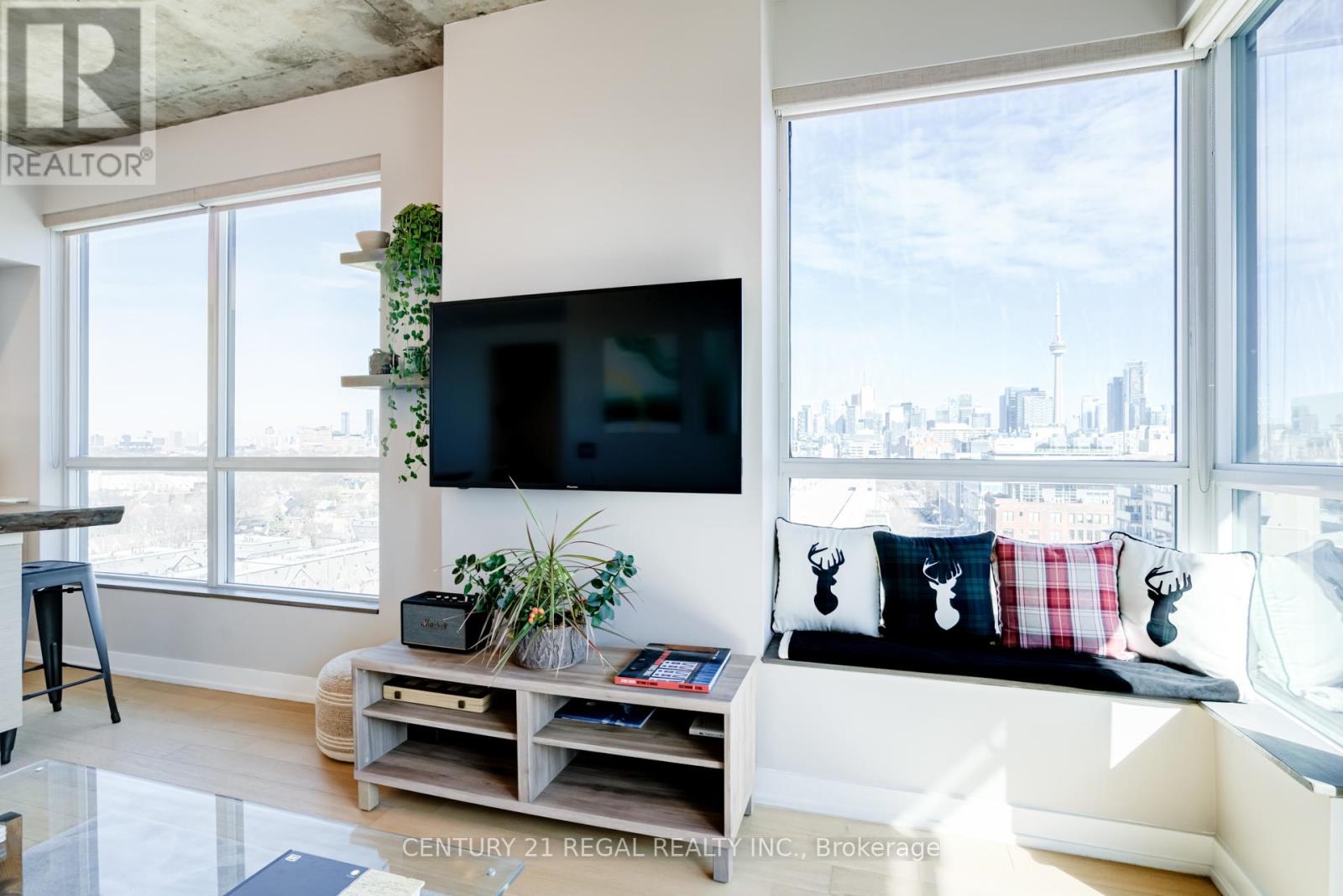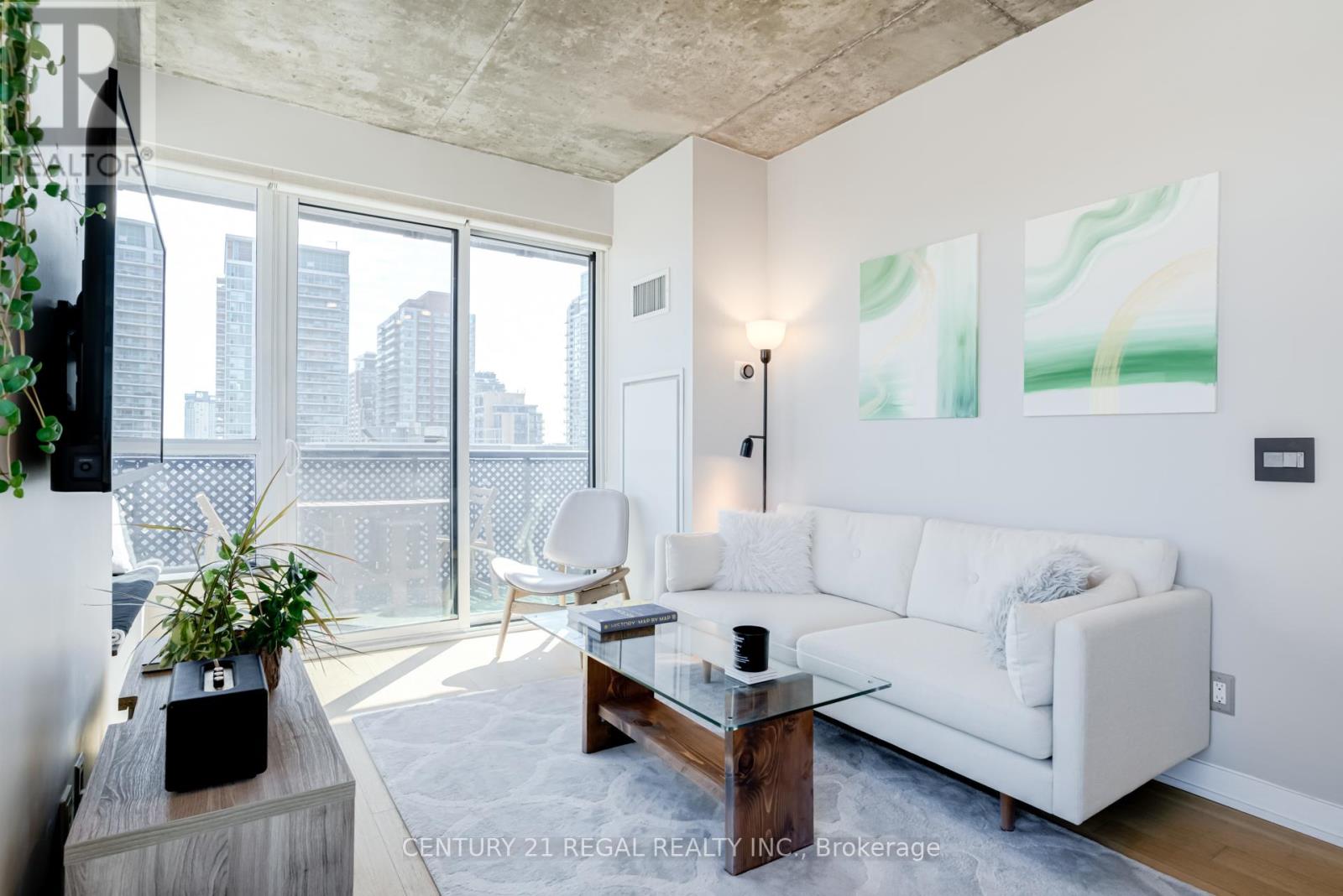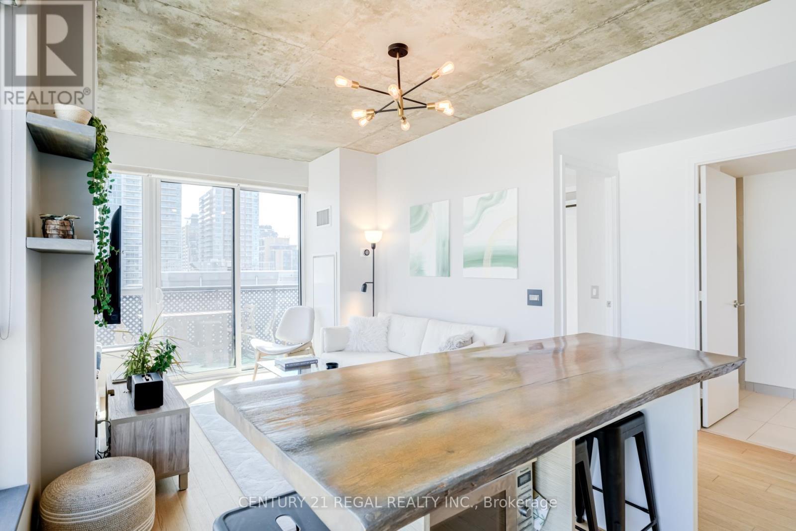 This stunning 2 bedroom, 2 bathroom southeast corner suite is a must-see! Located in the heart of King West, this sun-drenched unit offers incredible east-facing views of the downtown skyline and the CN Tower, along with beautiful southerly glimpses of the lake. The suite features 9ft hard loft ceilings and an expansive open-concept layout, making it perfect for both relaxing and entertaining.The spacious primary bedroom comes with a custom-built closet, while the second bedroom features a clever Murphy bed to maximize space. The modern kitchen is equipped with a custom island counter, ideal for cooking or enjoying a casual meal, and opens up to the living area which is flooded with natural light thanks to large windows throughout. Hardwood floors run seamlessly throughout the suite, adding a touch of elegance to the space. Step outside to the generous 95 sq ft balcony, perfect for enjoying your morning coffee or taking in the stunning views of the city. The parking spot is a standout feature, it's large and conveniently located near the elevator for easy access. Everything you could want is right at your doorstep. TTC, trendy King West shopping, and exceptional restaurants are just a short walk away. For outdoor enthusiasts, Trinity Bellwoods Park, Massey & Stanley Parks, Liberty Village, and the Waterfront Trails are all within minutes. The nearby No Frills, Metro, LCBO, Tim Hortons, Starbucks and pharmacy add to the convenience of the location, making this an unbeatable lifestyle opportunity. Dont miss out on this remarkable suite with its incredible views, modern features, and unbeatable location. (id:64974)