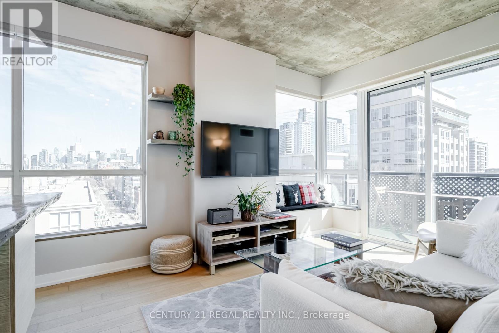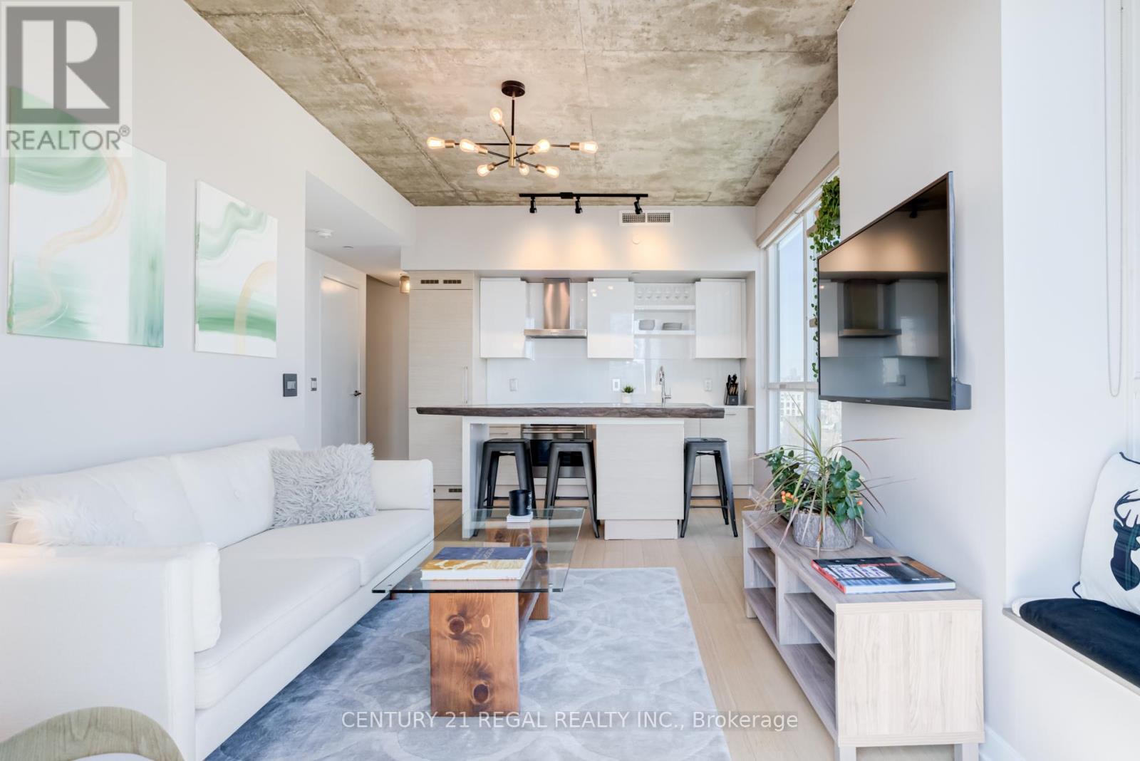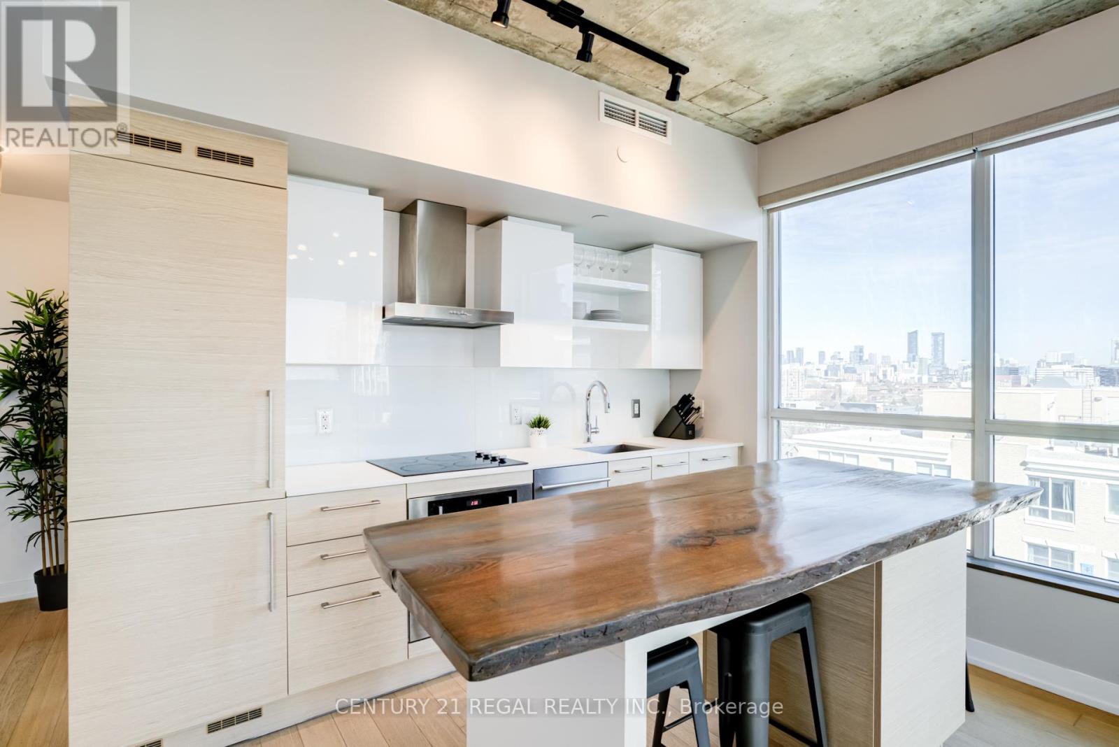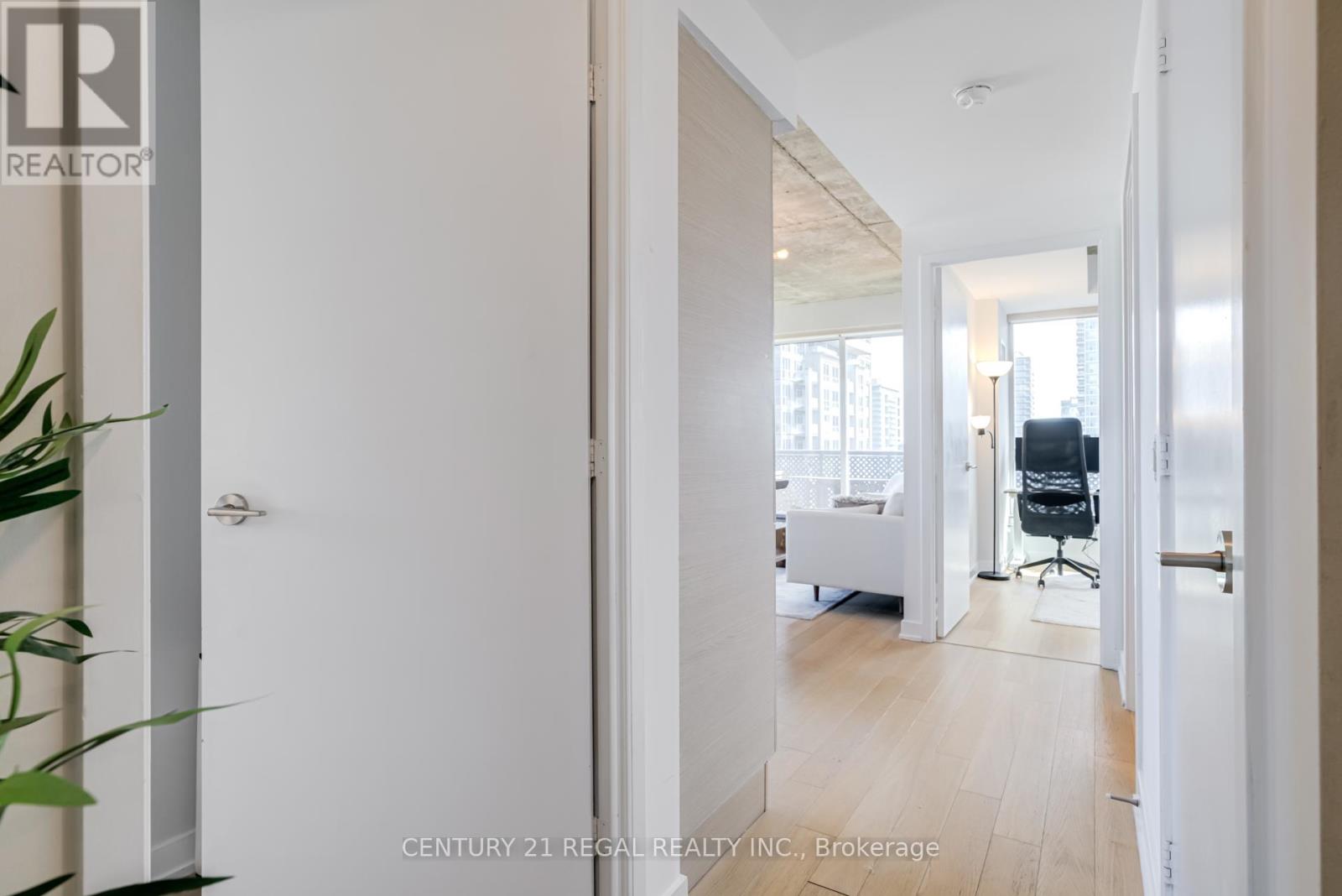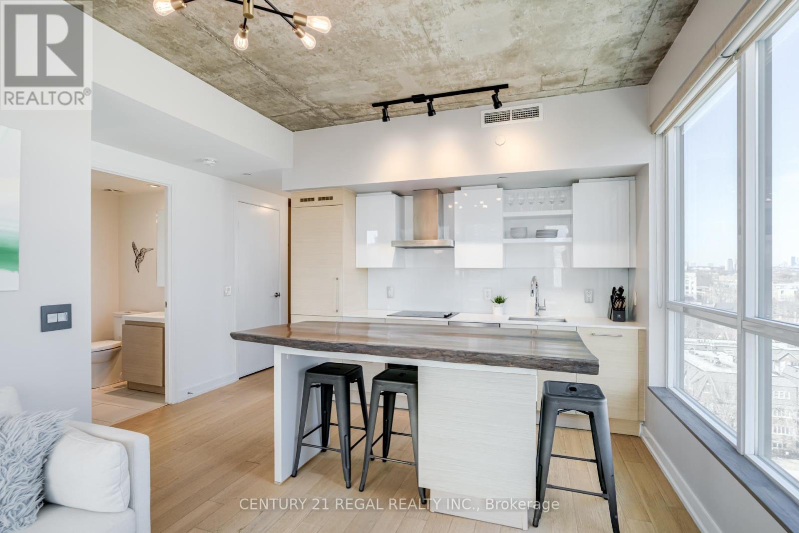 This stunning 2 bedroom, 2 bathroom southeast corner suite is a must-see! Located in the heart of King West, this sun-drenched unit offers incredible east-facing views of the downtown skyline and the CN Tower, along with beautiful southerly glimpses of the lake. The suite features 9ft hard loft ceilings and an expansive open-concept layout, making it perfect for both relaxing and entertaining.The spacious primary bedroom comes with a custom-built closet, while the second bedroom features a clever Murphy bed to maximize space. The modern kitchen is equipped with a custom island counter, ideal for cooking or enjoying a casual meal, and opens up to the living area which is flooded with natural light thanks to large windows throughout. Hardwood floors run seamlessly throughout the suite, adding a touch of elegance to the space. Step outside to the generous 95 sq ft balcony, perfect for enjoying your morning coffee or taking in the stunning views of the city. The parking spot is a standout feature, it's large and conveniently located near the elevator for easy access. Everything you could want is right at your doorstep. TTC, trendy King West shopping, and exceptional restaurants are just a short walk away. For outdoor enthusiasts, Trinity Bellwoods Park, Massey & Stanley Parks, Liberty Village, and the Waterfront Trails are all within minutes. The nearby No Frills, Metro, LCBO, Tim Hortons, Starbucks and pharmacy add to the convenience of the location, making this an unbeatable lifestyle opportunity. Dont miss out on this remarkable suite with its incredible views, modern features, and unbeatable location. (id:64974)