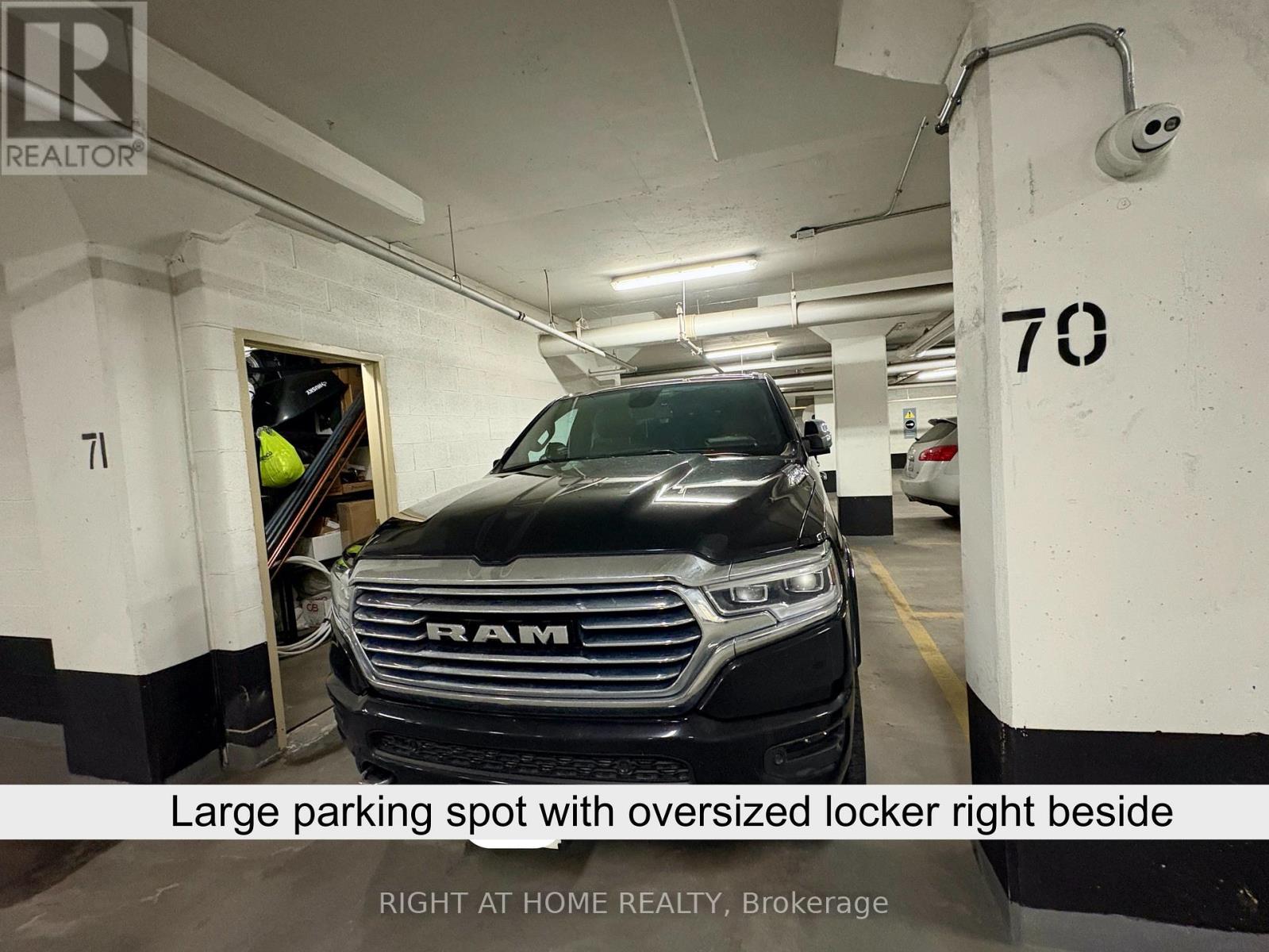 Spacious and Bright 1 Br Suite W/Laminate Floor Throughout. Full sized appliances, lots of counter space, in suite laundry included, Open Den area for home office (currently used as storage with wardrobes), clear view with lots of natural light, East facing Balcony with access from the living room and bedroom, large parking spot currently fits a truck. XL Locker (6x9ft x 10ft tall)located beside parking spot can be included for extra monthly cost. Fantastic Location, Close To Agincourt Mall, Library, Schools, Hwy 401, Ttc, Restaurants, Golf Course. Amenities include: Indoor Swimming Pool, Whirlpool, Sauna, State-Of-The-Art Fitness Centre, Rooftop Garden Terrace For Lounging. Entertain In Party & Billiards Rooms, Or Bbq In Courtyard Lounge. Rent includes water and heat. Currently tenant occupied, photos from previous listing. (id:64974)