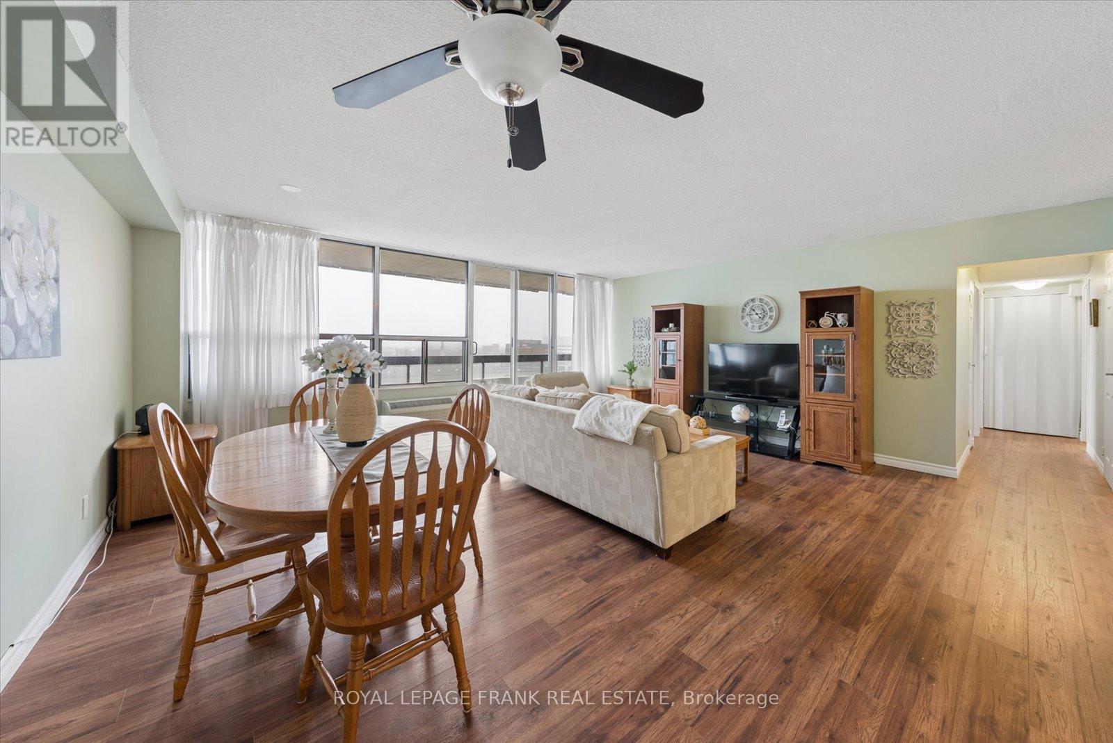 Welcome to Unit 915 at 55 William St E - a bright and well-maintained 2-bedroom, 2-bathroom, 1-underground parking condo in the heart of downtown Oshawa. This spacious suite offers a functional layout with generous living and dining areas, ideal for both everyday living and entertaining. The unit shows beautifully and features large windows that bring in plenty of natural light, creating a warm and inviting atmosphere. The modern kitchen offers plenty of cabinetry and workspace, with a pass through window to the bright living space. The unit shows exceptionally well and features updated laminate flooring, creating a clean and contemporary feel.The primary bedroom offers a 2pc ensuite for added comfort, while the second bedroom provides flexibility for guests, a home office, or additional living space. Enjoy the added convenience of in-suite laundry and a large utility room. Step out onto your private balcony overlooking the landscaped courtyard with desirable southern exposure - perfect for enjoying sunshine throughout the day. Enjoy condo living in a well-managed building just steps from schools, the YMCA, Tribute Communities Centre, shopping, restaurants, parks, and public transit. With easy access to major amenities and everything downtown Oshawa has to offer, this is an excellent opportunity for first-time buyers, down sizers, or investors alike. Move-in ready and offering outstanding value in a central location - don't miss your chance to call this fantastic condo home. (id:64974)