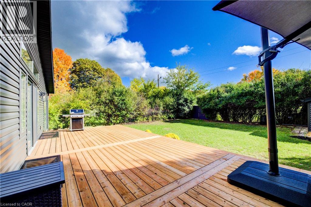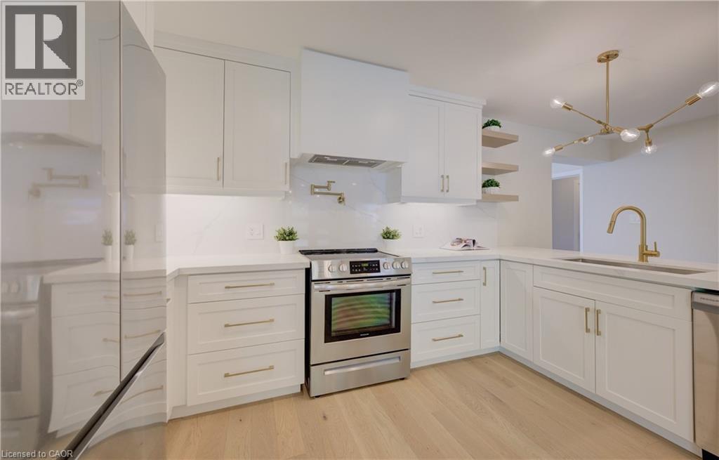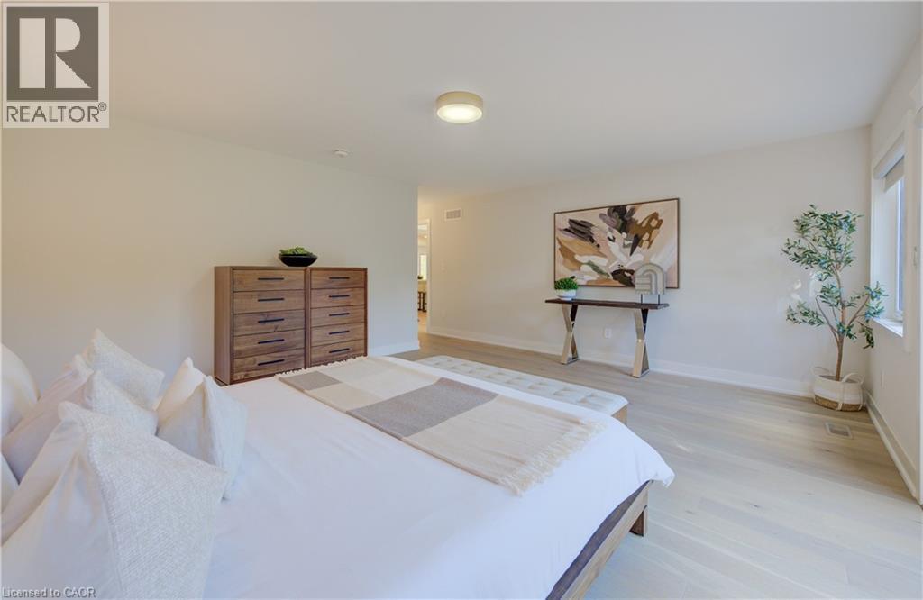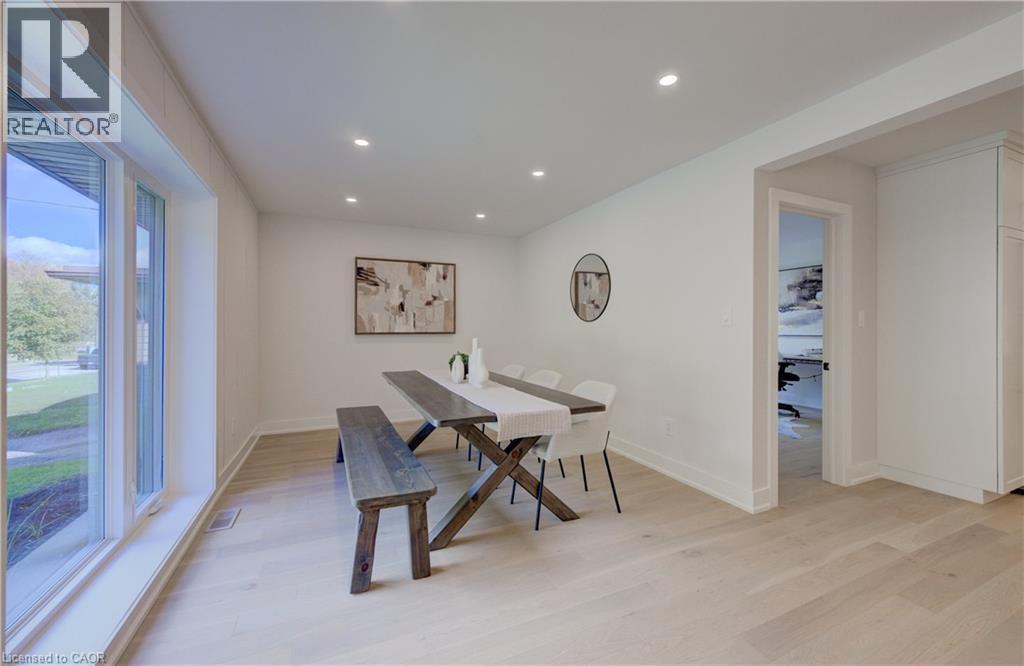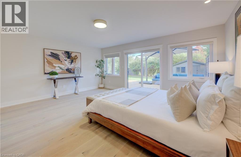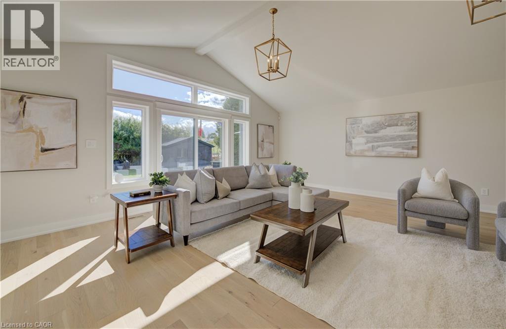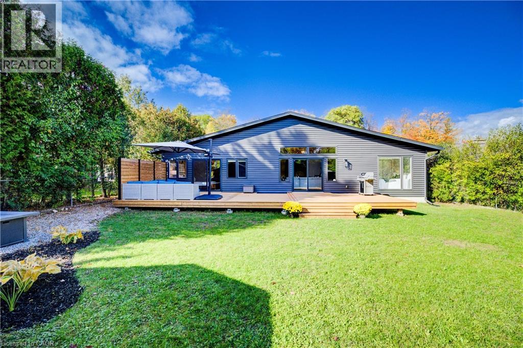 Welcome to 919 Union Street, a stunning, fully renovated luxury bungalow in the heart of Kitchener. Set on a generous 60x135 ft lot, this 4-bedroom, 3-bathroom home offers over 2,140 sq ft of beautifully finished main floor living space, thoughtfully designed for comfort, elegance, and function. Inside, light oak flooring sets a warm, contemporary tone throughout. The custom Barzotti kitchen is a showpiece, featuring quartz waterfall countertops, a full slab backsplash, designer brass fixtures, and timeless cabinetry. The open-concept layout flows seamlessly into the dining and living areas, creating a welcoming and functional space for daily life or entertaining. At the rear of the home, a breathtaking living room steals the spotlight with its 12-foot vaulted ceiling and floor-to-ceiling windows, perfectly positioned to capture serene morning sunrises and private backyard views. A modern glass staircase leads to the finished lower level, where a spacious rec room, second laundry room, and generous storage areas offer exceptional versatility for everyday living. The elevated design continues below grade, with the same attention to detail and quality finishes found throughout the home. The newly added additional full width basement is fully framed, insulated, electrical and pot lights completed to add 2 additional bedrooms and a large living room space. Large format egress windows and custom window wells allow for extra natural light. Living room and Primary bedroom walkouts to a brand-new deck and a fully enclosed backyard oasis with no rear neighbours, offering privacy and a peaceful retreat. Located steps from scenic walking trails and just minutes from major highway access, 919 Union Street is not just a home, it’s a lifestyle. Close attention to every detail was the theme for this renovation, this is essentially a new home in the heart of the city (id:64974)