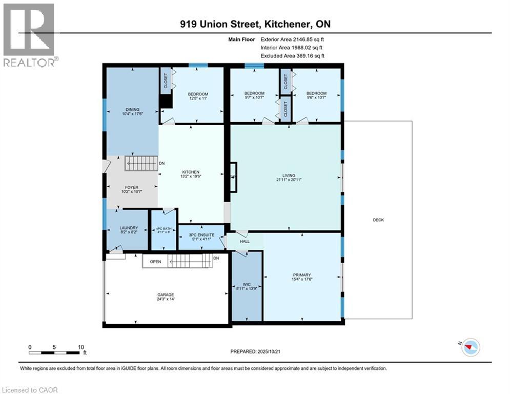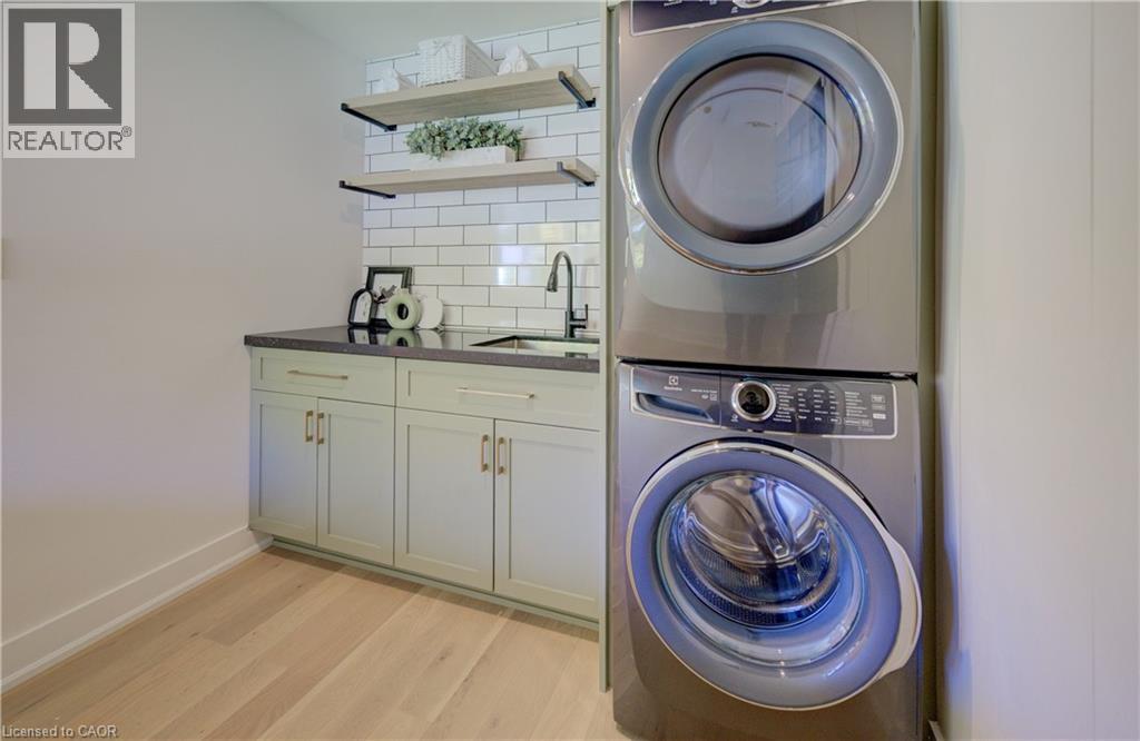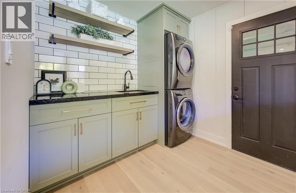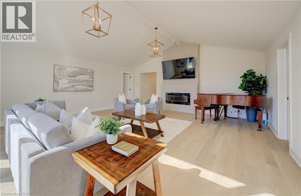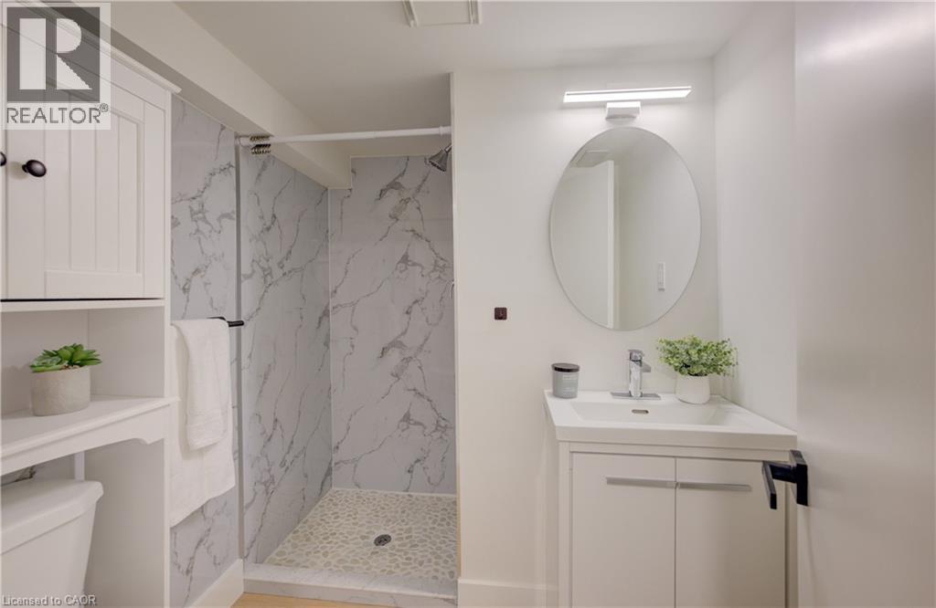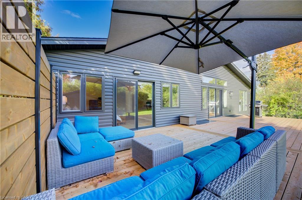 Welcome to 919 Union Street, a stunning, fully renovated luxury bungalow in the heart of Kitchener. Set on a generous 60x135 ft lot, this 4-bedroom, 3-bathroom home offers over 2,140 sq ft of beautifully finished main floor living space, thoughtfully designed for comfort, elegance, and function. Inside, light oak flooring sets a warm, contemporary tone throughout. The custom Barzotti kitchen is a showpiece, featuring quartz waterfall countertops, a full slab backsplash, designer brass fixtures, and timeless cabinetry. The open-concept layout flows seamlessly into the dining and living areas, creating a welcoming and functional space for daily life or entertaining. At the rear of the home, a breathtaking living room steals the spotlight with its 12-foot vaulted ceiling and floor-to-ceiling windows, perfectly positioned to capture serene morning sunrises and private backyard views. A modern glass staircase leads to the finished lower level, where a spacious rec room, second laundry room, and generous storage areas offer exceptional versatility for everyday living. The elevated design continues below grade, with the same attention to detail and quality finishes found throughout the home. The newly added additional full width basement is fully framed, insulated, electrical and pot lights completed to add 2 additional bedrooms and a large living room space. Large format egress windows and custom window wells allow for extra natural light. Living room and Primary bedroom walkouts to a brand-new deck and a fully enclosed backyard oasis with no rear neighbours, offering privacy and a peaceful retreat. Located steps from scenic walking trails and just minutes from major highway access, 919 Union Street is not just a home, it’s a lifestyle. Close attention to every detail was the theme for this renovation, this is essentially a new home in the heart of the city (id:64974)