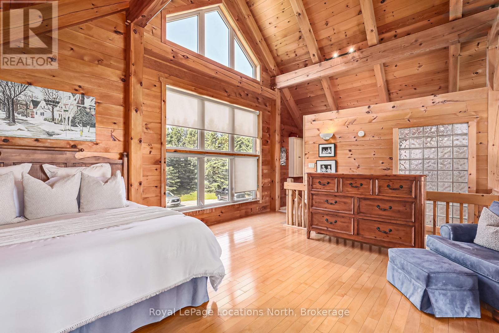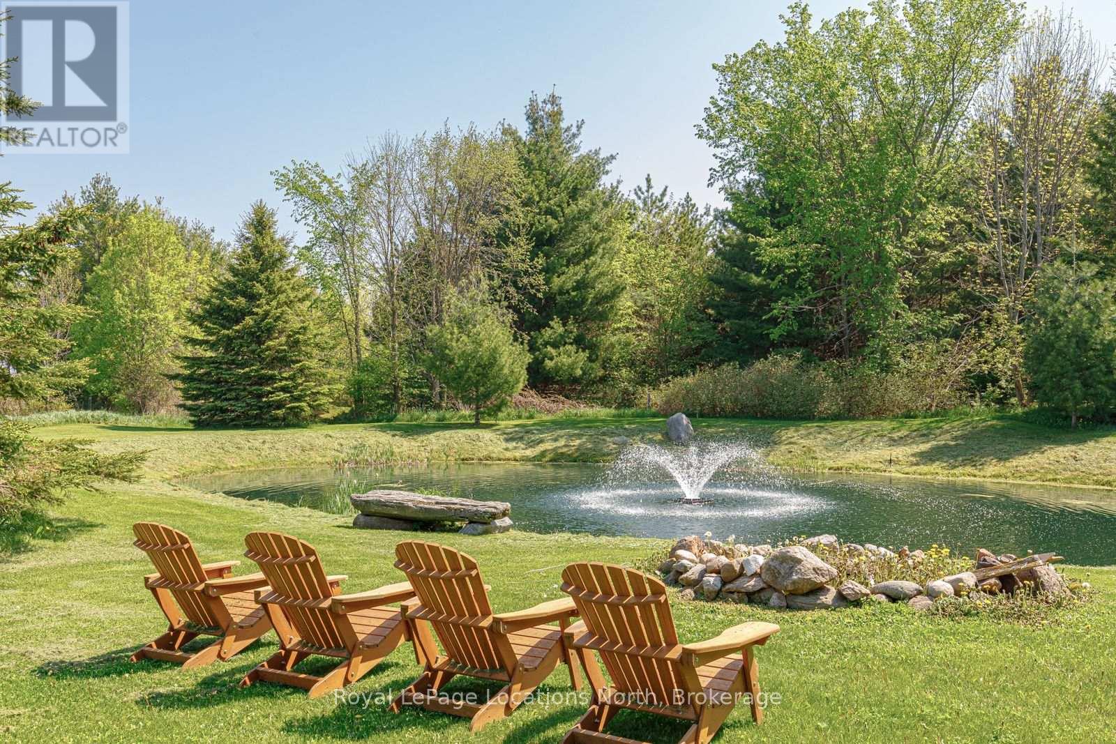 Welcome to your private country estate, set on 9.02 acres of breathtaking natural landscape with panoramic views stretching across Georgian Bay and the surrounding countryside.This exceptional timber frame residence, finished in classic board and batten, offers over 3,600 square feet of thoughtfully designed living space, surrounded by mature trees, a tranquil pond with fountain, and sweeping vistas that capture the essence of South Georgian Bay living.At the heart of the home, the dramatic Great Room showcases soaring vaulted ceilings, exposed timber beams, and expansive windows that frame the spectacular views beyond. The open-concept design seamlessly connects the kitchen, dining, and living spaces-creating an inviting environment ideal for both refined entertaining and relaxed everyday living.A spacious main-floor bedroom provides flexibility as a guest suite, home office, or private retreat.Upstairs, the loft-style primary suite offers a true sense of escape, complete with a luxurious 5-piece ensuite and walk-in closet-your own private sanctuary overlooking the surrounding landscape.The fully finished lower level is designed for both comfort and recreation, featuring three additional bedrooms, a 4-piece bath, and a generous rec/games room with walk-out access-effortlessly extending your living space into the outdoors.Step outside to the expansive deck and immerse yourself in the natural beauty that surrounds you-perfect for morning coffee, evening sunsets, or hosting family and friends.A triple car garage provides ample space for vehicles, recreational equipment, and storage, complementing the property's active four-season lifestyle.Ideally located just minutes from Duntroon Highlands Golf Club, Highlands Nordic, Devils Glen Ski Club, scenic hiking trails, private ski clubs, Blue Mountain Village, downtown Collingwood, and the shores of Georgian Bay.An extraordinary offering that blends refined country living with privacy, space, and year-round recreation. (id:64974)