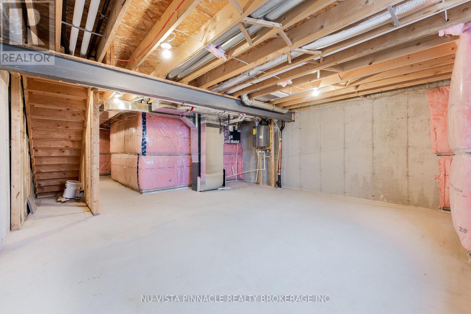 Welcome to this charming 3-bedroom, 2.5-bathroom Freehold vacant Land townhome, offering a perfect blend of modern living and convenience. The open-concept main floor features bright, airy living and dining spaces, ideal for both entertaining and daily life. The well-designed kitchen is equipped with sleek quartz countertops Stainless Appliances and ample cabinetry, creating a stylish and functional cooking space. Upstairs, the spacious primary bedroom is a true retreat, complete with a walk-in closet and a luxurious ensuite bathroom featuring a glass-tiled shower and double sinks. Two additional well-sized bedrooms share a full bathroom complete with elegant quartz countertops. The laundry room with Washer and Dryer adds an extra layer of convenience to your daily routine making chores a breeze. A main floor powder room is perfect for guests. The property also includes a spacious unfinished basement, offering incredible potential to create additional living space. This home offers added privacy and extra natural light. Ideally located in a desirable neighborhood, this townhome offers a great combination of modern features, potential for future expansion, and a comfortable living space with a stunning view of the storm water pond from your back yard. (id:64974)