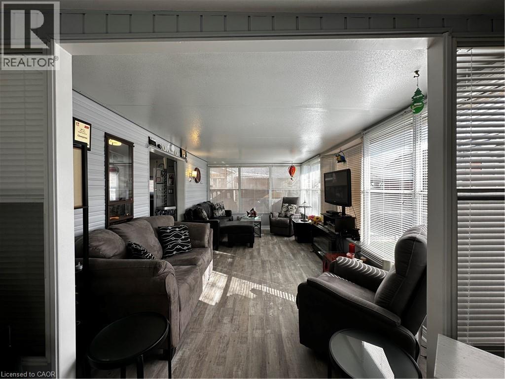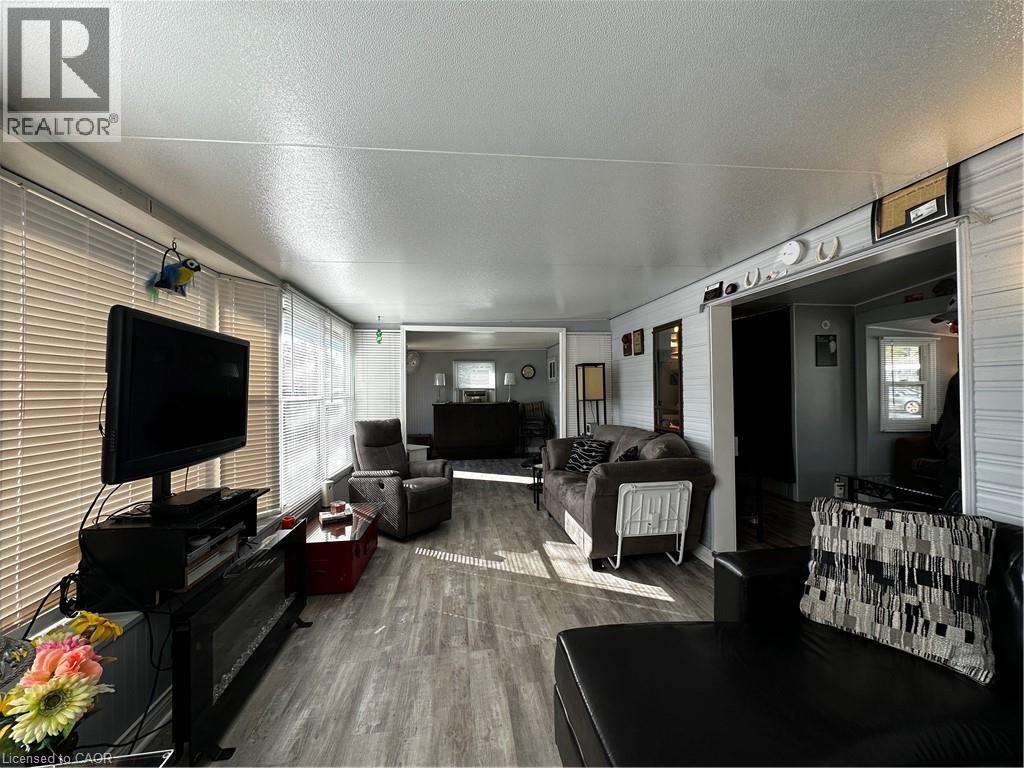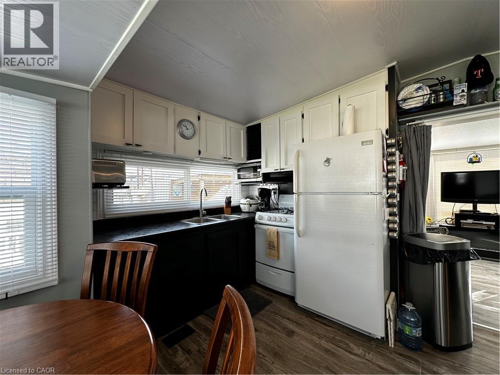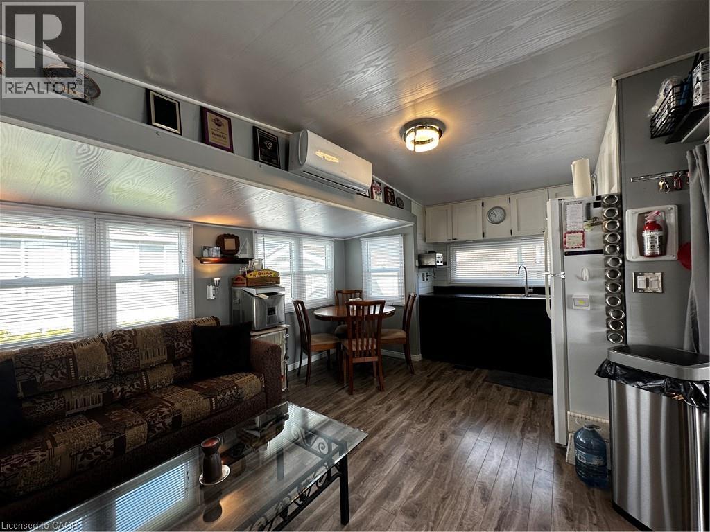 Pristine trailer for sale in the Turkey Point Macdonald Marina! 684 sqft, 2 bed 1 bath, 1 boat slip and its very own laundry. Trailer has new TPD roof (2023), new steel roof on bump-outs (2022), new roof on sunroom (2022), new memory board in furnace (2020), 60 amp service + hydro at the dock, it also features a 2 year old ductless split with the option to heat and cool. Large deck with gazebo creates perfect vibe to enjoy your outdoor living space. Comes with shed for extra storage. Sellers willing to provide accommodation to the Buyers during the off season when the park is closed for a fair monthly fee. (id:64974)