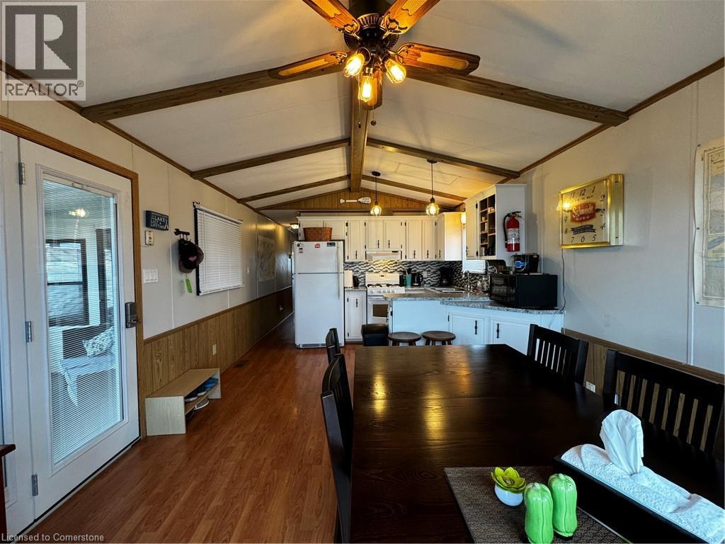 3 Bedroom very tidy trailer located at the MacDonald Turkey Point Marina, Lot #51. This trailer has a large deck and gorgeous custom built gazebo for entertaining and also comes with a BOAT SLIP only steps away. New steel roof, eavestroughs 2022, freshly painted and comes with spacious screened in porch to enjoy all seasons. The trailer is located on the inside row. It has a right of way walk to boat slip. The fees for the season are $11,763 and the season runs from roughly mid April to mid October and include your boat slip, water and sewage! 2025 Seasonal fees included in the price! Call today makes cottage life very simple!! (id:64974)