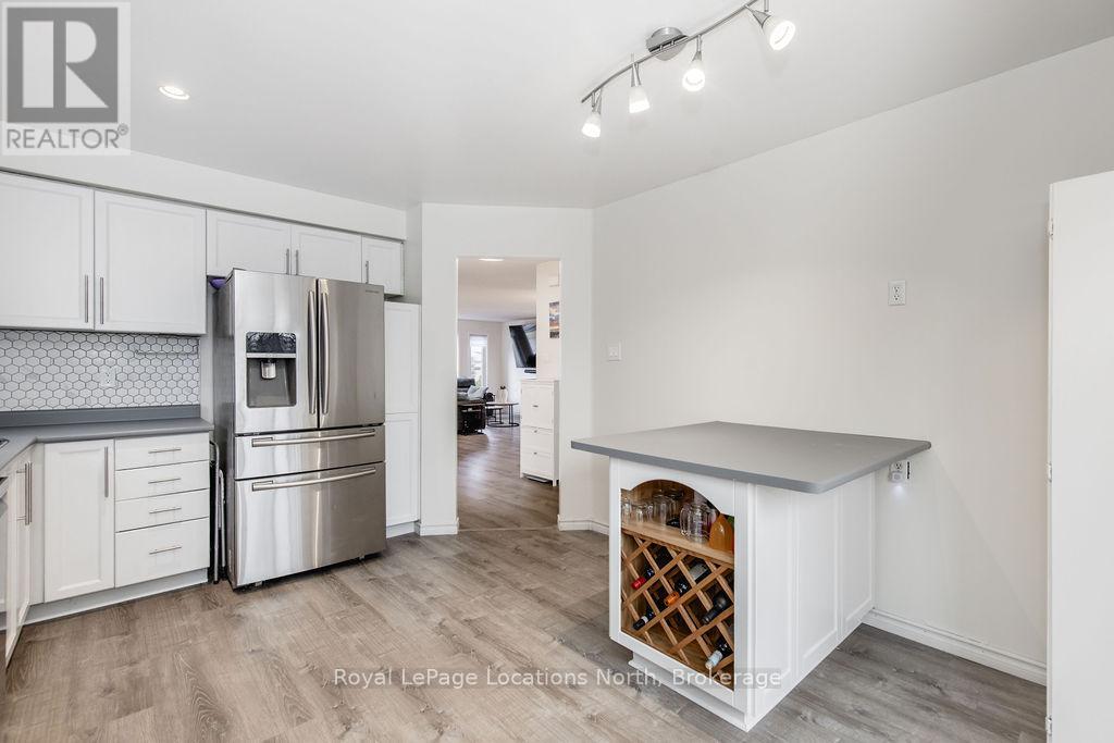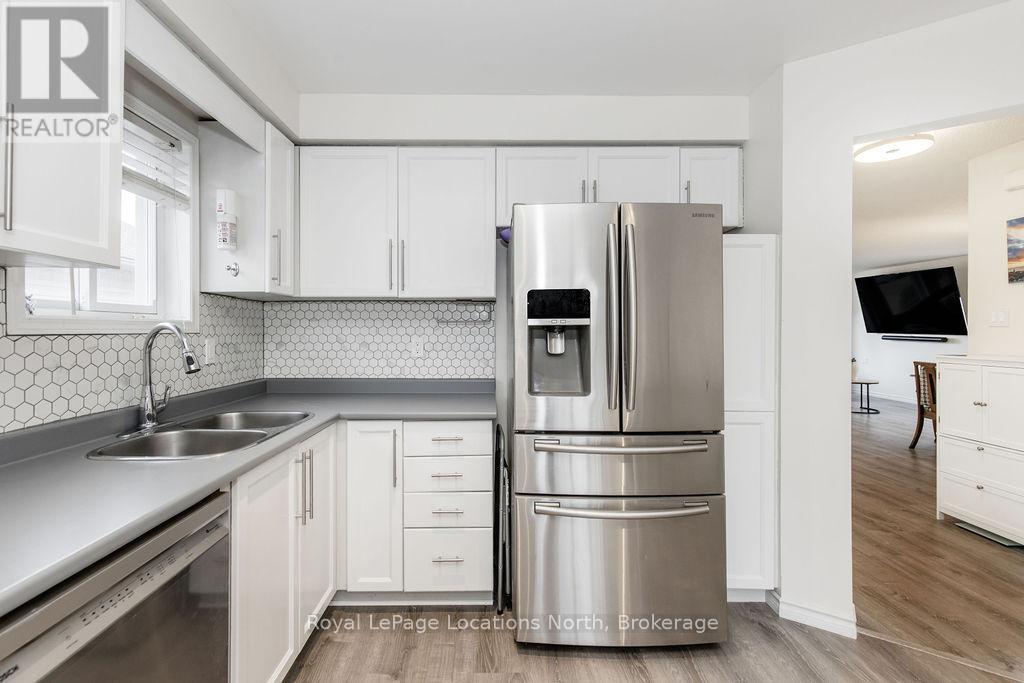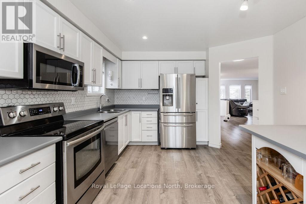 Welcome to this beautifully updated 3-bedroom, 2-bathroom home, perfectly located close to Georgian Bay, restaurants, and shopping. Tucked at the end of a quiet cul-de-sac, this property offers a great blend of modern updates, privacy, and direct access to forest trails just steps from your door. An added bonus for families is the amazing size park for the kids just a few doors down- perfect for everyday play and outdoor time.The main floor features a bright and spacious layout with newer vinyl flooring and a large eat-in kitchen designed for everyday living and entertaining. The kitchen has been tastefully updated with painted cabinets, a new backsplash, and stainless steel appliances, creating a clean and modern feel. From here, enjoy a convenient walkout to the backyard, leading to new composite decking, perfect for outdoor dining, relaxing, and hosting.A standout feature is the spacious main floor primary bedroom, offering double closets and easy main-level living.The lower level offers two well-sized bedrooms with updated laminate flooring, ideal for a family room, home office, or guest space, along with a second full bathroom for added convenience.Located just minutes from the water, this home offers easy access to trails, beaches, and everyday amenities, delivering a relaxed lifestyle, location, and value. (id:64974)