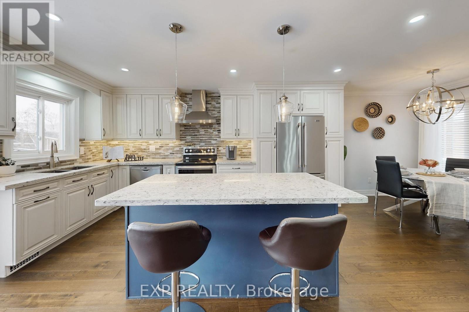 Welcome To This Beautifully Maintained 3+1 Bedroom 4-Bathroom Home Featuring A Custom Kitchen With Quartz Countertops Large Island Stainless Steel Appliances And Elegant Cabinetry *The Open-Concept Layout Is Enhanced By Stylish Flooring And Pot Lights Throughout *The Spacious Primary Bedroom Boasts A Newly Built 3-Piece Ensuite (2025) With A Modern Glass Shower *The Finished Basement Offers A Feature Wall With Built-In Shelving Ample Living Space And Potential For A Separate Entrance *Enjoy Added Security With A 5-Camera System And A Touchpad Key Lock Plus A New Washer And Dryer (2023) *Step Outside To A Private Backyard With A Deck And Shed *No Sidewalk Allows For 4-Car Parking *Situated In A High-Demand School Zone And Just Minutes To Hwy 401 Transit Plazas And Parks *This Home Blends Comfort Style And Convenience! ** This is a linked property.** (id:64974)