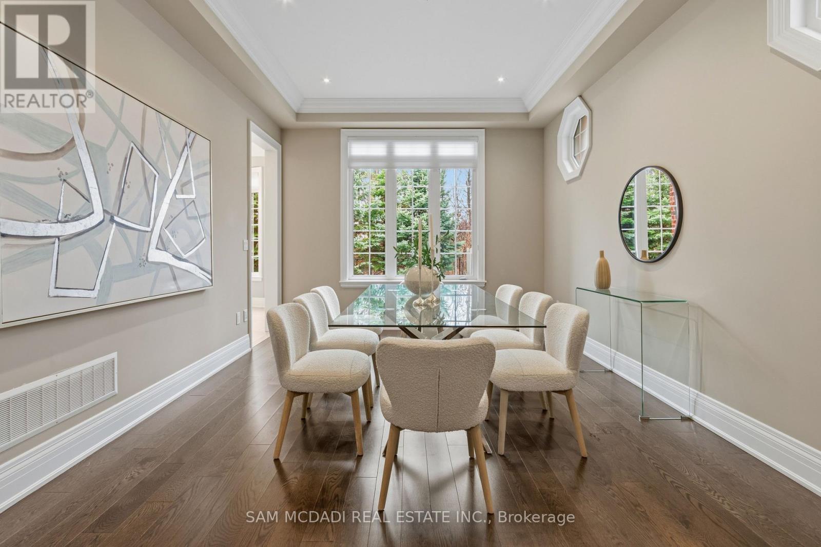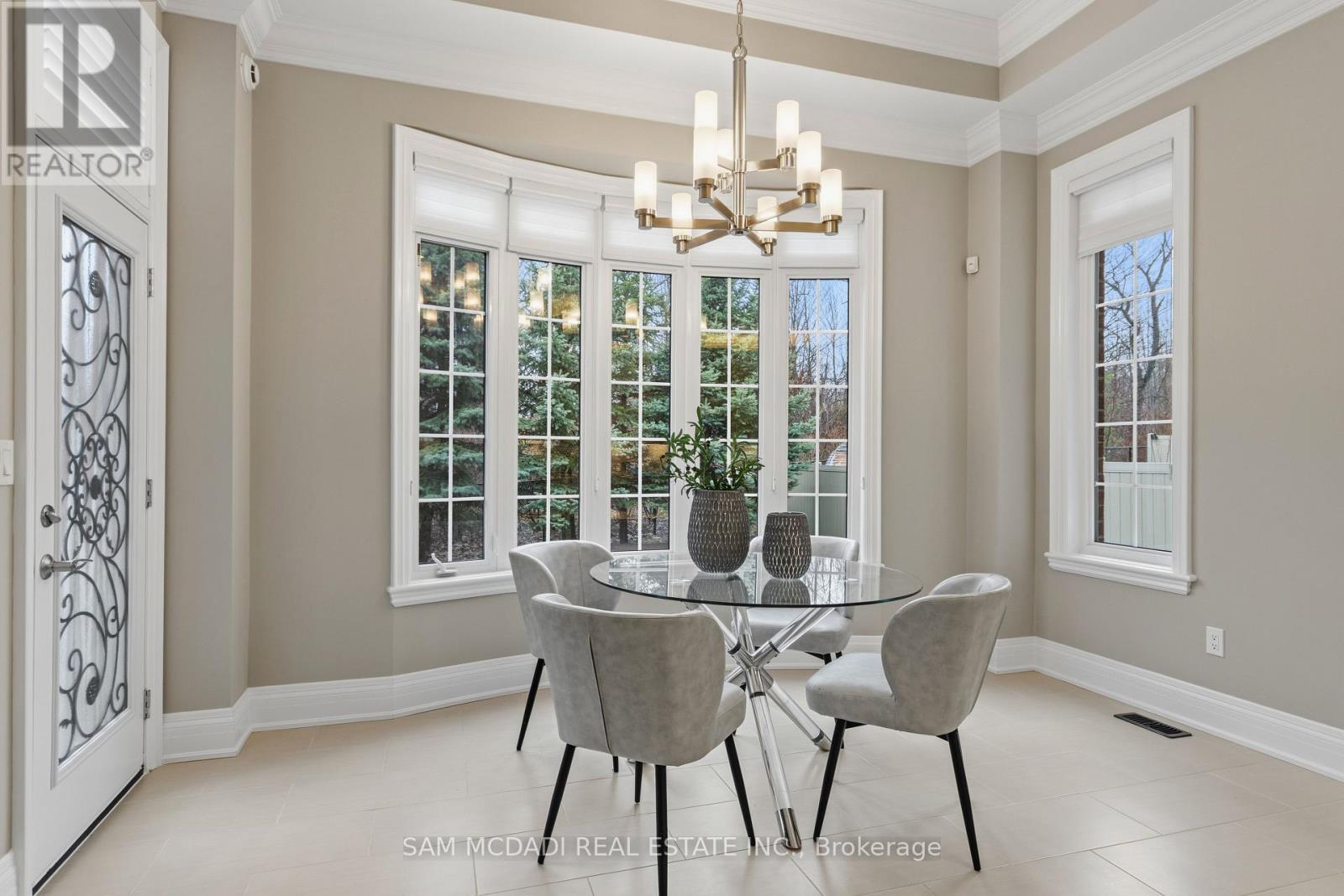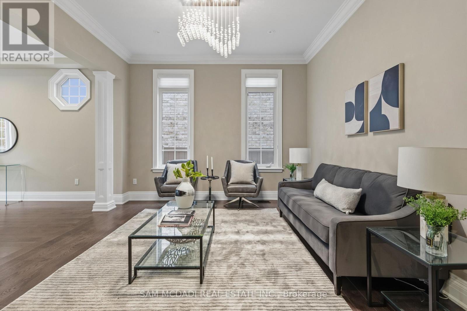 Step inside to 92 Heintzman Cres! Welcome to an extraordinary residence in the prestigious Upper Thornhill Estates where refined luxury meets the tranquility of nature. Appr. 5500 sq ft of space set on a premium ravine lot backing onto a protected conservation area, this home offers complete privacy and breathtaking, unobstructed views from expansive windows throughout. This 5+2 bedroom, 6 bath masterpiece showcases impeccable craftsmanship and timeless elegance. Soaring 10-foot ceilings on the main level, 9 ft ceilings above & oversized windows create a bright, airy ambiance that elevates every room. At the heart of the home is a chef-inspired gourmet kitchen, outfitted with premium appliances, bespoke cabinetry & a stunning quartz waterfall island perfect for both everyday living & upscale entertaining. Every detail has been thoughtfully curated, from rich hardwood flooring & designer lighting to crown moulding, crystal chandeliers & custom window coverings throughout. A private main floor office & a beautifully designed mudroom with built-ins provide everyday function. The primary retreat is a true sanctuary, featuring a spa-like 6 pc ensuite, a striking three-sided fireplace, a serene wellness lounge overlooking the ravine & expansive his & hers walk-in closets. The professionally finished lower level is an entertainer's dream, complete with a home theatre, wet bar, games area, glass enclosed gym or optional bedroom, guest suite & elegant finishes throughout. Outdoors, the professionally landscaped grounds rival the interior in beauty, with premium stonework, a designer garden, irrigation system & mature evergreens creating a private oasis. Situated on a quiet crescent surrounded by scenic trails, ponds & top-tier amenities, including one of Ontario's highest-ranked schools. This home offers an unparalleled lifestyle in one of Thornhill's most sought-after communities. (id:64974)