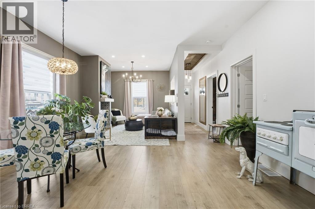 Prepare to be impressed. This beautifully updated 3-bedroom, 1.5-bath bungalow is nestled in a family-friendly neighbourhood and truly checks all the boxes — with a flexible, quick closing available. Bright, open living spaces flow into a stunning eat-in kitchen featuring quartz countertops, backsplash, and brand-new appliances, complemented by a spa-like 4-piece bathroom. Major updates include a new furnace, roof, siding, soffit, fascia, and eaves, along with thoughtful upgrades throughout. Step outside to a fully fenced yard with hardscaping, pond, large deck, and covered patio with metal roof — an ideal space for entertaining or relaxing. Perfect for first-time buyers, downsizers, or investors, this move-in-ready home is conveniently located close to schools, universities, shopping, hospital, casino, trails, the Grand River, and offers easy access to HWY 403. Recent highlights (since 2024): custom walk-in closet, double doors to the backyard, dedicated laundry room, covered deck, and gas line for BBQ. (id:64974)