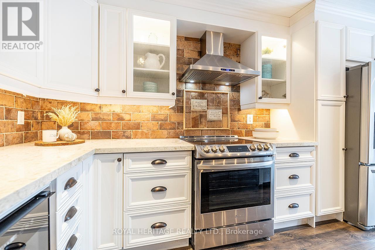 Welcome to this stunning 3+1 bedroom townhome in the highly sought-after community of Brooklin - a beautifully upgraded residence offering both style and functionality for modern family living.The heart of the home is a custom-designed contemporary kitchen featuring a large island, pot lights, designer backsplash, and a striking wood beam that adds warmth and character. The open-concept living and dining area is thoughtfully designed for both everyday comfort and entertaining, highlighted by a feature TV wall with an elegant electric fireplace.A custom mudroom with direct garage access - a rare find in townhomes within this subdivision - adds exceptional convenience and organization for busy family life.An additional den above the garage featuring a cozy gas fireplace offers versatile living space perfect for a home office, family lounge, or retreat - another uncommon feature rarely found in townhomes in this subdivision.Upstairs, the spacious primary suite offers a private sanctuary complete with a stylish feature wall and a 4-piece ensuite.The fully finished lower level extends the home's functionality with a bright rec room, a fourth bedroom with egress window, and a generous 3-piece washroom - ideal for extended family, guests, or a growing household.Step outside to enjoy a large deck and backyard space designed for entertaining and relaxation.This is truly not your average townhome - a perfect blend of thoughtful upgrades, modern design, and rare additional living spaces in one of Brooklin's most desirable neighbourhoods. (id:64974)