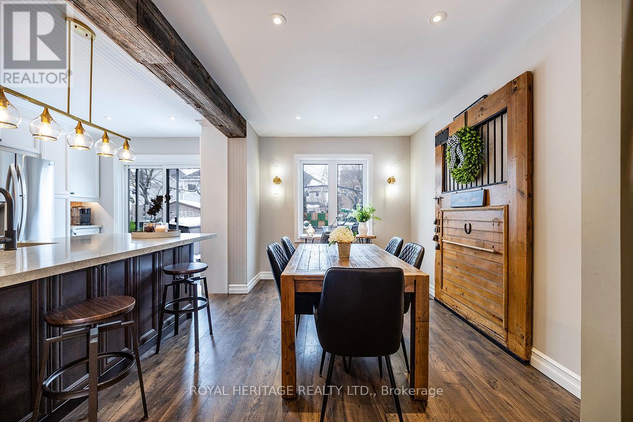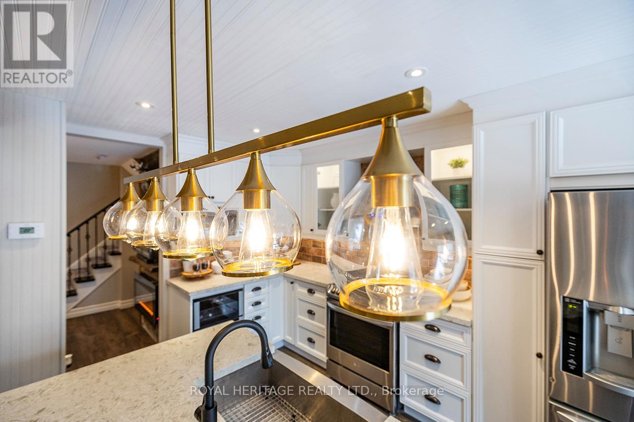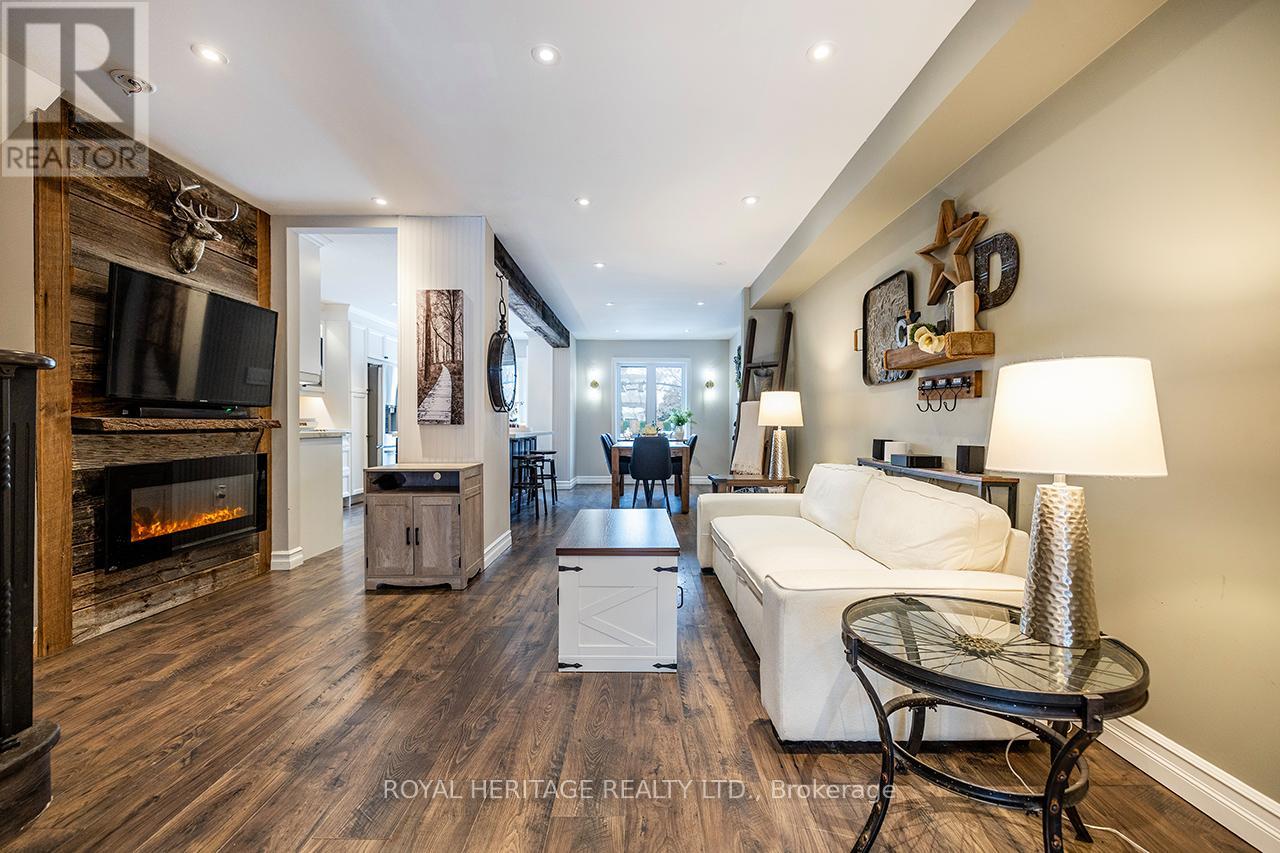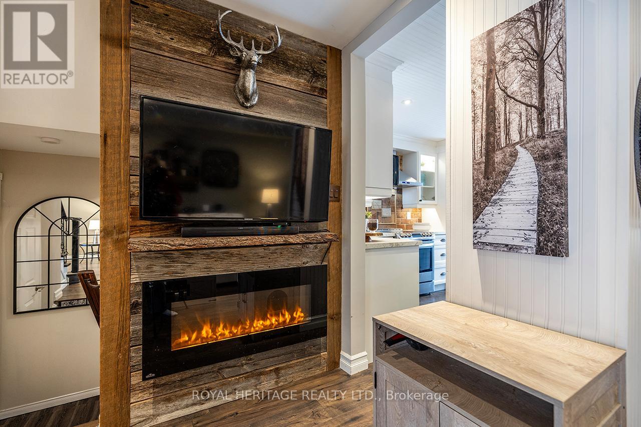 Welcome to this stunning 3+1 bedroom townhome in the highly sought-after community of Brooklin, offering a beautiful blend of style, function, and modern family living. The heart of the home is the custom contemporary kitchen, complete with a large island, pot lights, designer backsplash, and a striking wood beam that brings warmth and character to the space. The open-concept living and dining area is ideal for both everyday living and entertaining, featuring a stylish TV wall with an elegant electric fireplace. A custom mudroom with direct garage access adds exceptional convenience and organization, a rare feature in townhomes within this subdivision. Above the garage, an additional den with a cozy gas fireplace provides versatile extra living space, perfect for a home office, family room, or private retreat. Upstairs, the spacious primary bedroom serves as a true sanctuary with a beautiful feature wall and a 4-piece ensuite. The fully finished lower level adds even more functionality with a bright rec room, a fourth bedroom with an egress window, and a generous 3-piece bathroom, ideal for guests, extended family, or a growing household. Step outside to enjoy a large deck and backyard space designed for relaxing and entertaining. This is truly not your average townhome, showcasing thoughtful upgrades, modern design, and rare bonus living areas in one of Brooklin's most desirable neighbourhoods. (id:64974)