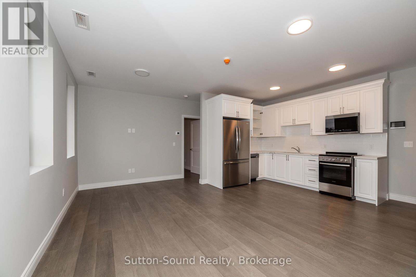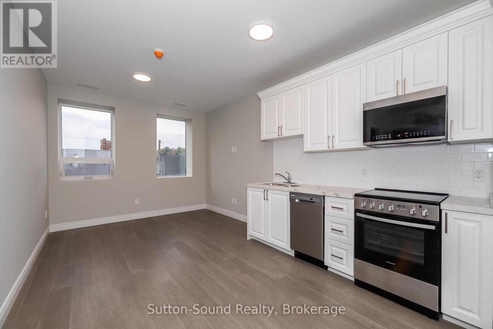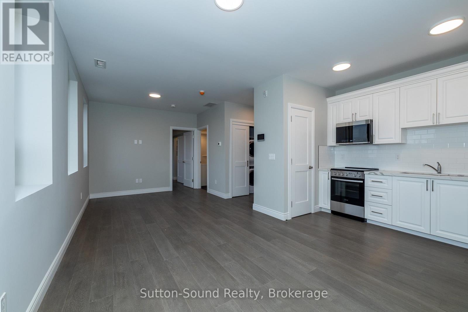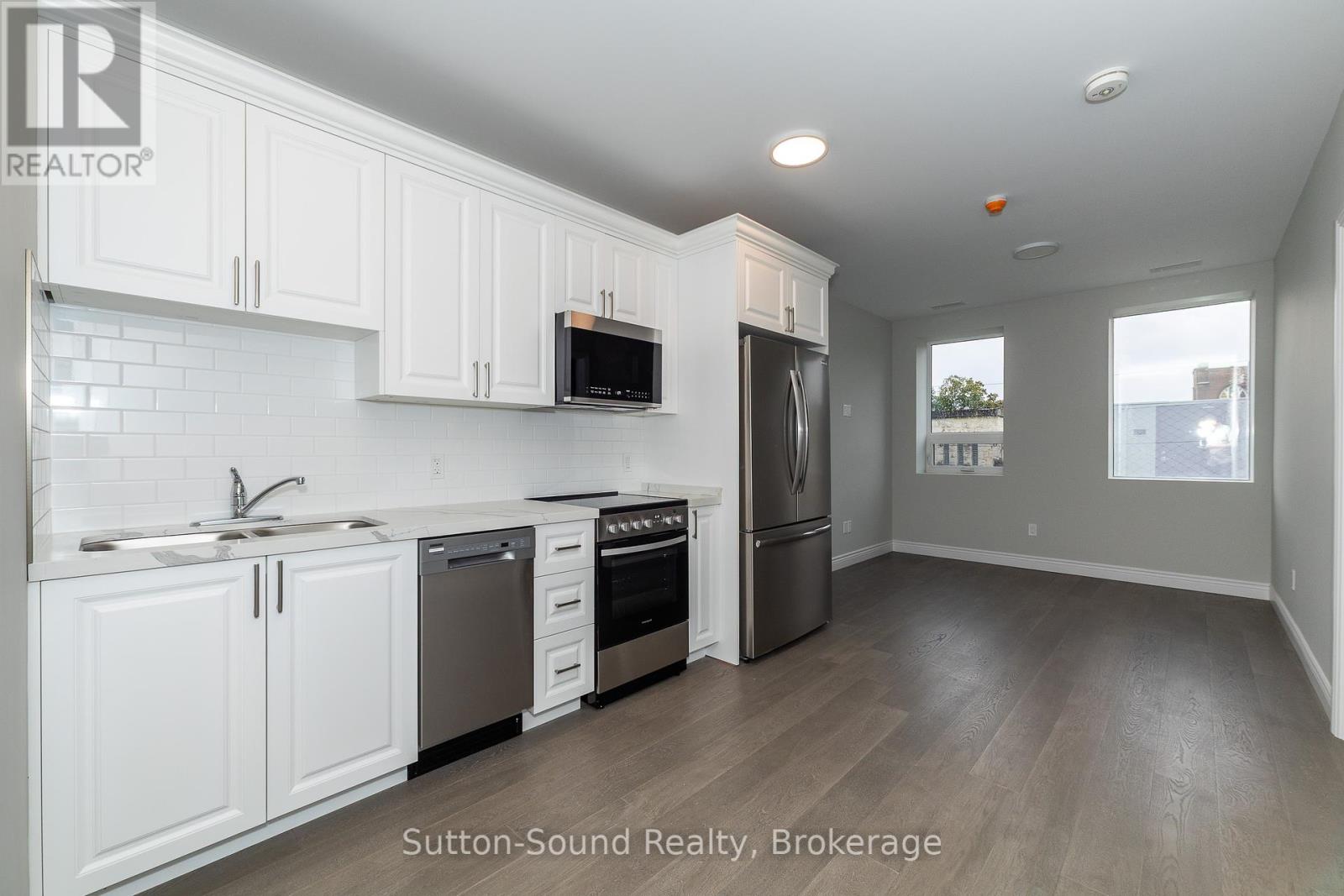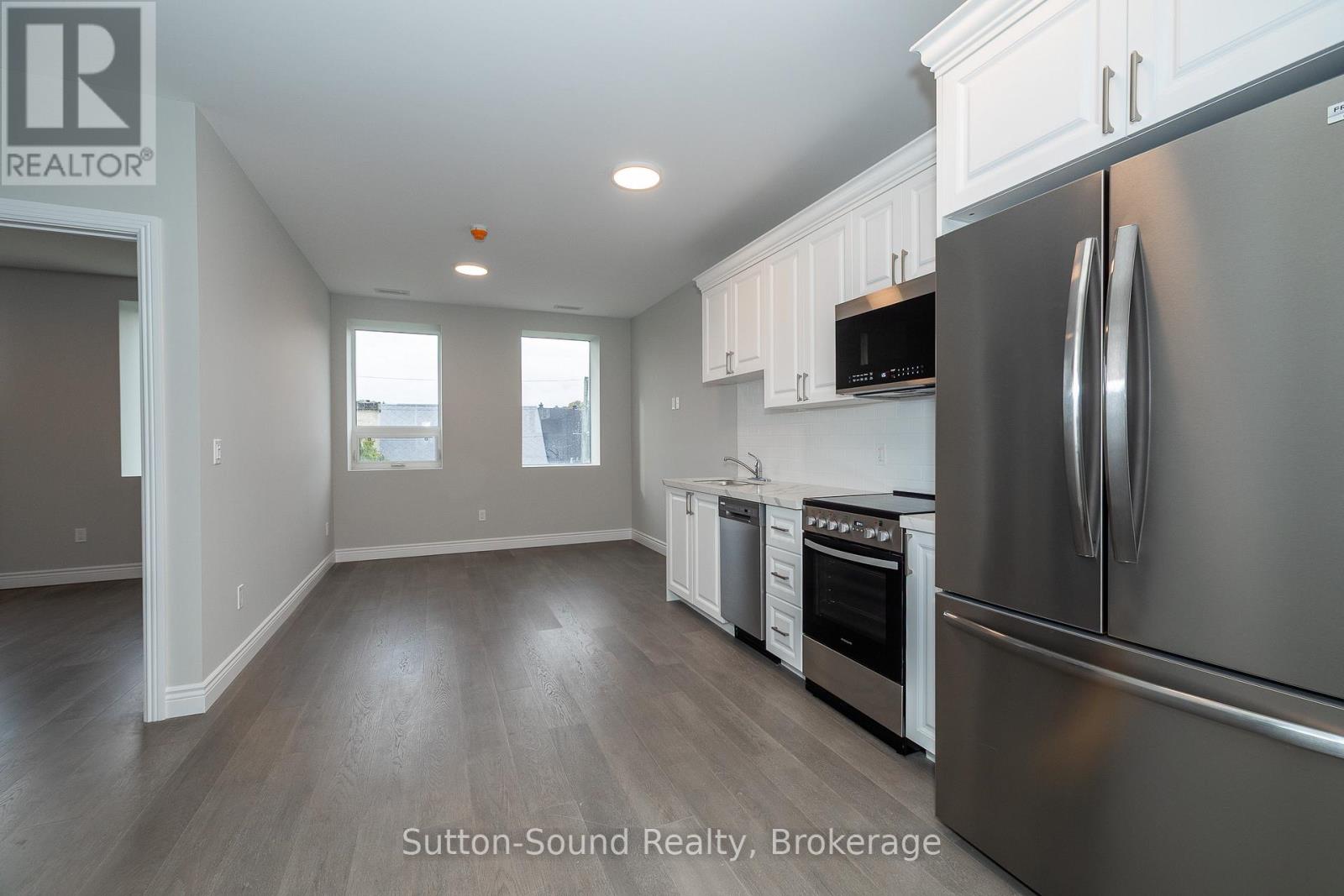 Welcome to the Edgewater building in beautiful Owen Sound. We have currently leased 50% of available units. These apartments are an all in cost for you. Included in the rent is your highspeed internet, cable, telephone, all utilities and parking. A close walk to the downtown with all the amenities any person could want. These high quality units are done with hardwood floors for easy up keep and in unit laundry. Quartz counter tops in the kitchen and 9 foot ceilings with an open concept and built in closet organizers. No wasted space in these amazing units. A common room for family gatherings and a roof top patio with out door kitchen for beautiful evenings for your enjoyment. A total of 21 units are available for lease in this building. (id:64974)