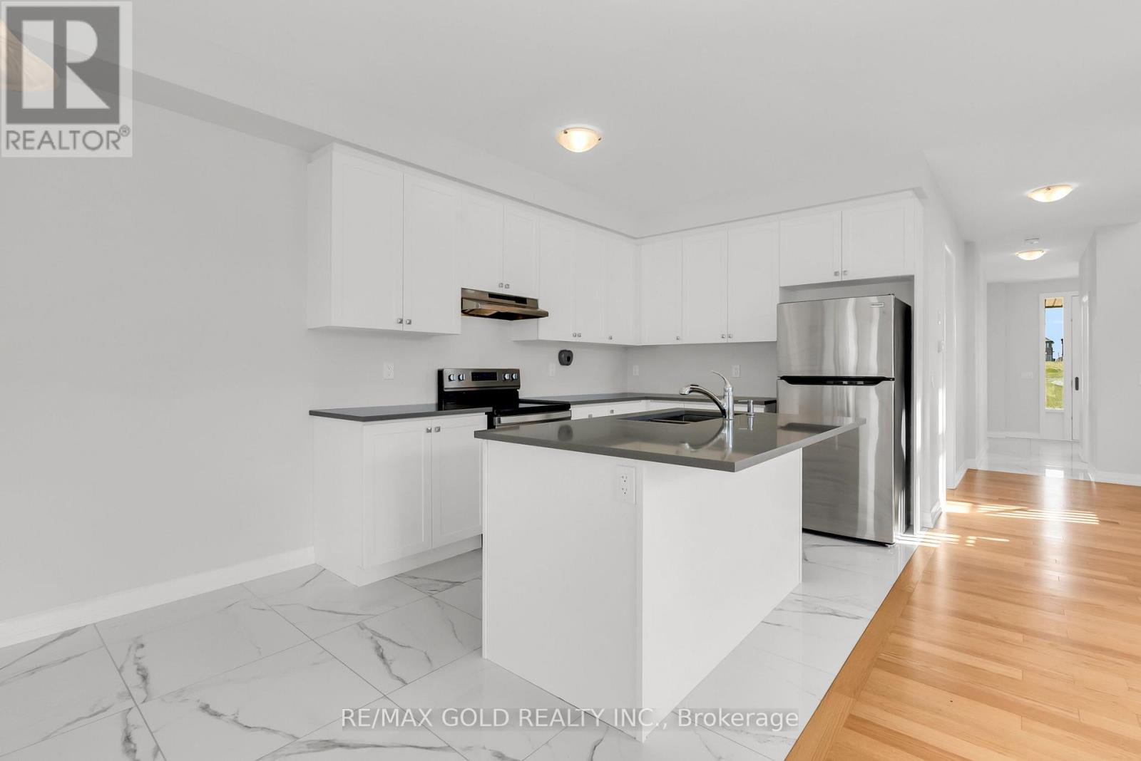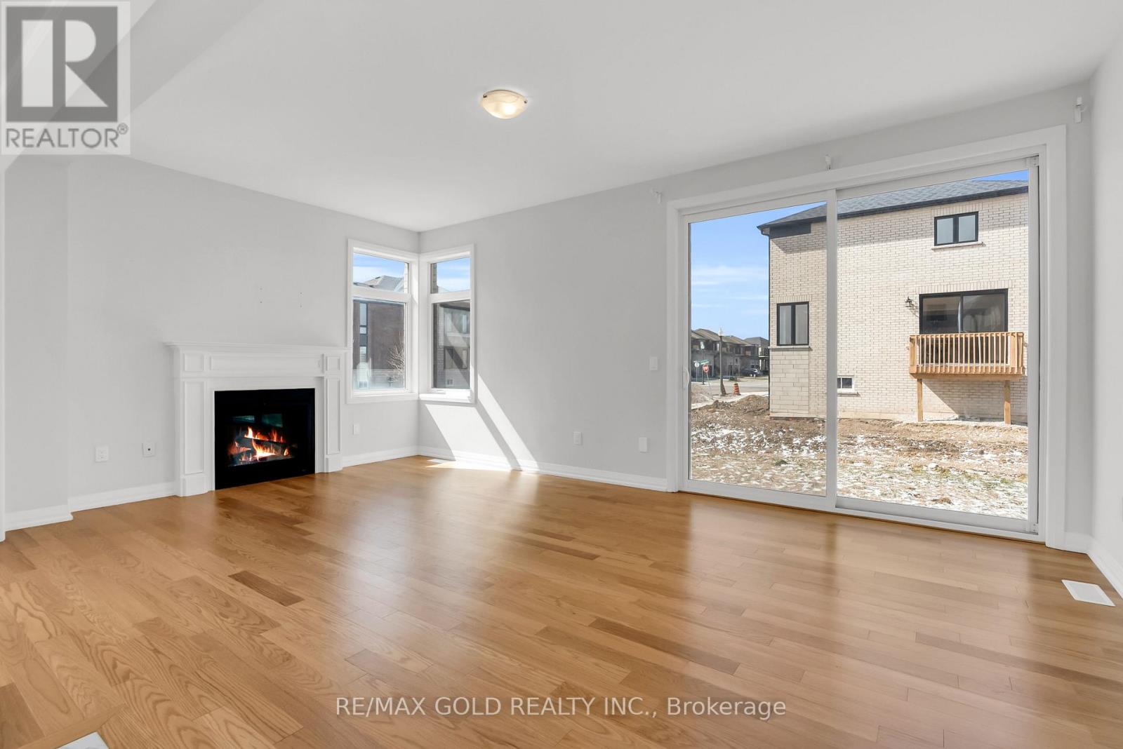 Stunning 2385 Sq.Ft (MPAC) East facing with Balcony (4 Bed 3 Bath) Garage only Linked Townhome on a Premium Corner Lot just like a detached home. Located in a family friendly community Havelock Corners near Pittock Conservation Area. Features open concept layout, 9 Ft ceilings, hardwood floors on main level, custom tiles & oversized windows. A beautiful L- shaped covered porch creates a warm and inviting entrance. Spacious main level offers a walk out living room with a fireplace, dining room, large breakfast area, modern kitchen with center island, S/S appliances, quartz countertops & a 2-pc powder room. Large backyard perfect for kids to play or entertain friends & family. Gas line is installed for BBQs. Parkings (driveway + garage) a direct door from the garage to the backyard for outdoor access. Upper level boasts a spacious primary bedroom with a 5-pc en-suite & walk-in closet. 3 additional bedrooms share a 4-pc bath & a private balcony for enjoying the view. Bright & spacious unfinished basement features a 3-piece rough-in bath, a cold cellar & endless potential to customize it to your liking & unlock additional income. 200 Amp Electrical Panel. Close plaza, school, Parks, transit, Trails & Thames River. Minutes to Highways 401 & 403, easy commute to London, Kitchener & the GTA. Turtle Island Public School is anticipated to start June 2026. Live in one of Woodstock's Best Neighborhoods! (id:64974)