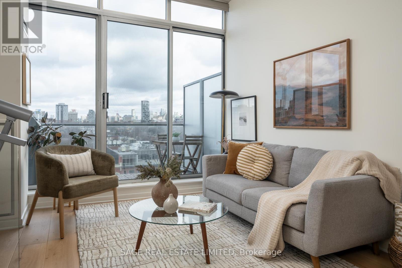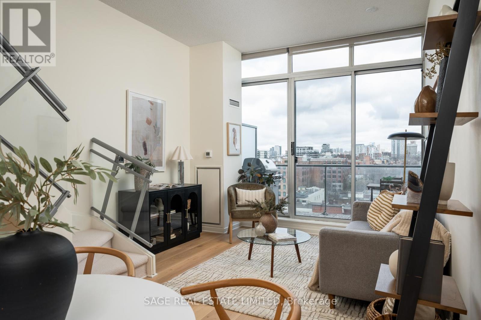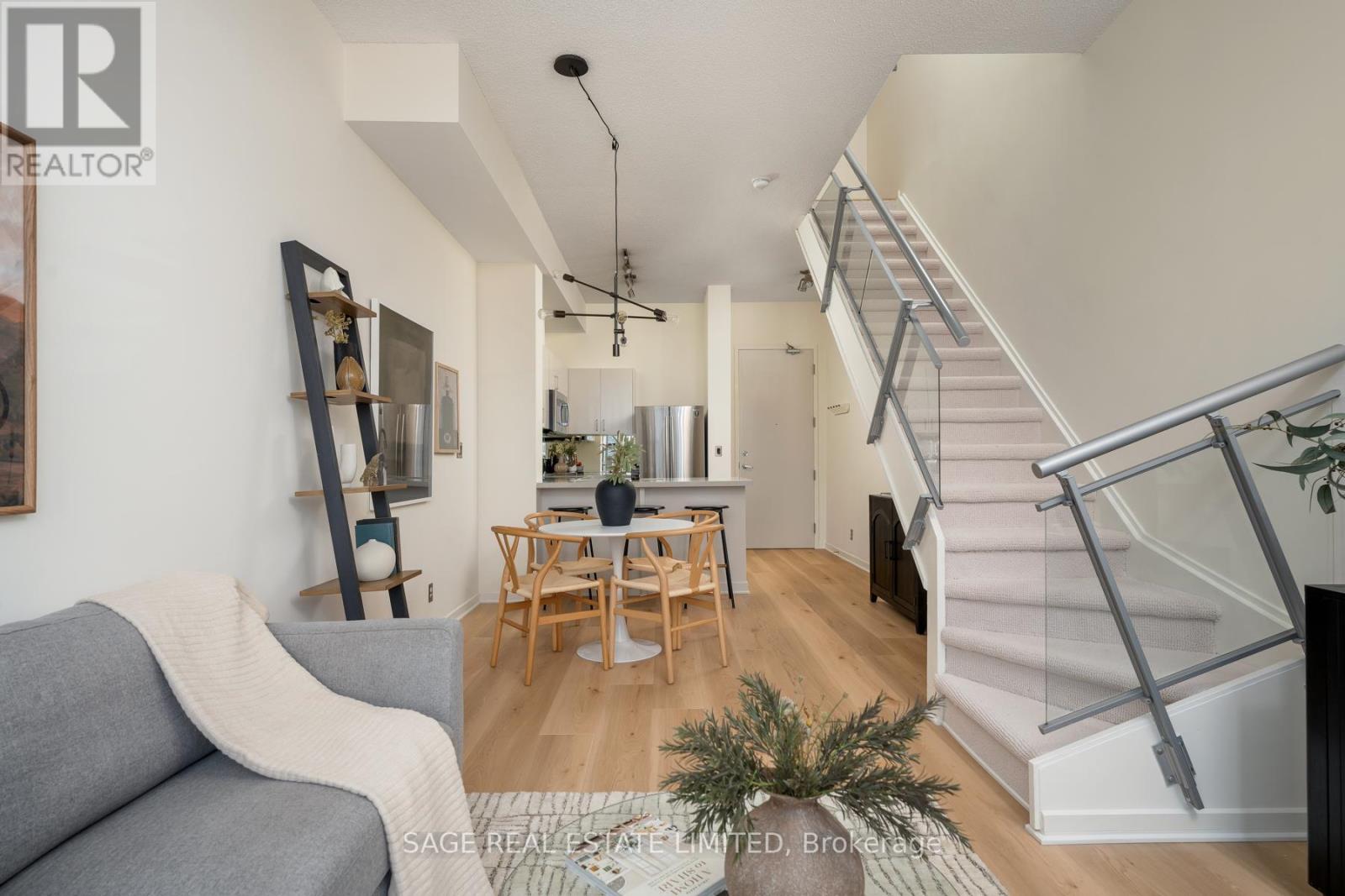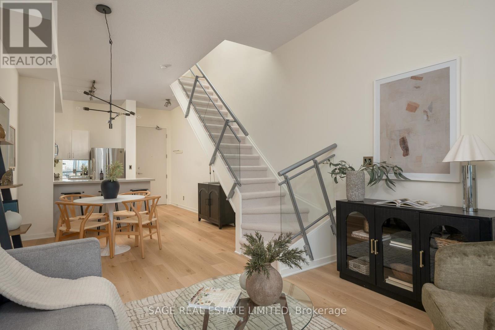 Like slipping into your favourite pair of jeans, this newly upgraded 2-level suite in the award winning District Lofts delivers both peppermint cool comfort and clear north facing views high from the 9th floor of this classic boutique building. The extra tall 10ft ceilings and top to bottom windows let the evening light in while you watch the city slow down to that song you have on replay. On the weekends, bottle caps clink across your caesarstone countertops, and an accommodating balcony comfortably sized to host your friends or recline after a long work week. Less than a 10 minute walk to Waterworks Food Hall and Shops at the Well, you're steps to gyms, grocers, parks, restaurants, cafes & minutes from multiple subway stations. Bring your bags, move in-ready with brand new Biyork flooring installed (2026), new carpet on stairs (2026) & refreshed kitchen cabinets & island (2026) plus full sized appliances! King West at your doorstep, you're in the heart of it all and steps from the action to make a game-time decision for the plans brewing in the group chat. (id:64974)