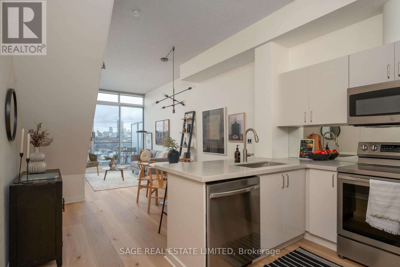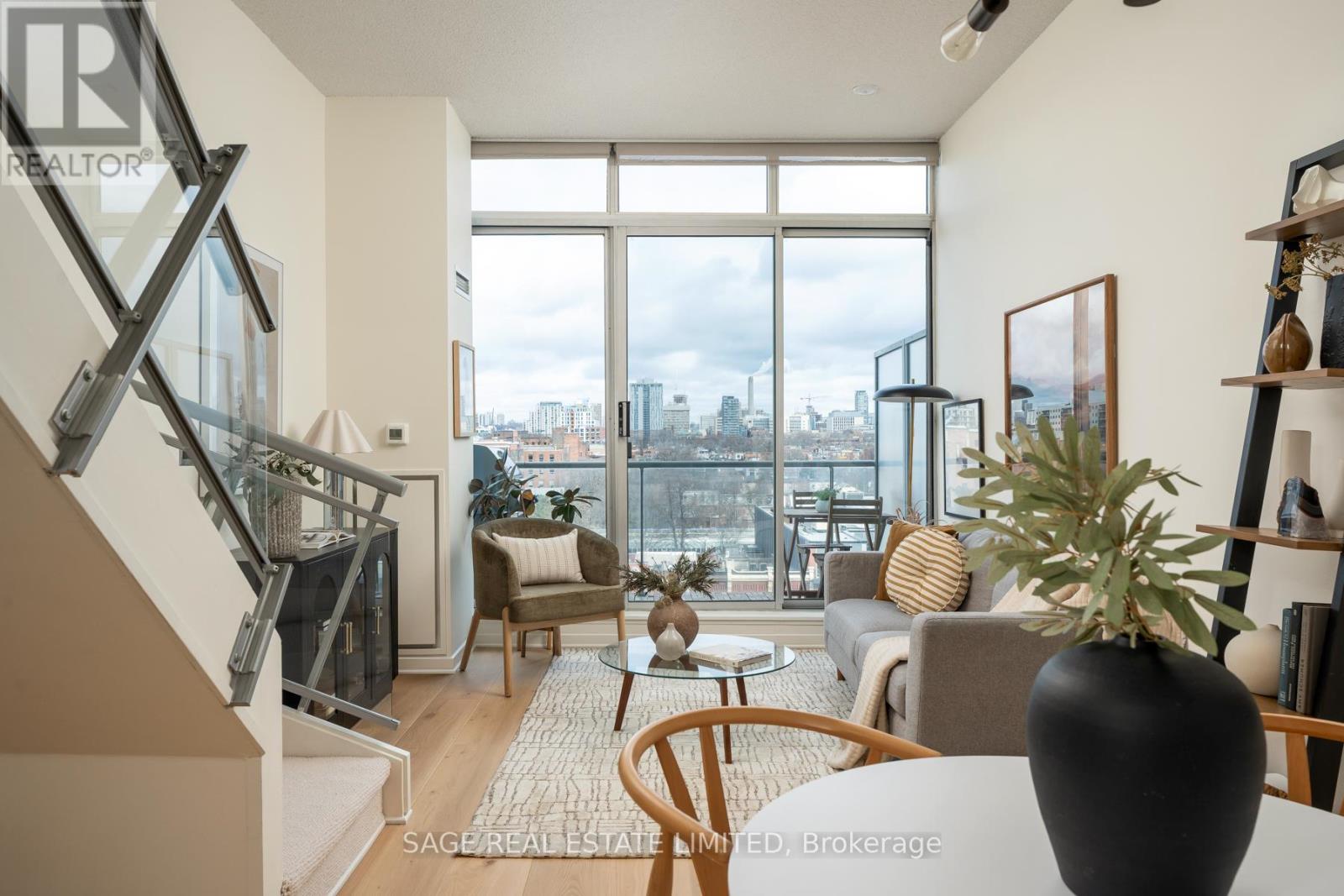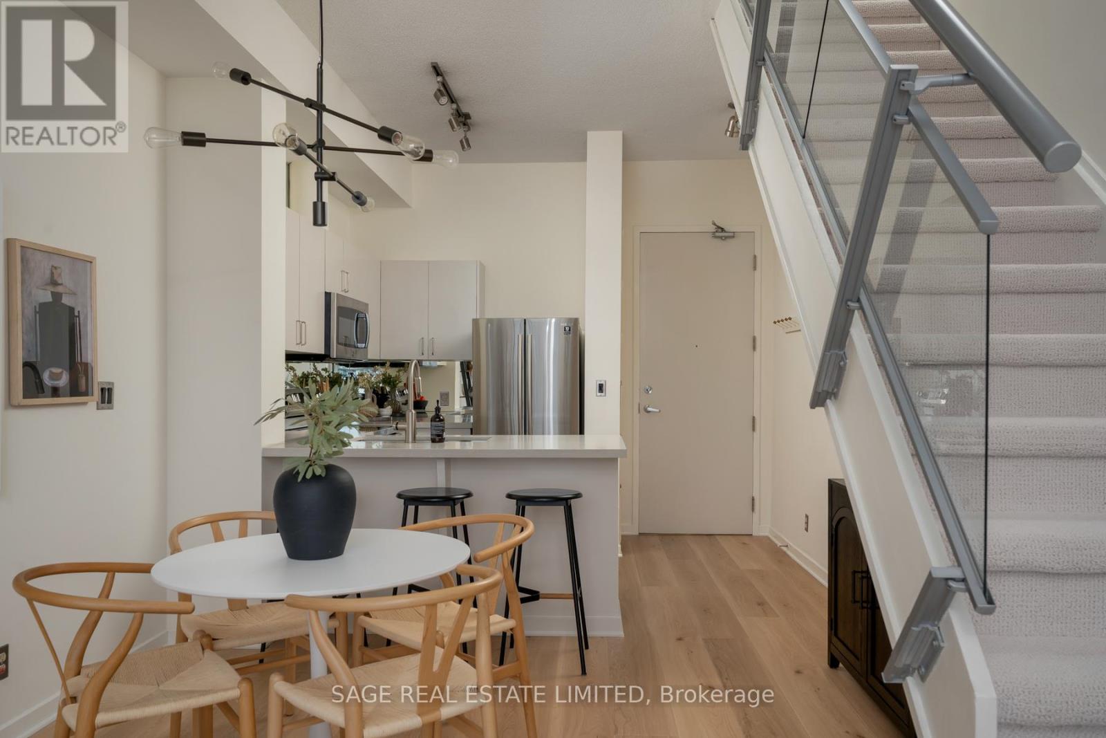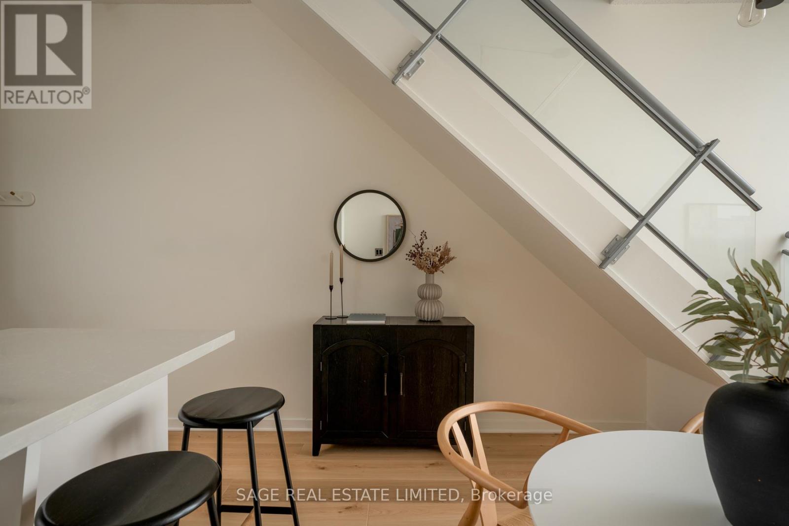 Like slipping into your favourite pair of jeans, this newly upgraded 2-level suite in the award winning District Lofts delivers both peppermint cool comfort and clear north facing views high from the 9th floor of this classic boutique building. The extra tall 10ft ceilings and top to bottom windows let the evening light in while you watch the city slow down to that song you have on replay. On the weekends, bottle caps clink across your caesarstone countertops, and an accommodating balcony comfortably sized to host your friends or recline after a long work week. Less than a 10 minute walk to Waterworks Food Hall and Shops at the Well, you're steps to gyms, grocers, parks, restaurants, cafes & minutes from multiple subway stations. Bring your bags, move in-ready with brand new Biyork flooring installed (2026), new carpet on stairs (2026) & refreshed kitchen cabinets & island (2026) plus full sized appliances! King West at your doorstep, you're in the heart of it all and steps from the action to make a game-time decision for the plans brewing in the group chat. (id:64974)