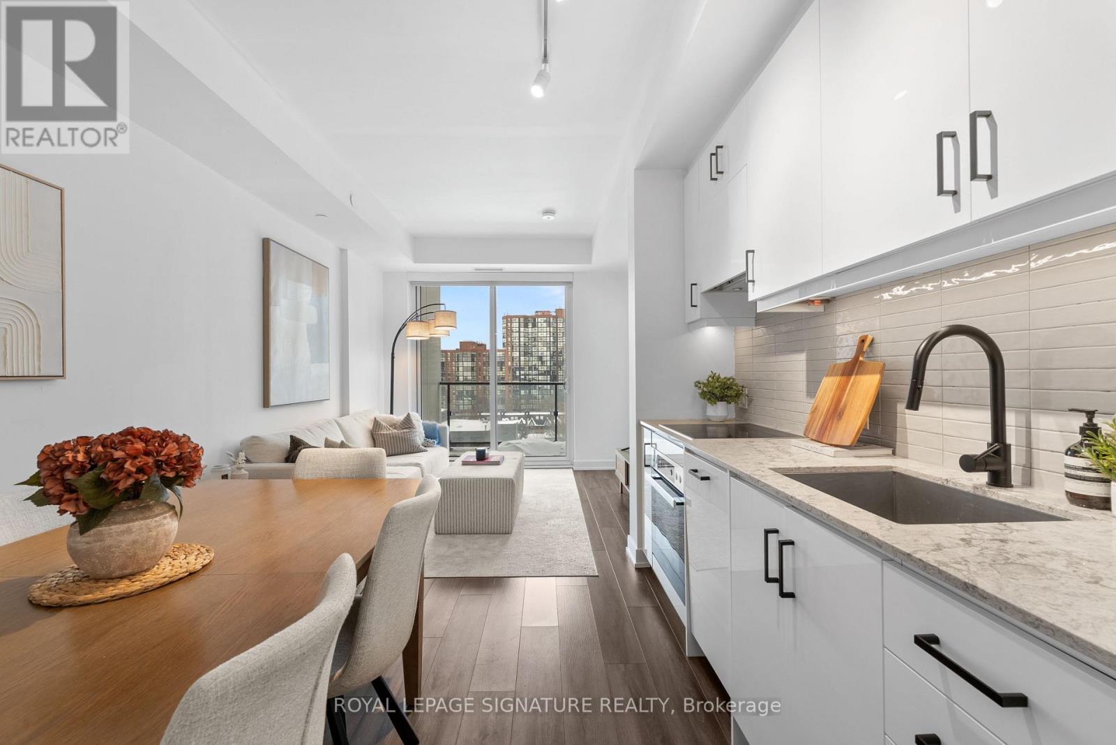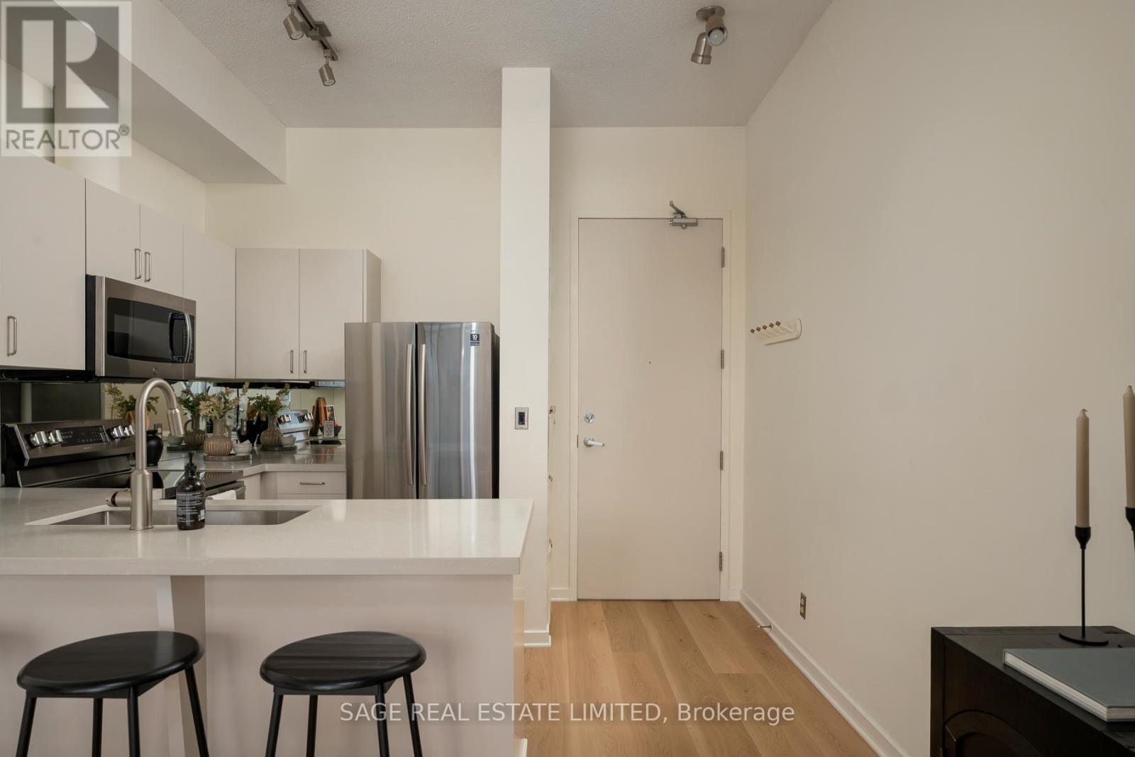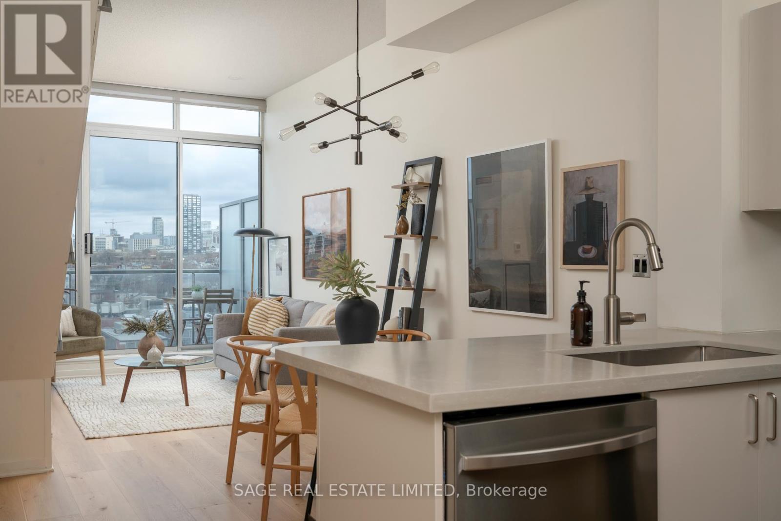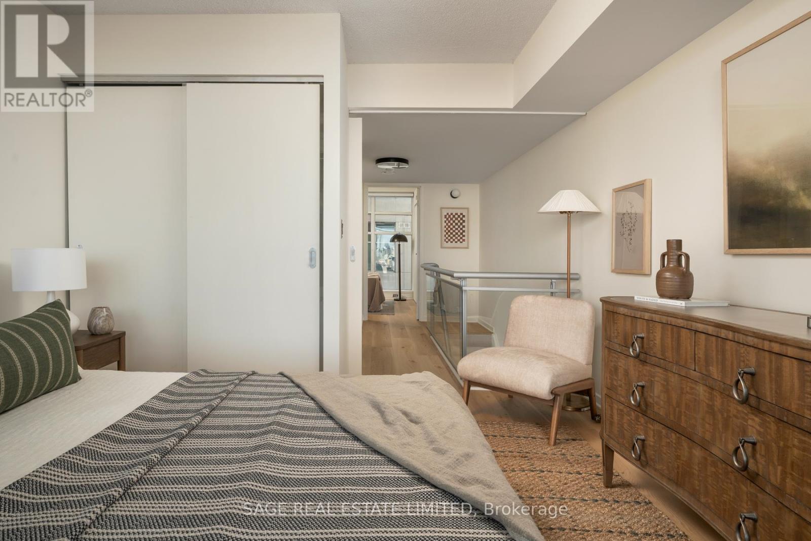 Like slipping into your favourite pair of jeans, this newly upgraded 2-level suite in the award winning District Lofts delivers both peppermint cool comfort and clear north facing views high from the 9th floor of this classic boutique building. The extra tall 10ft ceilings and top to bottom windows let the evening light in while you watch the city slow down to that song you have on replay. On the weekends, bottle caps clink across your caesarstone countertops, and an accommodating balcony comfortably sized to host your friends or recline after a long work week. Less than a 10 minute walk to Waterworks Food Hall and Shops at the Well, you're steps to gyms, grocers, parks, restaurants, cafes & minutes from multiple subway stations. Bring your bags, move in-ready with brand new Biyork flooring installed (2026), new carpet on stairs (2026) & refreshed kitchen cabinets & island (2026) plus full sized appliances! King West at your doorstep, you're in the heart of it all and steps from the action to make a game-time decision for the plans brewing in the group chat. (id:64974)