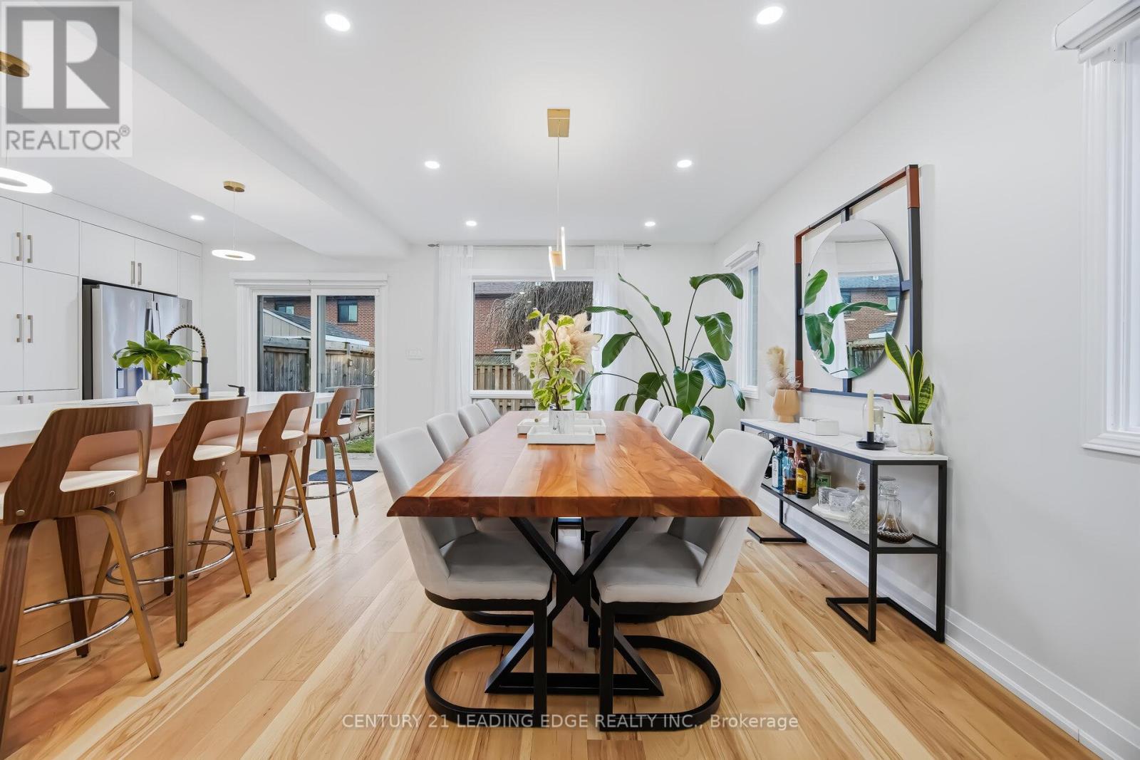 Beautifully maintained and extensively upgraded, this exceptional home on Redbird Crescent offers approximately 1,850 sq. ft. of thoughtfully designed living space, plus a fully equipped in-law suite ideal for multi-generational living. Showcasing true pride of ownership, the home features hardwood flooring throughout the main floor, loft, and stairs (2023), upgraded LED pot lighting, and fully automated smart lighting (2023) compatible with Alexa and Google. The custom-designed kitchen (2023) is both stylish and functional, complete with quartz countertops and backsplash, melamine cabinetry, and new appliances, perfect for everyday living and entertaining. A versatile loft provides additional living space and can easily function as a home office, media room, or potential fourth bedroom. Additional updates include automatic custom blinds, a renovated fireplace mantle, and an updated powder room (all 2023). Major mechanical upgrades include a newer high-efficiency furnace and new air conditioning system (2023), along with newer patio doors, windows, eaves, soffits, and garage door. Enjoy a low-maintenance exterior with professional landscaping, custom plantings, and a fully fenced yard. Ideally located on a quiet, family-friendly street backing onto William Dunbar Public School, this home offers both privacy and convenience. Situated in Liverpool, one of Pickering's most desirable neighbourhoods, with easy access to Toronto and York Region, 5 minutes to Pickering Go Station & Highway 401. This home delivers the perfect balance of suburban comfort and urban connectivity. *Some Pictures Are Virtually Staged.* (id:64974)