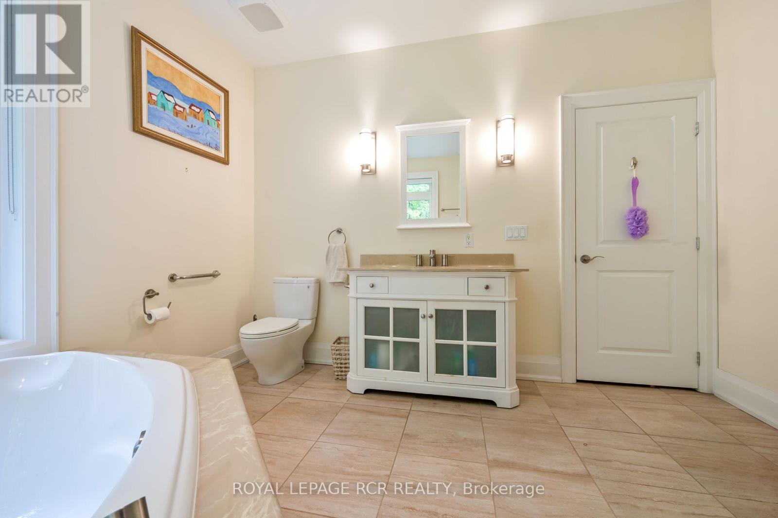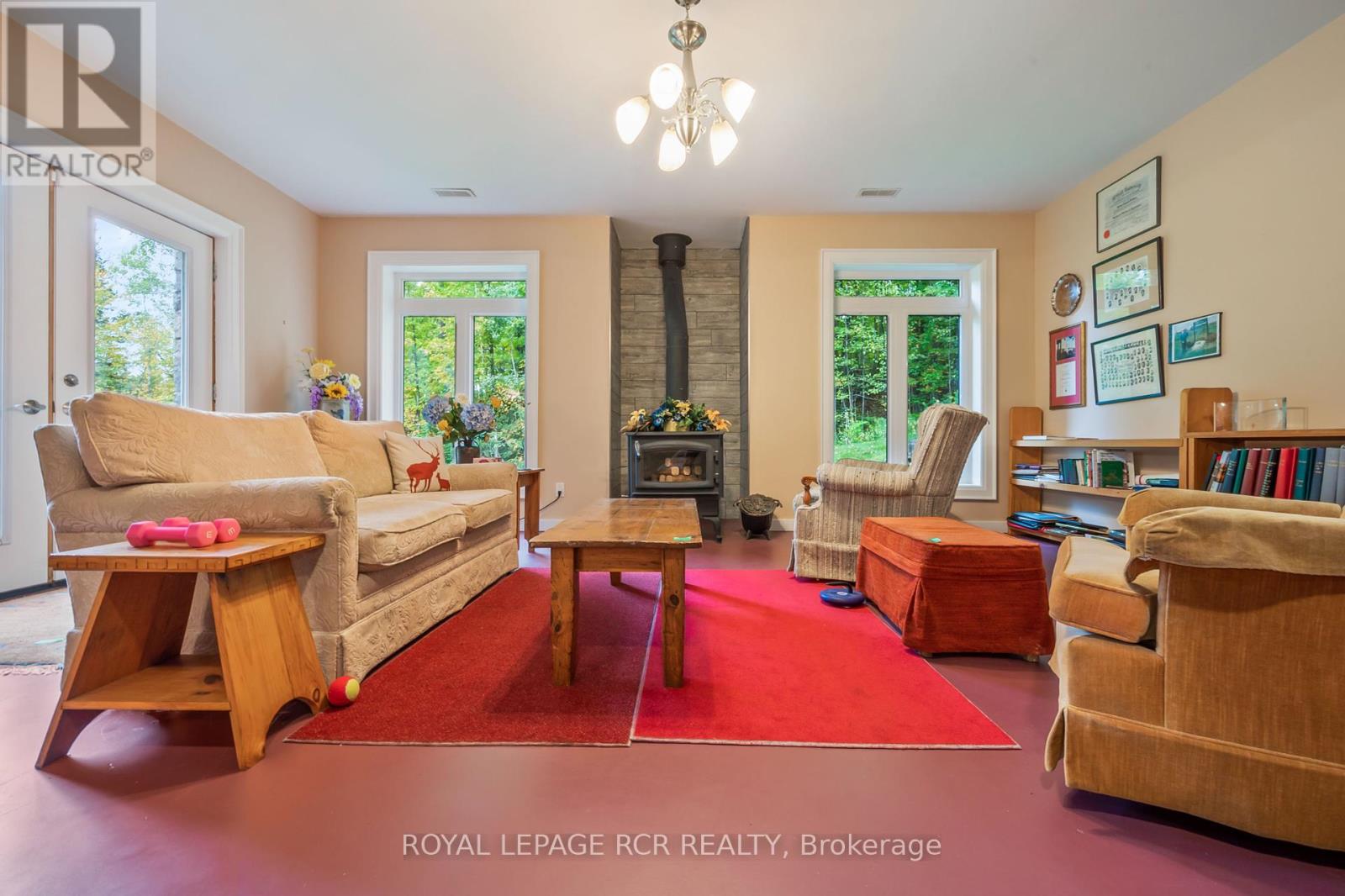 Set on 44.49 acres of rolling land with trails, a spring-fed pond, and the Eramosa Creek running through, this custom-built residence is a rare retreat where quality and comfort meet the beauty of nature. Thoughtfully designed with over 4,500 square feet of total living space, it offers 3 bedrooms, 3 bathrooms, and an oversized 3-car garage. Inside, every detail speaks to craftsmanship: hardwood and ceramic flooring, a chef's kitchen with granite counters, stainless steel appliances, custom cabinetry, and a generous centre island. The soaring great room features cathedral ceilings and a striking gas fireplace, where walls of windows bring the outdoors in and frame panoramic views. A highlight of the home is the expansive screened-in sunroom, complete with its own fireplace, a perfect spot to enjoy summer evenings or crisp autumn mornings surrounded by nature. The primary suite is designed as a private retreat, offering a walk-in closet and a luxurious 4-piece ensuite with a soaker tub tucked beneath corner windows, where you can unwind while gazing out at the trees and sky. The fully finished lower level provides a wealth of additional living space, warmed with in-floor heating and brightened by above-grade windows. A walkout extends the living space outdoors, offering easy access to the acreage beyond. Geothermal heating, natural gas, and efficient in-floor systems add to the home's comfort and sustainability, while a Generac backup generator provides peace of mind during any power interruption. With previous GRCA approval for a future workshop, the possibilities here are as impressive as the setting itself. (id:64974)