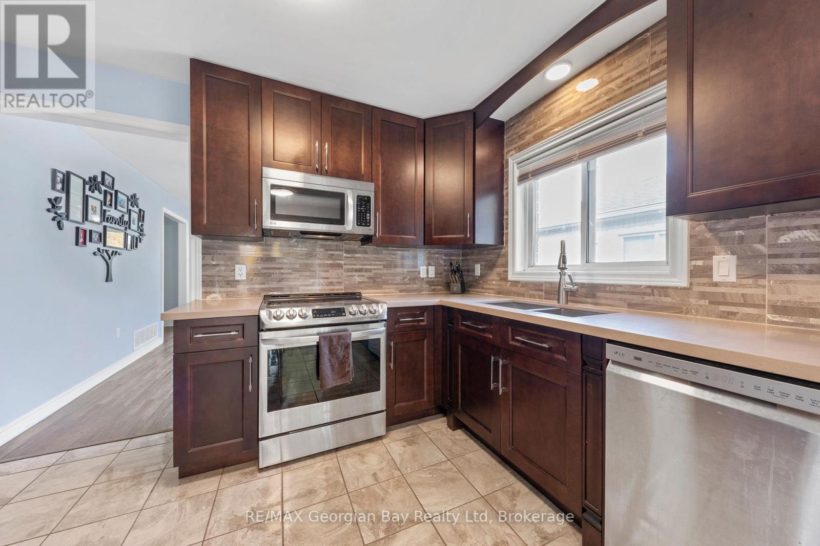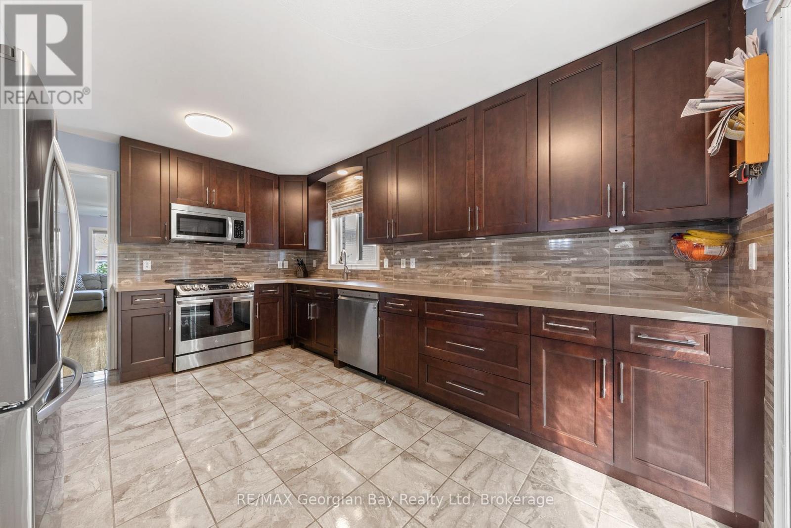 Welcome to the perfect family home, where space, style, and comfort come together! Located in Midlands sought-after west end, this beautifully maintained home offers everything your family needs to live, entertain, and relax. The heart of the home is the newer, large kitchen, complete with sleek quartz countertops and plenty of space for meal prep and casual dining. The open-concept living and dining area is perfect for gatherings next to the gas fireplace, while the oversized rec room downstairs provides the ultimate space for entertaining family and friends. With 2 bedrooms upstairs, including a spacious primary bedroom with a private ensuite, and 2 additional bedrooms downstairs, there's room for everyone. Three full bathrooms ensure convenience for the whole family. Additional features include gas heat, central air, HRV, fenced-in yard and a 2-car garage with a paved driveway for easy living. Nestled in a prime location, you're just a short walk from beautiful Georgian Bay and all the amenities the west end has to offer. This home is truly a place where memories will be made don't - wait to make it yours! (id:64974)