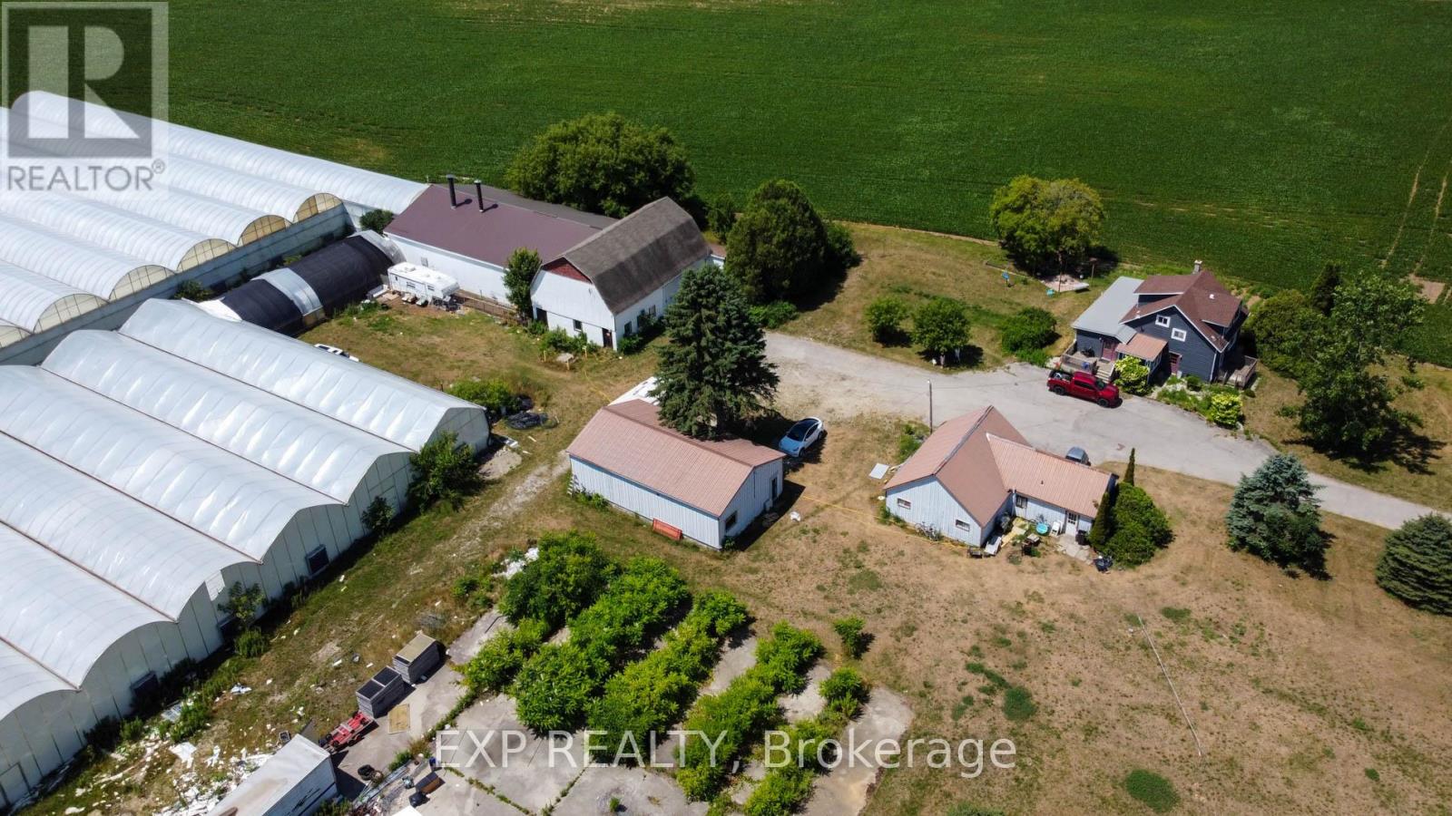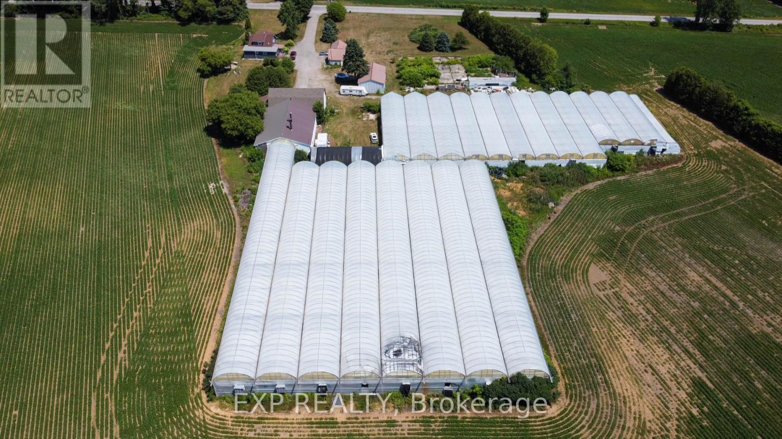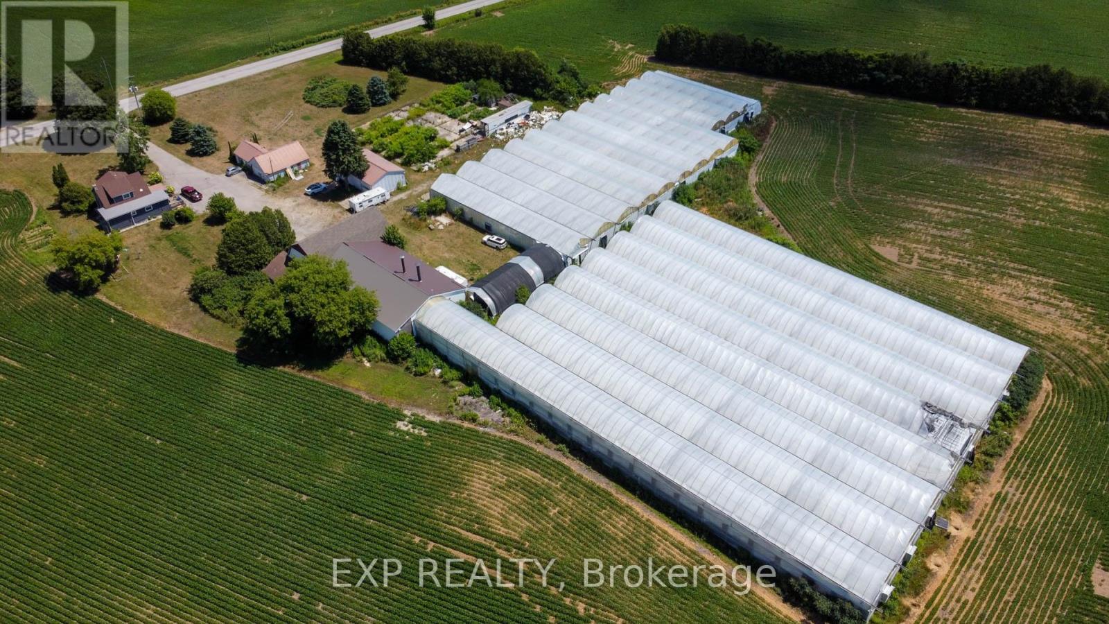 Exceptional agricultural opportunity on 95 acres featuring 75 workable acres, a spacious 5-bedroom detached farmhouse in good condition, and additional accommodations with a bunkhouse for labourers. A service/storage shop building is also included. Greenhouse Facilities: The property boasts a modern 1.75-acre greenhouse operation designed for high-yield production. Equipped with an above-floor, central hot water heating system capable of heating up to 4.5 acres, the greenhouse supports 3-4 crop cycles per year. Blackout system integrated throughout the property. Automated roof venting, controlled by a centralized computer system, allows for precise climate management. The same system can be adjusted to regulate both the hot water heating and ventilation. **Service & Utility Areas** The greenhouse complex includes over 6,000 sq. ft. of functional space for offices, barns, packing and shipping, warehousing, hot water storage, coolers, and boiler room - ideal for efficient operations and future expansion. (id:64974)