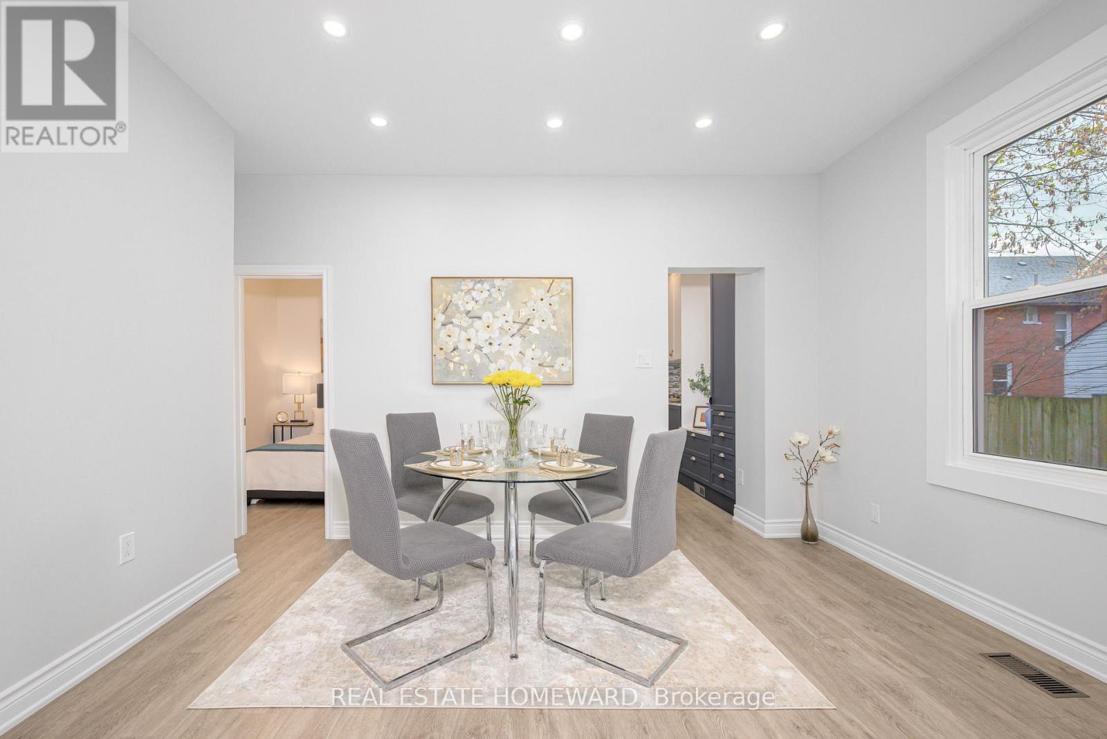 Welcome to this renovated detached house, on a large lot in downtown Oshawa! Looks as good in reality as it does in photos - please book your visit! Features 4 bedrooms; 2 bathrooms; new kitchen with new appliances; taller ceilings on main floor; open concept dining room; walkout to a south-facing large deck; private driveway with 4 parking spots; fenced backyard with ample space for kids, gardening, pets or anything requiring a large, flat, secure lot; large shed that can be used as storage or workshop. Kitchen is brand new with quartz tops, stylish backsplash, stainless steel appliances and a lot of functional storage and functional workspace. Cabinets are high quality, two-tone scheme, all custom made. Bathrooms are fully renovated with modern design touches, cabinets and accessories. The fourth bedroom and bathroom on the main floor offers flexibility to a family, and or an investor; so does the full, clean, insulated basement with laundry, storage, and secluded office space (currently). Very close to schools, close to downtown higher education institutions campuses, downtown entertainment and amenities; major shopping is a short walk away; major transit is on next streets over, hospital and park. Most renovations are either new as of 2025 or very recent. New 200 Amp electric panel/service. (id:64974)