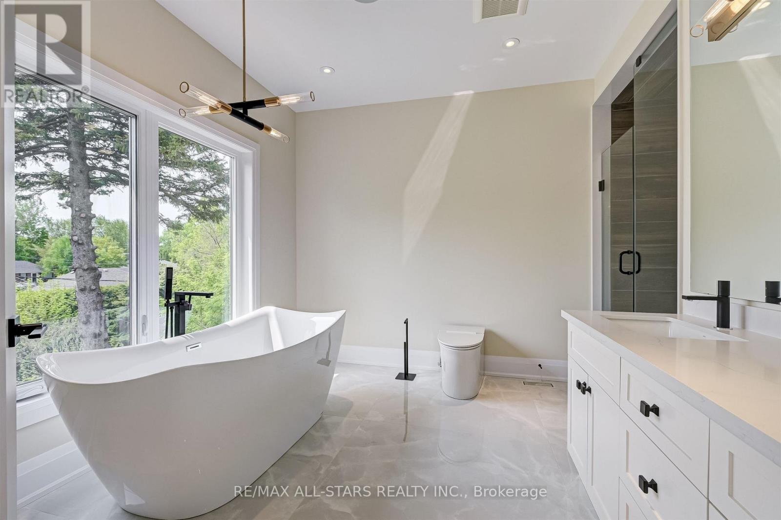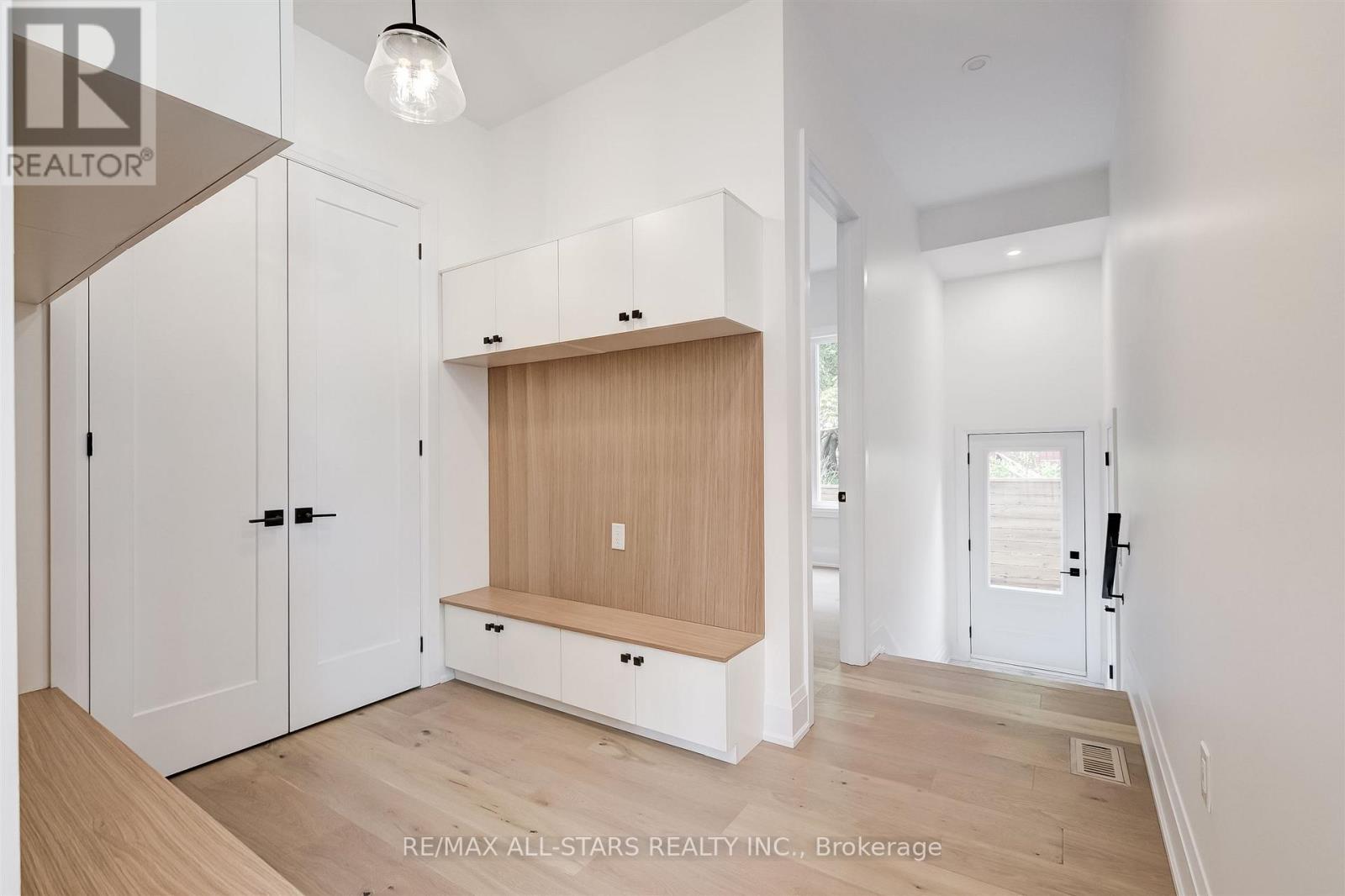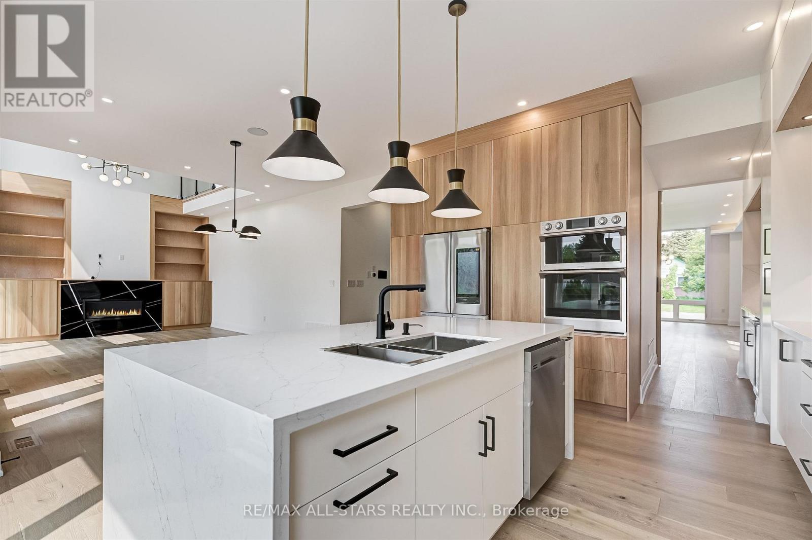 Welcome to 93 Cree Ave., a 2022-built contemporary smart home tucked away on a mature, tree-lined, QUIET CUL-DE-SAC in the coveted Cliffcrest neighbourhood. This striking residence boasts exceptional curb appeal with its elegant Indiana limestone facade. Spanning approximately 5,000 square feet of luxurious living space (including the basement), the interior showcases an open-concept, free-flowing layout with airy high ceilings, including a dramatic 20-foot-high soaring ceiling in the great room. Oversized windows create a seamless "indoor/outdoor" feel, complemented by custom drapery valued at approximately $35,000, two linear gas fireplaces, multiple skylights, and custom millwork throughout. Enjoy sun-filled principal rooms, a functional mudroom with a side entrance, engineered oak floors, and a luxurious custom chef's kitchen featuring solid oak cabinets, stainless steel appliances, a serving area, a waterfall centre island, and a walk-out to the deck and a fully fenced entertainers' yard. Upstairs, you'll find four spacious bedrooms, each with sleek en-suite bathrooms and custom built-in closet organizers. The fully finished basement adds valuable living space and offers convenient walk-up access. Thoughtfully designed and finished, this exceptional home delivers the perfect blend of space, style, and sophisticated modern living. (id:64974)