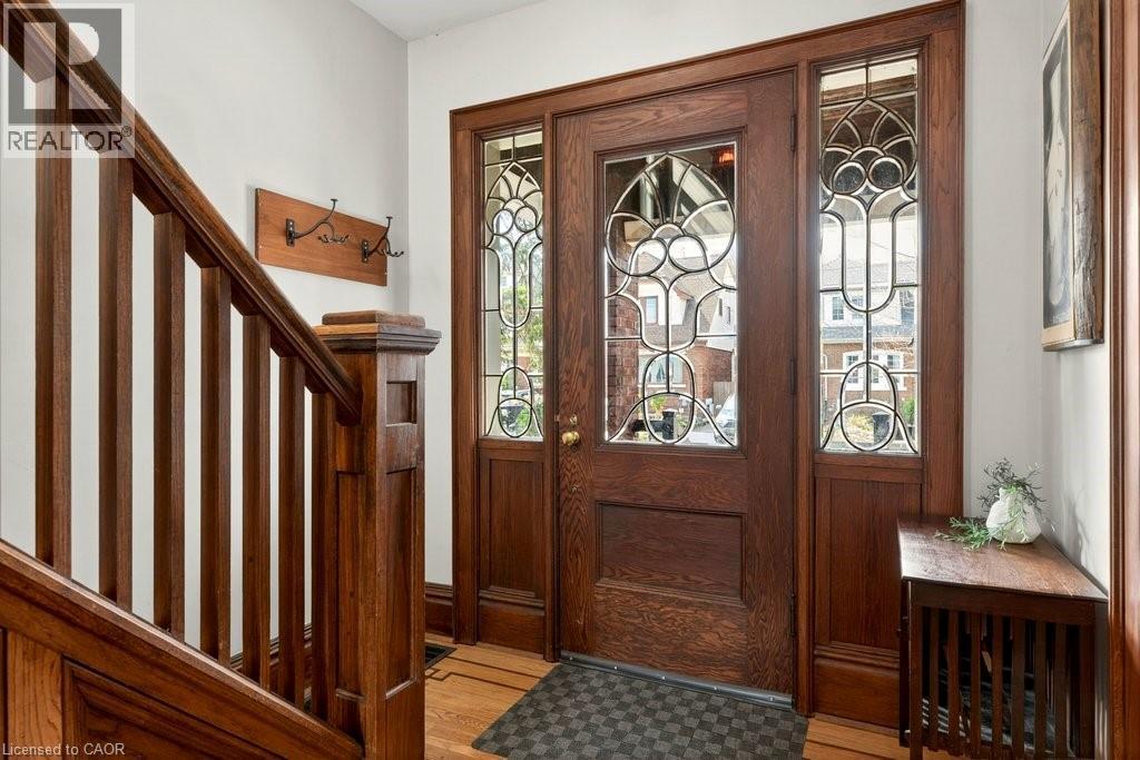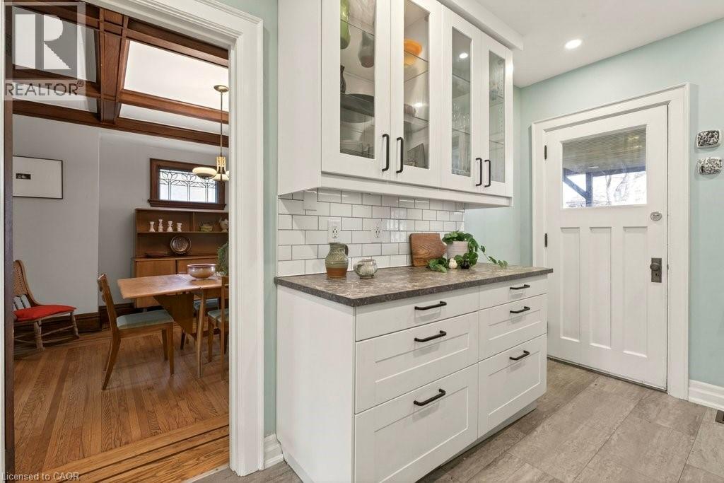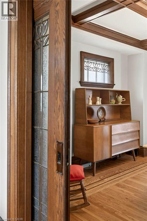 Welcome to this beautifully cared-for 1929 home—warm, inviting, and rich with original character. Start your day on the covered front porch and step through striking leaded glass door into an interior where craftsmanship shines: preserved hardwood floors with intricate inlay, a coffered dining room ceiling, and lovingly maintained period details including the original fireplace mantel, leaded glass windows, and classic pocket doors. A bright, renovated kitchen offers a blend of style and function. Upstairs, you’ll find three generously sized bedrooms—each with its own walk-in closet—and a beautifully updated 4-piece bath. The fully finished basement provides excellent flexibility for in-law or multi-generational living complete with a separate entrance, bedroom, sink area, and updated 3-piece bath. Outside, the covered rear deck (updated 2019) is perfect for lounging and BBQs and overlooks a fully fenced backyard. The garage, with electricity, sits beyond parking for up to three vehicles. Ideally located just steps from Gage Park and the vibrant shops and cafés of Ottawa Street North, with Cunningham School at the end of the block, this is a truly beloved home in the sought-after Delta neighbourhood. RSA. (id:64974)