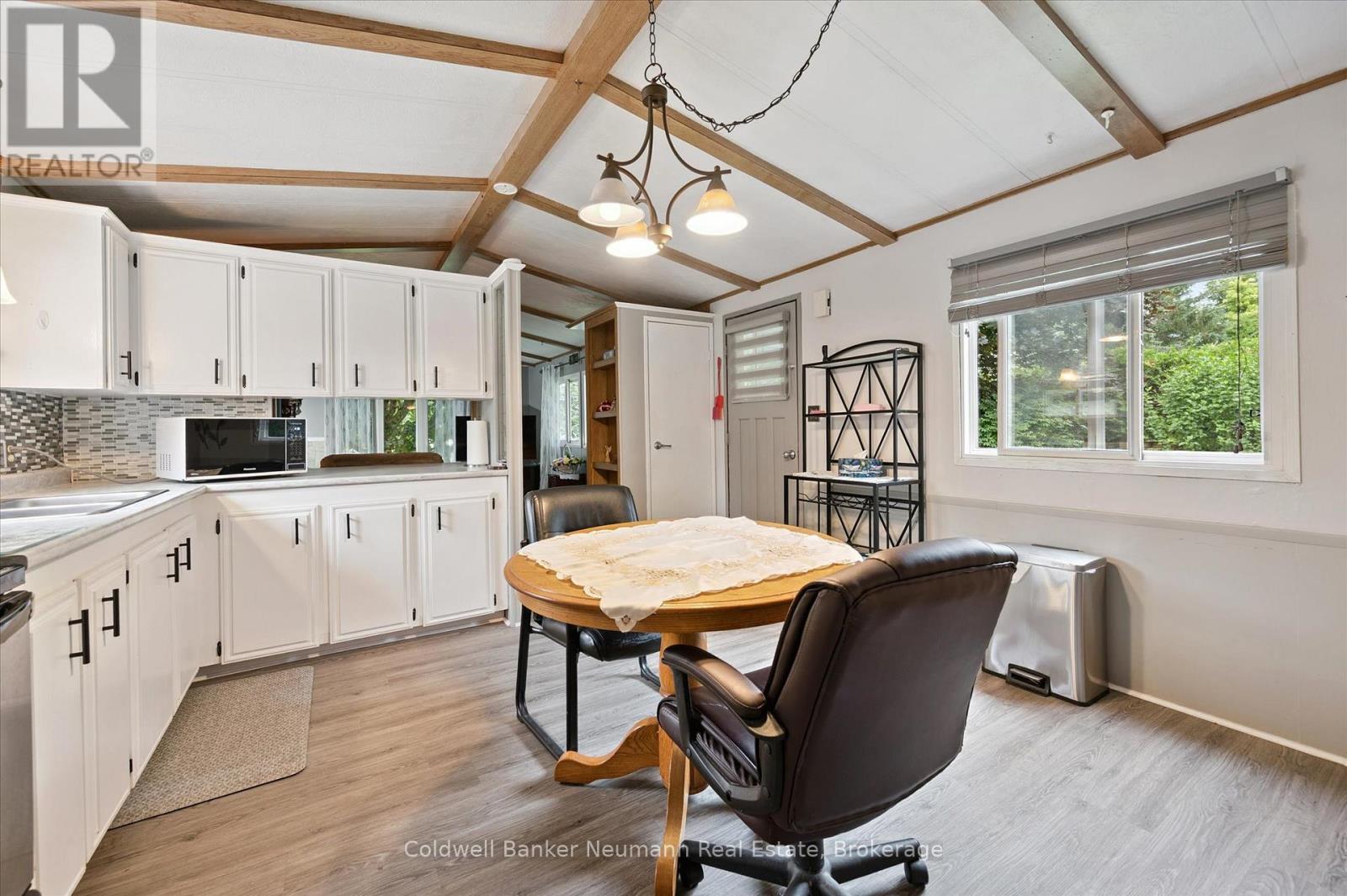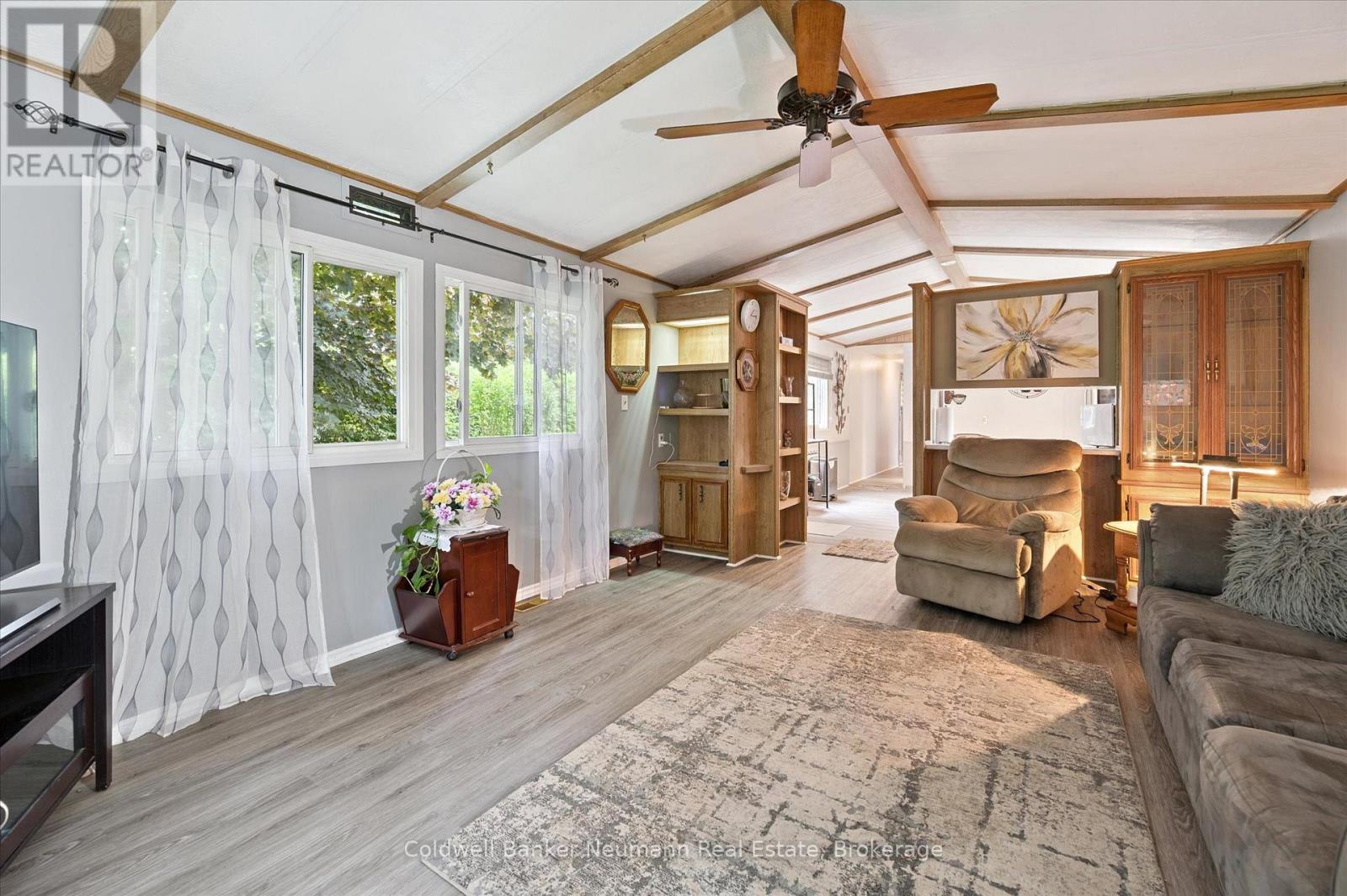 Privacy plus!! This well maintained 2 bedroom bungalow is surrounded by an 8 foot hedge, which allows ultimate privacy from others! The only thing to be seen from the road is the double paved driveway and shed. Inside you will find a generous size eat-in kitchen, living room with propane stove, updated 3 piece bathroom combined with laundry and a primary bedroom with wall to wall closet. The exterior vinyl siding was painted about 2 years ago, furnace and central air is about 7 years old, the windows and roof about 10 years ago. Located on a street with great neighbours! This modular home is located within Beverly Hills Estates, a residential modular home park, with a community centre and scheduled events for residents to join (or not!) All homes are owner occupied-no rentals! Come out and see this wonderful affordable home in a great community! (id:64974)