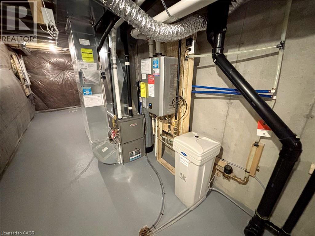 BRAND NEW NEVER LIVED IN! This spacious 1,618 sq ft, move-in ready 3-bedroom plus den, 2.5-bath townhouse islocated in Empire Avalon's sought-after Caledonia community and offers modern, upscale living with a good-sized backyard and thousands spent in quality upgrades throughout. The bright open-concept main floor features 9ft ceilings, upgraded laminate flooring on the main and second levels, a convenient walk-in closet on the main floor by the foyer, and a premium kitchen with stylish modern finishes, brand new stainless steel appliances, ample cabinetry and counter space, and a functional island with breakfast bar, flowing seamlessly into sun-filled living and dining areas with sliding patio doors. Upstairs, the spacious primary bedroom offers a walk-in closet and a luxurious ensuite with a soaker tub, with two additional well-sized bedrooms, including a walk-in closet in the second bedroom along with a versatile office or study area and a full 4-piece bath. ***Enhanced with premium water and comfort rentals throughout, including a water softener, chlorine filter, reverse osmosis system, tankless water heater, and air conditioner which are ALL INCLUDED IN THE RENTAL PRICE*** while additional highlights include direct access to the single-car garage and an unfinished basement with painted concrete floors, lower-level laundry, and plenty of storage space, all set in a prime location minutes to schools, parks, shopping, dining, golf courses, scenic trails, the Grand River, and easy access to Hamilton. (id:64974)