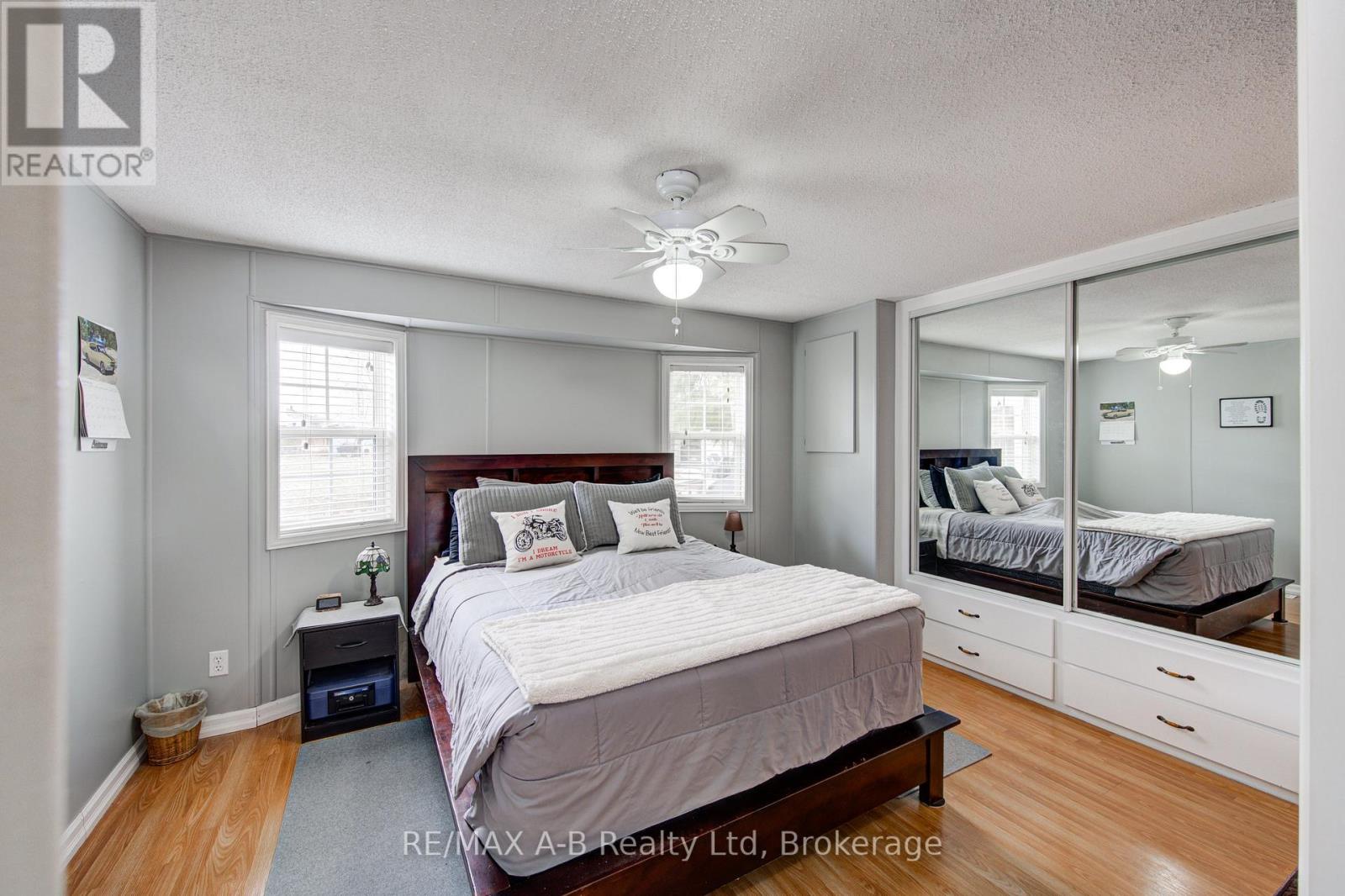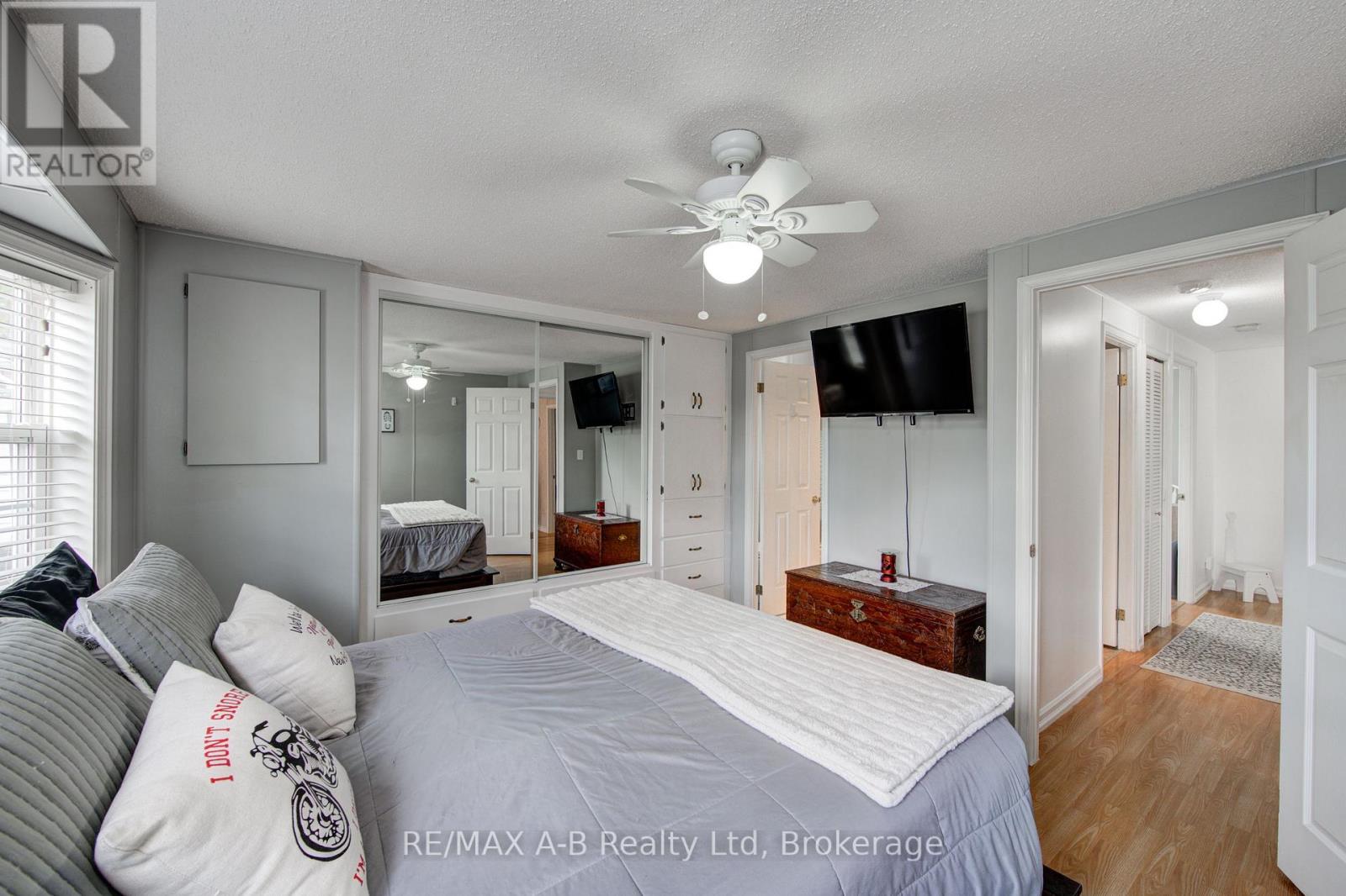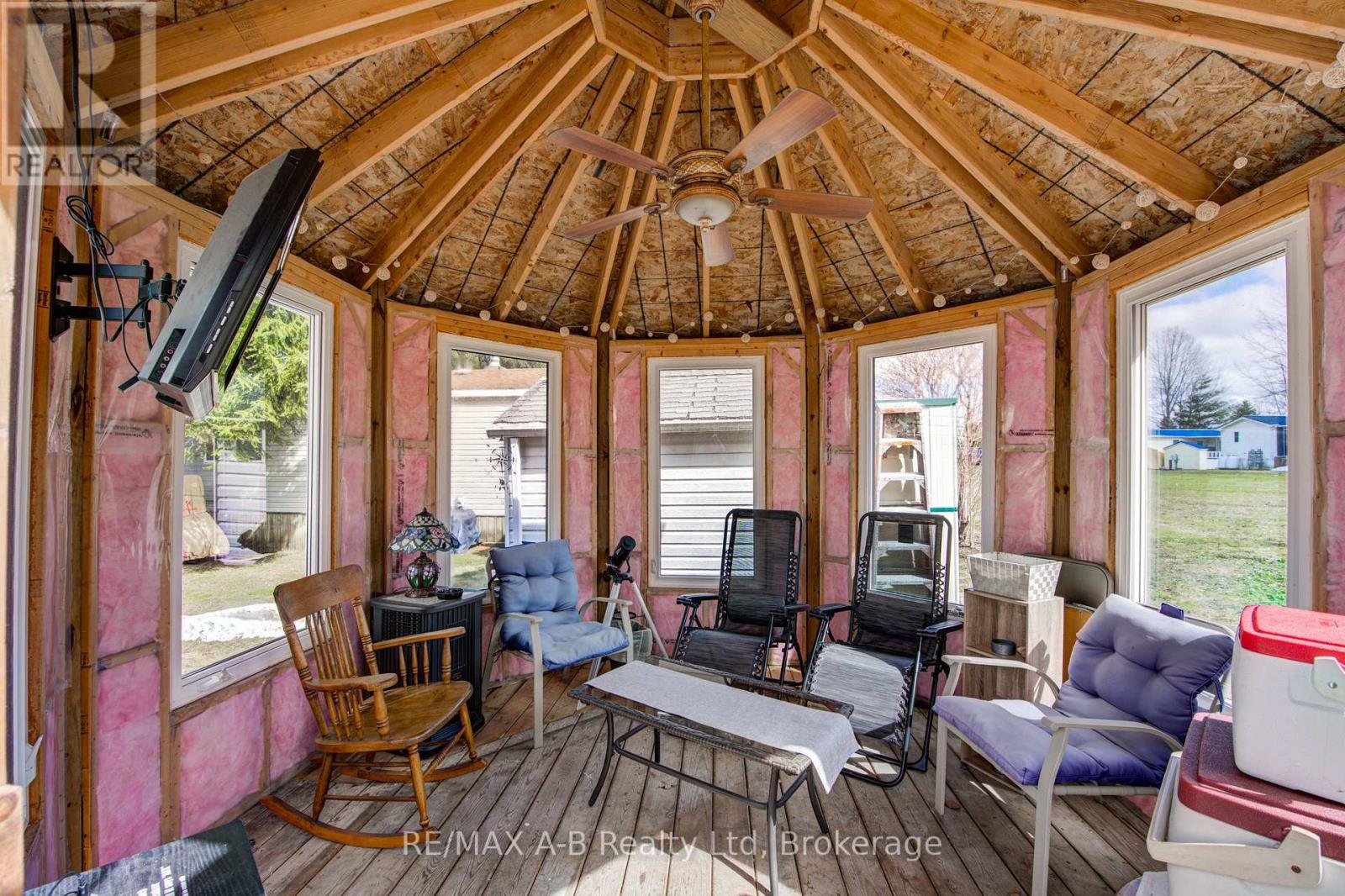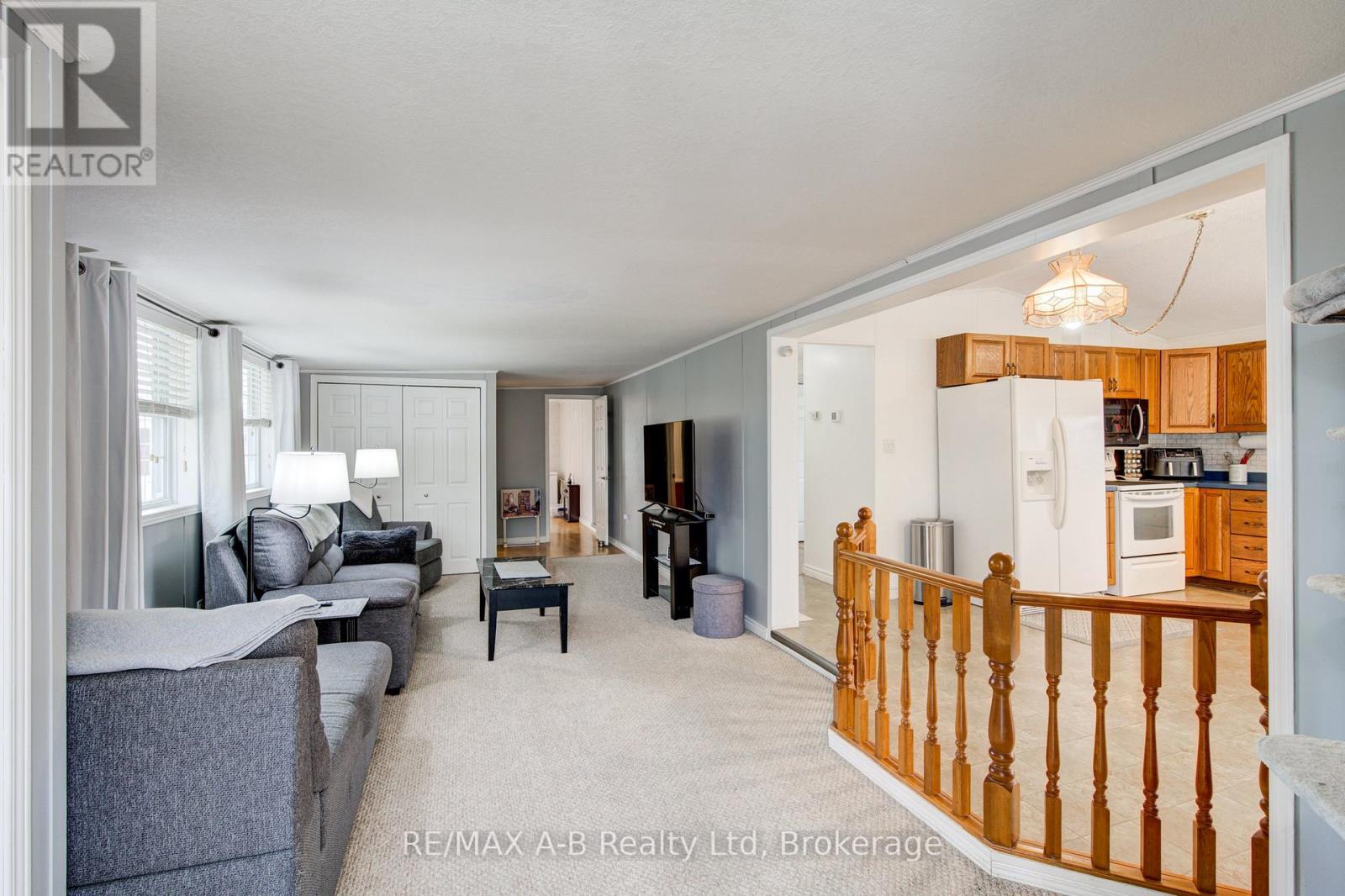 Enjoy a more relaxed lifestyle at the lovely Happy Hills Retirement Resort. Located in a gated community this lovely 2 or 3 bedroom home offers approximately 1366 square feet of living space with 2 full baths, a spacious eat in kitchen, a large living room, primary bedroom with a cheater ensuite and built in closet with dresser drawers. The back room could be either a 3 rd bedroom or office or family room. The rear yard offers a wood deck, a closed in insulated gazebo great for entertaining or those rainy nights, and extra storage with the garden shed with hydro and additional storage located under the unit and worry no more about the hydro going off, this unit offers a Generlink generator, also included for this unit is a pop up carport great for the winter months. Owning a home in this resort you have access to the community clubhouse with indoor pool, social events, and access to the trailer park amenities during the summer season. Call today for more information or your own private viewing on this great home, it might be just what you have been looking for. (id:64974)