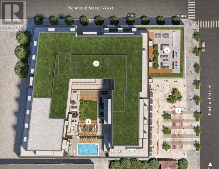 543 Richmond Residences at Portland | Sophisticated 1+Den Sanctuary Discover modern downtown living in the heart of Toronto's Fashion District. This bright and spacious 1-bedroom plus large den suite is meticulously designed for style, comfort, and versatility. THE SUITE Flexible Layout: The large den is perfect for a professional home office, nursery, or guest room. Premium Finishes: 9ft smooth ceilings, wide 5.5" laminate flooring, and elegant light fixtures. Modern Kitchen: Custom cabinetry, under-cabinet lighting, quartz countertops, and stainless steel appliances. Spa-Like Bath: Features a walk-in shower with a frameless glass door. Private Oasis: Enjoy a private balcony overlooking lush gardens, a serene courtyard, and the outdoor pool. Climate & Comfort: Four-pipe fan coil system for year-round climate control and manual roller shades included. THE BUILDING AMENITIES24-Hour Concierge & Suite Entry Alarm Monitoring. Rooftop Terrace with outdoor pool and BBQ area. State-of-the-art Gym and Yoga Studio.8th-Floor Study Lounge with outdoor terrace. Games Room, Theatre Room, and Party Room with bar and catering kitchen. THE LOCATION Unbeatable convenience in the Fashion District. Steps from the Financial District, King West's world-class dining and nightlife, and multiple TTC lines. This is the perfect blend of luxury and investment potential. (id:64974)