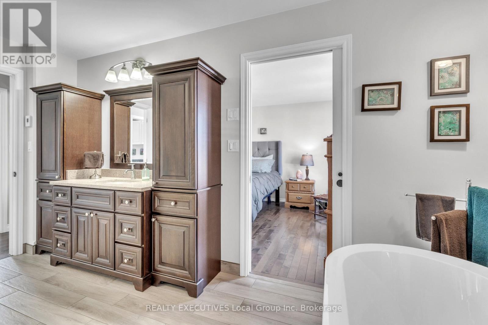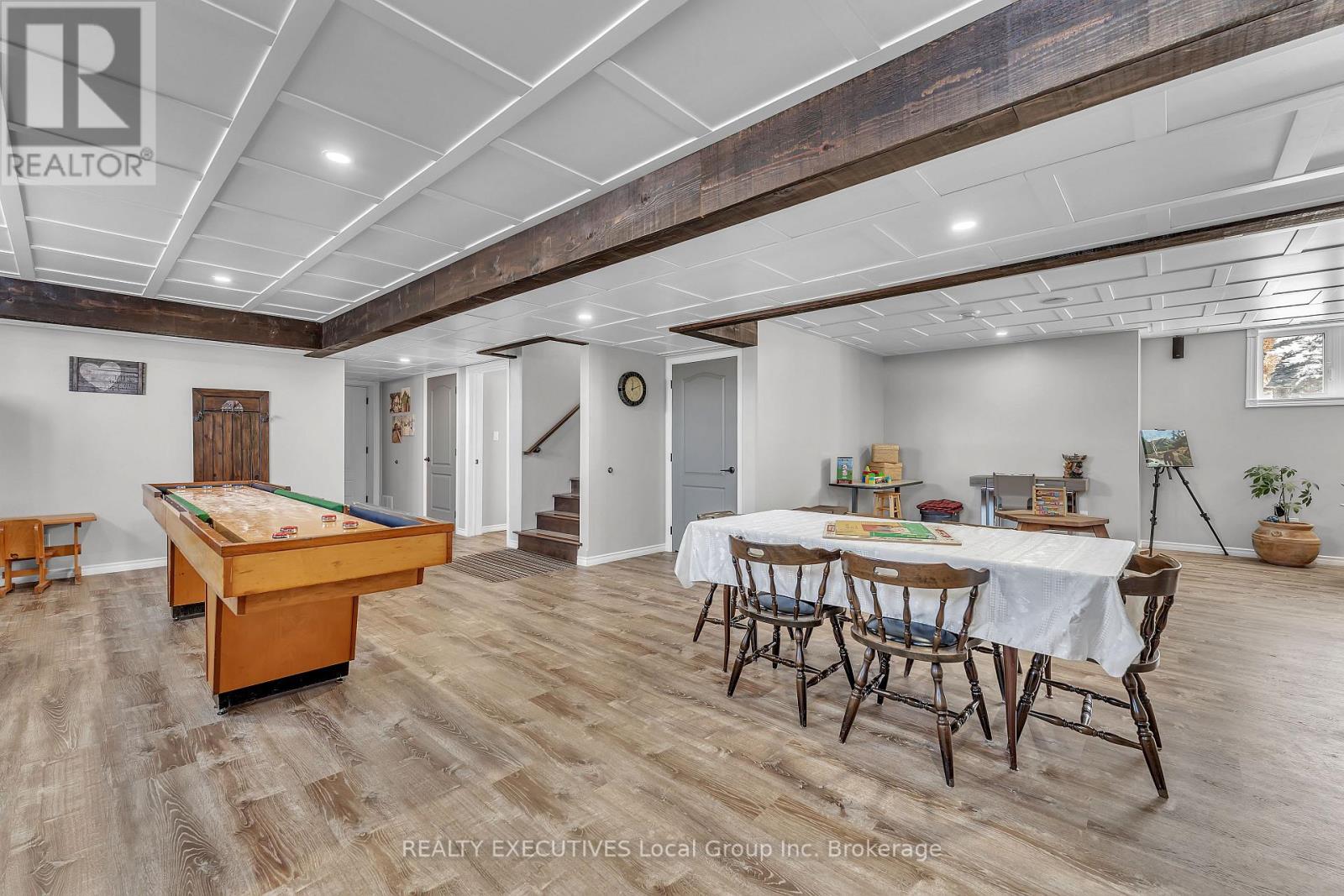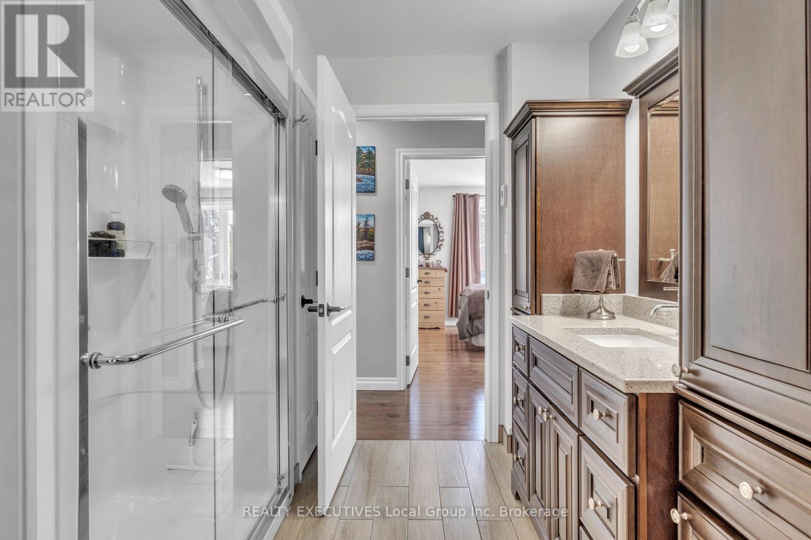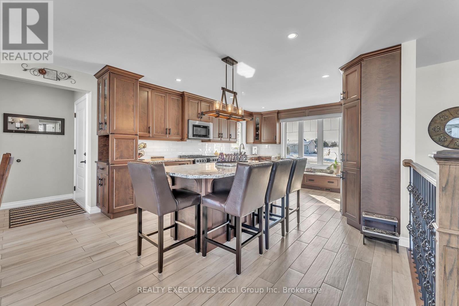 Situated on 1.79 acres along the banks of the Veuve River, 933 Betty Road offers the perfect blend of executive country living with municipal water and natural gas services. Built in 2016, this impressive home showcases quality finishes and thoughtful design throughout. Upon entering the main floor, you are welcomed by heated ceramic tile flooring that leads into the living room featuring vaulted ceilings, hardwood floors, a floor-to-ceiling stone accented gas fireplace + expansive windows that flood the space with natural light while offering beautiful views of the property. The chef-inspired kitchen boasts a full stainless steel appliance package, floor-to-ceiling maple cabinetry providing abundant storage, and gleaming granite countertops that offer ample prep space. The open-concept layout flows seamlessly into the dining area and provides easy access to the outdoor entertaining space. Down the hall, the primary bedroom features a walk-in closet and convenient access to the 4-piece main bathroom, that is complete with heated floors, quartz countertop, and a relaxing soaker tub for a spa-like experience at home. A second bedroom and main floor laundry complete the main level. The fully finished basement offers another bedroom, a 3-piece bathroom with heated floors, a cedar-lined storage closet, under-stair walk-in storage, utility room, and a large open-concept rec/games room-perfect for entertaining family and friends. The attached 22' x 26' garage is fully insulated and heated with natural gas and offers convenient access from both levels of the home. Outside, you will find a 40' x 30' detached insulated and heated garage/shop, ideal for hobbies, storage, or additional workspace. The beautifully maintained grounds feature an interlock patio, landscaped garden beds & retaining walls, and an in-ground sprinkler system. (id:64974)
