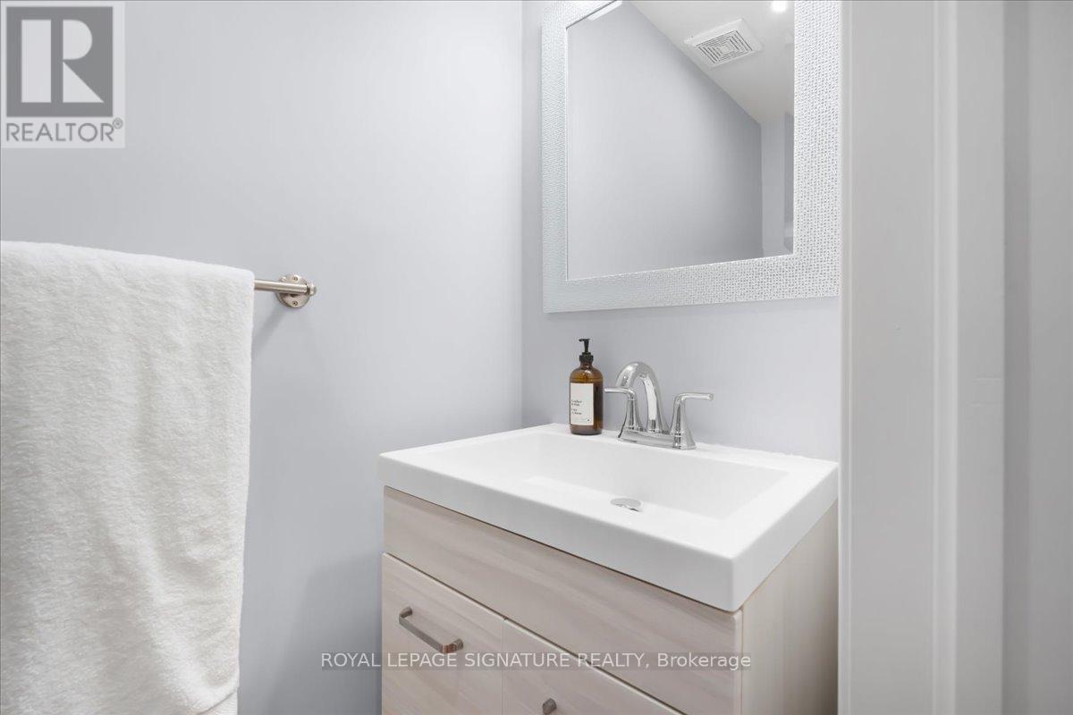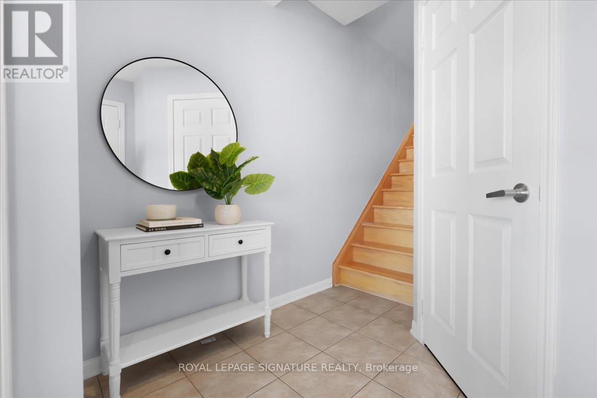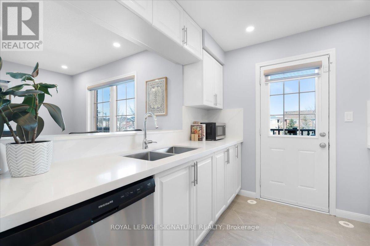 Welcome to this beautifully updated freehold townhome offering the perfect blend of style, function, and location. With over 900 square feet of thoughtfully designed living space, this home is an ideal condo alternative - without the monthly maintenance fees. Featuring 2 spacious bedrooms and 2 fully renovated modern bathrooms, this home has been tastefully updated throughout. The sleek, modern kitchen showcases contemporary finishes, ample cabinetry, and an eat-in breakfast bar that seamlessly connects to the open-concept dining and family room - perfect for entertaining or everyday living. Step out onto your private balcony and enjoy one of this home's most unique features: unobstructed views overlooking scenic trails. Enjoy your morning coffee or evening meal in peaceful privacy - no direct views into neighbouring townhomes, making this a premium unit. Additional highlights include; attached 1-car garage, 2 additional driveway parking spaces, Functional, efficient layout ideal for first-time buyers, downsizers, or investors, Freehold ownership with no condo fees! This is low-maintenance living without compromise - modern updates, generous parking, and a rare setting fronting onto trails, all in one exceptional package. (id:64974)