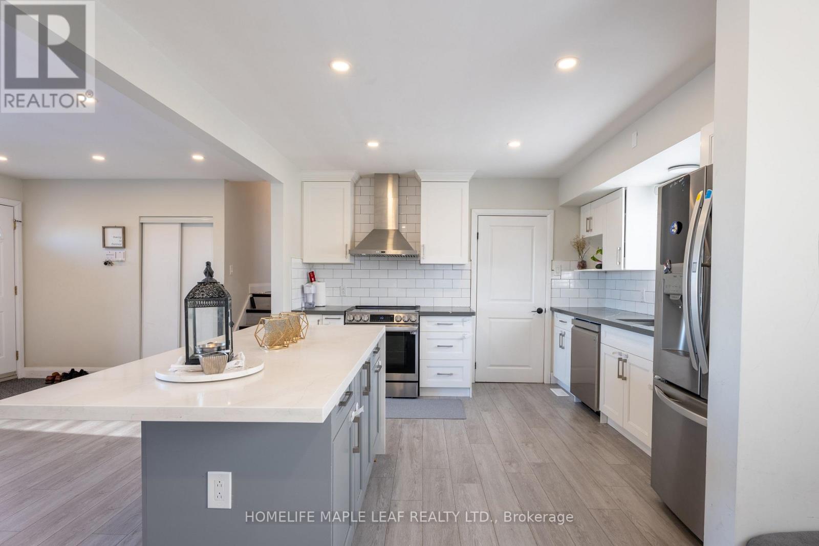 Beautifully Renovated Home with In-Law Suite - Move-In Ready! Welcome to this stunning, fully renovated home featuring an open-concept living area perfect for modern living. The sleek white and grey kitchen boasts beautiful wood cabinetry, a waterfall island, and plenty of storage space, making it the heart of the home. Just a few steps up, you'll find three spacious bedrooms and a stylish, updated 3-piece bathroom with a standing shower, providing comfort and convenience for your family. The lower level offers a private in-law suite, complete with two bedrooms, a full kitchen, a 3-piece bathroom, and a storage room-ideal for extended family or rental potential. Key Highlights: Fully Renovated in 2022-2023 , including all new plumbing , flooring and paint Roof shingles replaced in July 2023.Prime location, just 5 minutes from Walmart, Canadian Tire, Home Depot, and other amenities. Easy access to Highway 401 with three main exits and close proximity to the Toyota plant. This home is the perfect blend of modern design, practicality, and location. Don't miss this incredible opportunity to own a move-in-ready property in a highly sought-after area! (id:64974)