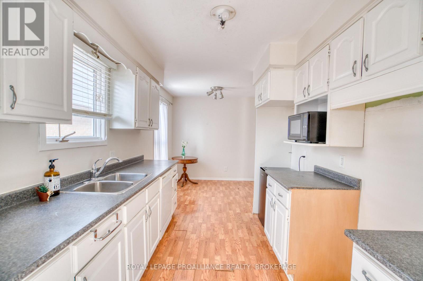937 Killarney, is a 3+1-bedroom home in Kingston's west end, offering space and natural light throughout. The main level features a good-sized foyer with built-in bench seating, hooks and shelving - a practical and welcoming entry point. The living and dining areas are filled with sunlight thanks to their south-facing exposure. The kitchen offers plenty of cabinetry, a large pantry and a breakfast nook with a bright window. Upstairs, there are three comfortable bedrooms, including a sunny primary suite with a large walk-in closet complete with its own heat vent. The lower level offers a fourth bedroom with a 3-piece bathroom, a rec room, and storage space in the utility room. Access the private backyard off the dining room to a south-facing deck. Enjoy additional backyard privacy with the mature cedar hedge - perfect for relaxing or entertaining. A covered front porch and attached single-car garage add everyday convenience. Notable updates include high-quality patio doors (2021), a premium steel storm door (2021), a Reliance rental hot water tank (Feb 2026), and a furnace serviced annually (most recently Dec 2025). Carpets were professionally cleaned in February (2026). The roof is in good condition. This home requires your finishing touches. Ideally located just minutes from Costco, Farm Boy, Shoppers Drug Mart, Tim Hortons, the library, and more - with quick access to Princess Street and Centennial Drive. (id:64974)