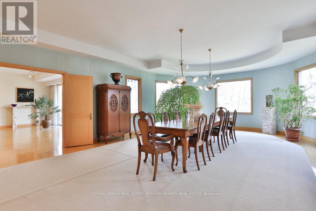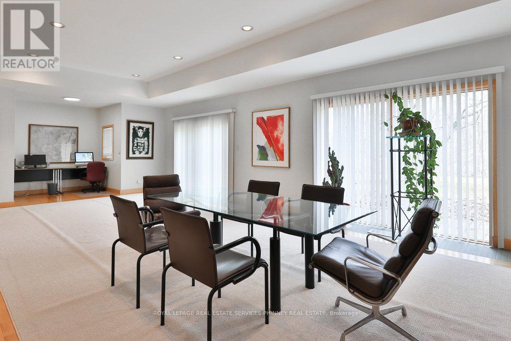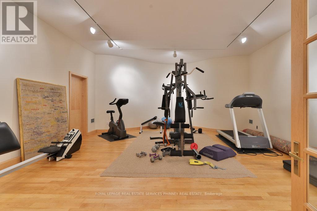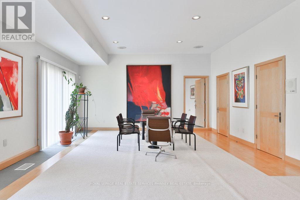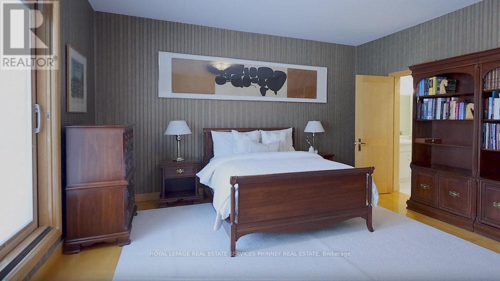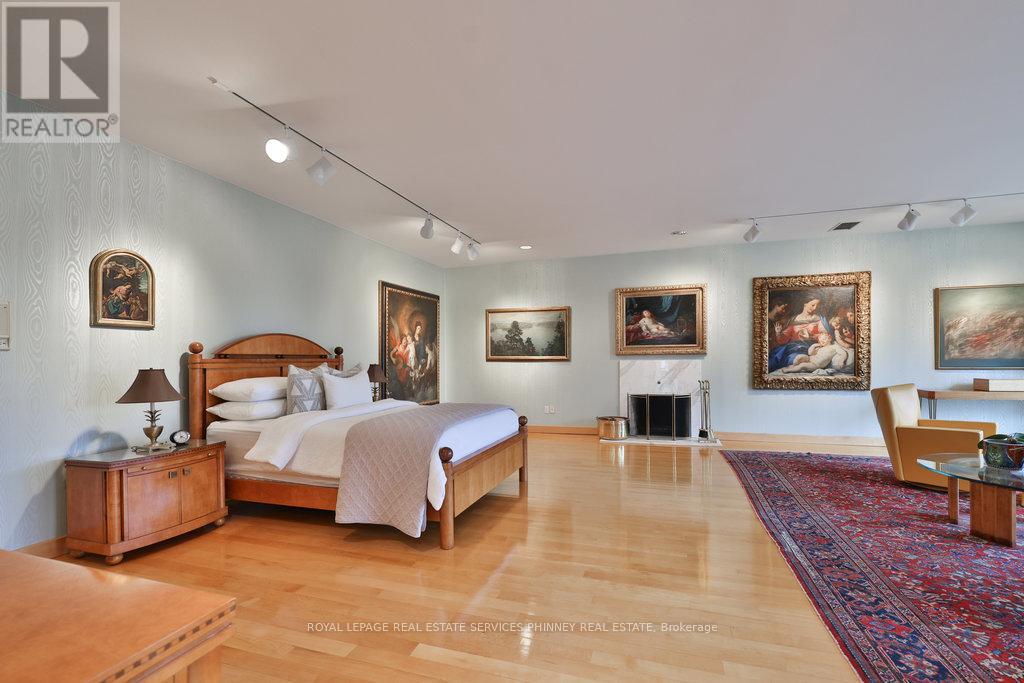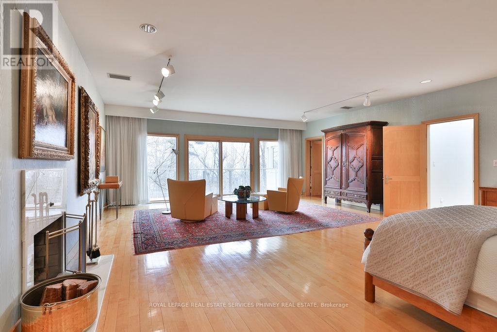 Bauhaus Masterpiece in Lorne Park Estates. This architectural gem, designed by Joseph A. Medwecki, sits on a private ravine lot with stunning lake views and nearly 12,000sqft of living space. Offering unparalleled privacy and natural light, this 7-bedroom home spans three levels, ideal for multi-generational living or staff accommodation. Features include 10-ft ceilings, maple hardwood floors, pot lights, and multiple marble-surrounded fireplaces, blending sophistication and comfort throughout. The main floor is designed for entertaining, offering a library, a grand formal living room that flows seamlessly through double doors to the expansive formal dining room- an elegant setting for hosting guests. The chef-inspired kitchen boasts high-end appliances& blue quartz countertops. For added convenience, a main floor bdrm w an ensuite creates an ideal space for a nanny or guests. The upper level reveals a luxurious primary retreat complete w a spa-like 5pc ensuite and a private balcony offering mesmerizing lake views. A 1,529-square-foot rooftop terrace your personal oasis with panoramic views of the lake, an idyllic place to relax and unwind. The lower level is a haven of relaxation and entertainment, ft five walk-outs to the rear gardens, flooding the space with natural light. It includes a private spa room with a hot tub and sauna, a secondary primary suite with a 4-piece ensuite, a gym, games room, and a 1,200-bottle wine cellar. A 3-bay garage accommodates 5 cars, with space for 10 more in the driveway and additional parking near the street. This home is not just a residence it's a statement, a one-of-a-kind masterpiece that beckons those with the most refined tastes. Experience the extraordinary and make it yours today! (id:64974)