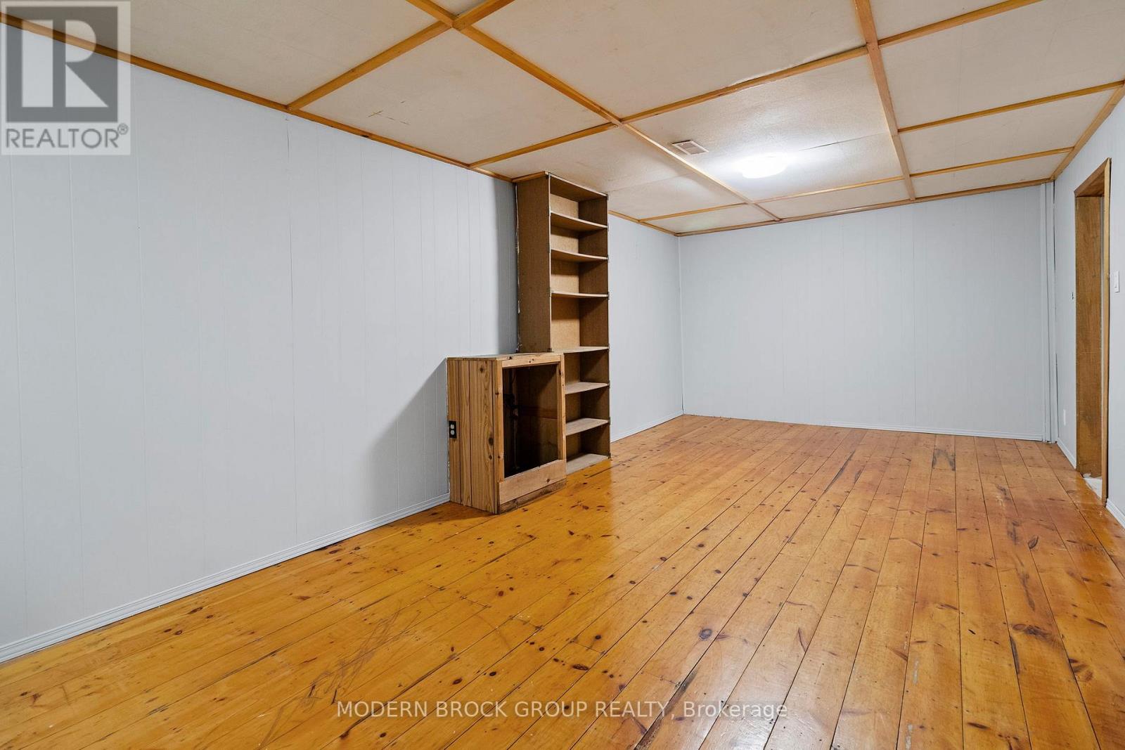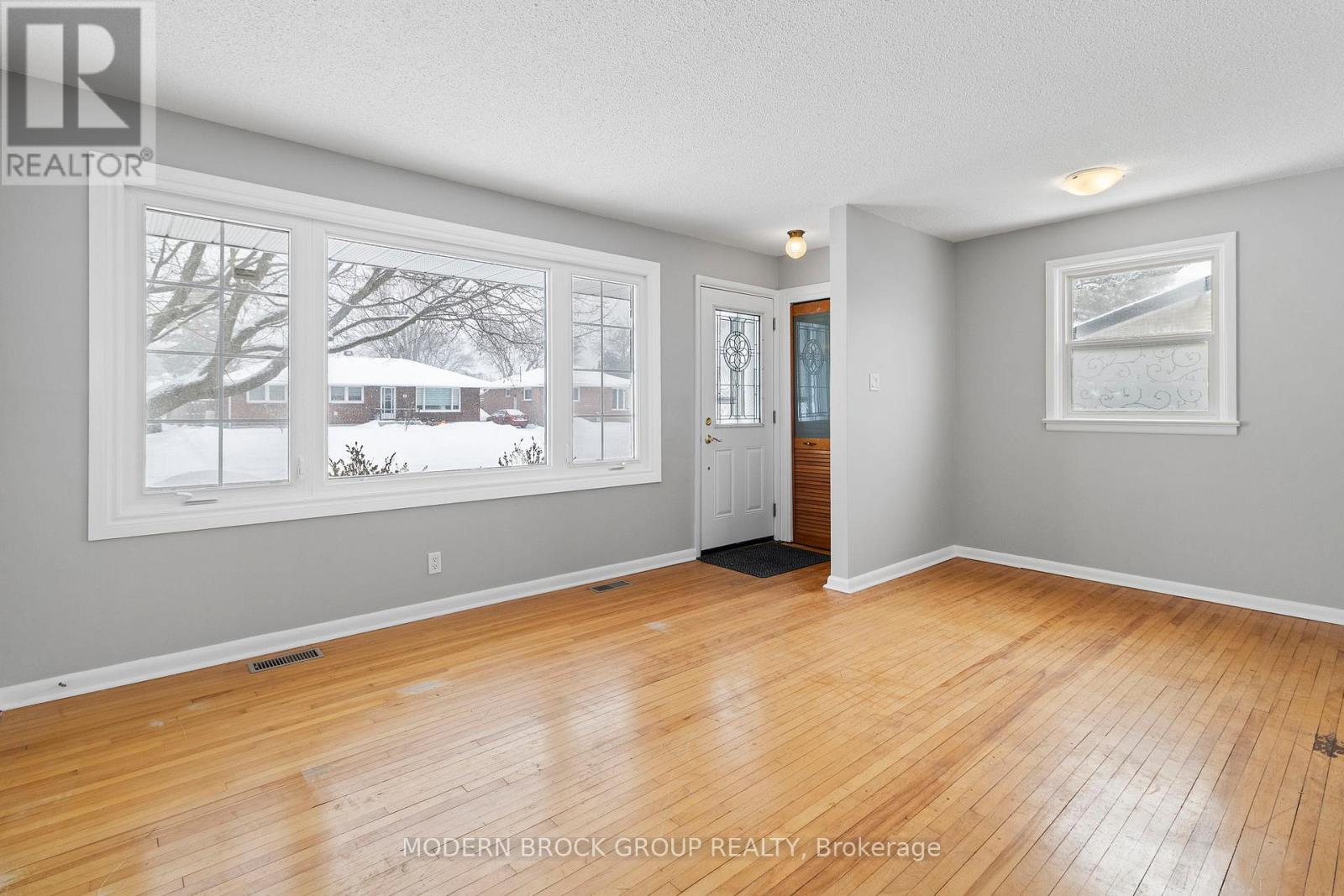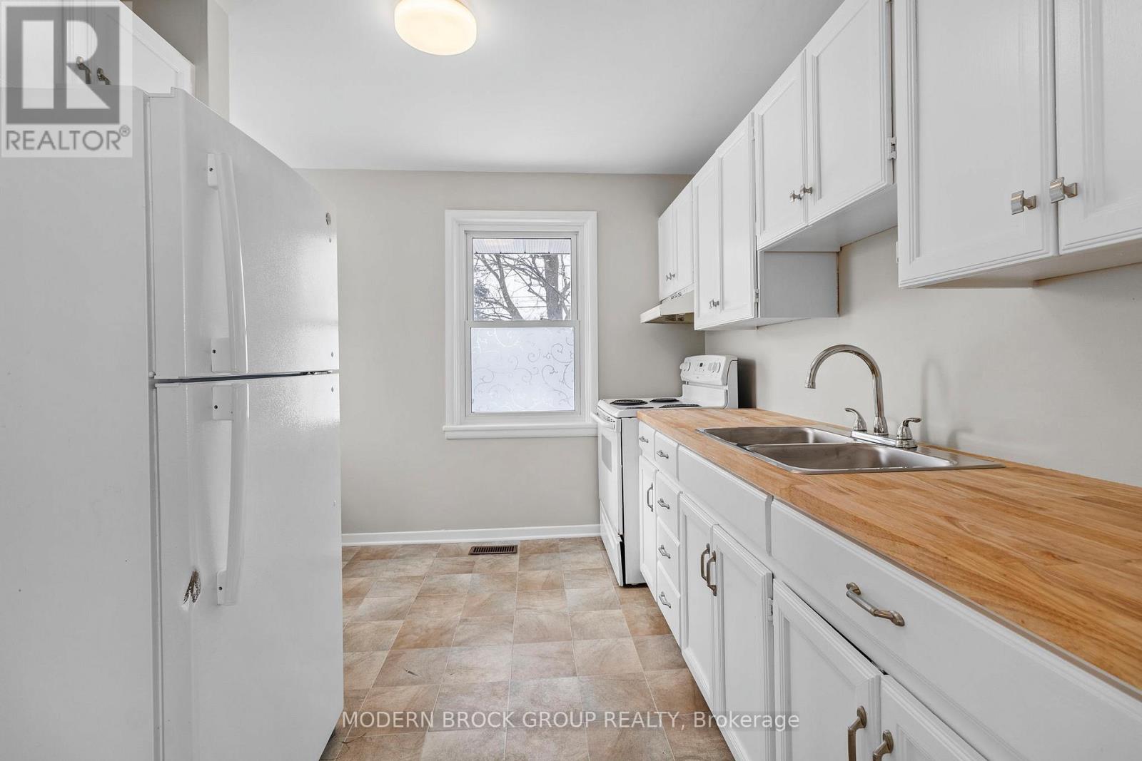 Welcome to this well-maintained 2+1 bedroom, 1 bathroom brick bungalow, ideally located on a quiet street in central Brockville. Vacant and move-in ready, this home offers a flexible layout, timeless features, and excellent value for buyers looking for comfort, space, and long-term potential. The main level features a bright living room with hardwood floors and large front windows that bring in plenty of natural light. The functional kitchen offers ample cabinetry, butcher-block style counters, and space for everyday cooking, while the adjoining layout makes it easy to personalize over time. Two main-floor bedrooms are well sized and serviced by a full bathroom. Downstairs, the finished basement significantly expands the living space, offering a large recreation room anchored by a cozy fireplace-perfect for movie nights, a home office setup, or a family room. An additional bedroom provides flexibility for guests or hobbies, along with a separate laundry area and plenty of storage. Outside, enjoy a fully fenced backyard with room to relax, garden, or entertain. A detached shed adds extra storage, and the overall lot offers privacy while still being easy to maintain. This home is ideal for first-time buyers, downsizers, or investors looking for a solid property in a desirable, established neighbourhood close to schools, parks, shopping, and amenities. (id:64974)