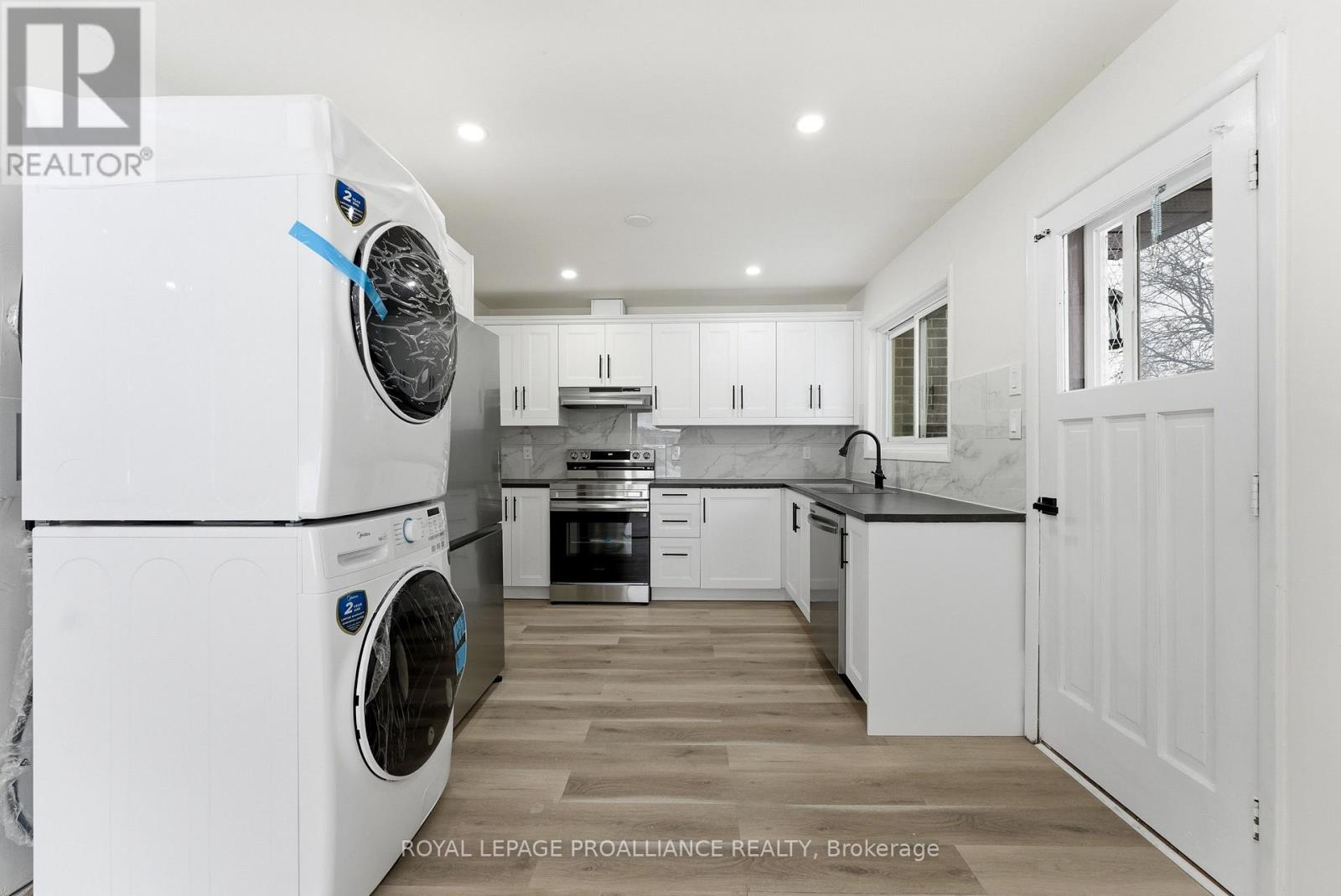 Welcome to 94 Rollins Drive, a beautifully renovated 3-bedroom, 1-bathroom home in the heart of Belleville's highly sought-after East Hill neighbourhood. Completely updated from top to bottom, this home offers modern style, comfort, and convenience. The bright main level features abundant natural light, pot lights throughout, and a sleek contemporary kitchen with stylish finishes. The upgraded bathroom includes a modern tiled shower surround. In-suite laundry adds everyday convenience. Outside, enjoy a fully fenced backyard, perfect for relaxing, or giving kids plenty of space to play. Ideally located in Belleville's desirable east end, the home sits near Harry J Clarke Public School, with Eastside Secondary School less than five minutes away. You'll also find a bus stop just steps away, making daily errands and commuting easy. The home is smoke free. Property includes 4 parking spaces, central air conditioning. The basement will be leased separately and is not included. Tenant pays for utilities: natural gas, hydro, water& sewer. Credit score, proof of income, letter of employment, ID for all occupants over age 18,references, and first and last month's rent are required with application. ** This is a linked property.** (id:64974)