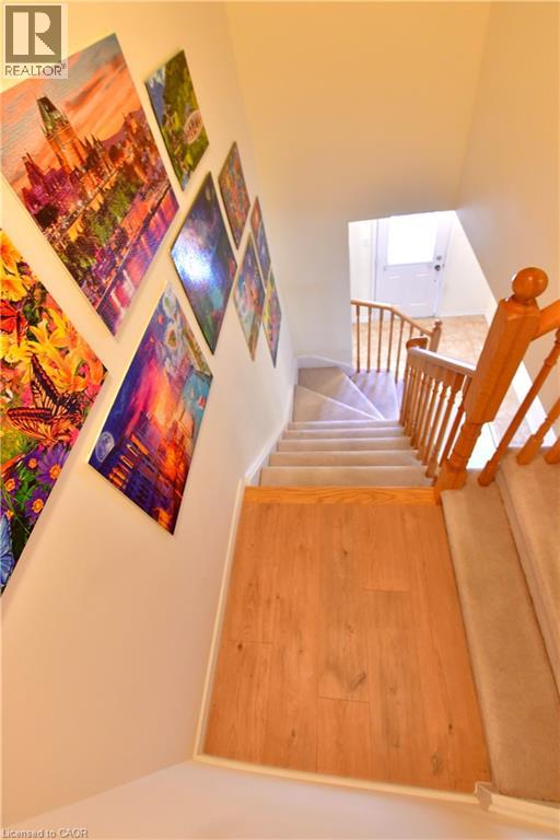 Welcome to this stunning freehold townhouse nestled in the tranquil heart of Breslau. Surrounded by scenic trails and parks, the home sits about 10 km from Fairview Mall and in proximity to schools — the perfect balance of peaceful living and everyday convenience. This smoke-free, first-owner home features a versatile main floor with a bright living room, dining room and kitchen, which would impress you with glass cabinets, raised breakfast bar, pendant lighting, under cabinet lighting/valence and deep cabinet above Fridge. The upper level offers a primary bedroom with 4-piece ensuite and walk-in closet, two additional bedrooms sharing a second 4-piece bathroom, and a conveniently placed laundry closet. Thoughtful upgrades include a widened driveway, new front steps, hardwood flooring throughout the living room and all bedrooms, tiled main hall, updated laminate in the upper hallway. The home is also Energy Star Certified with a Heat Recovery Pipe and Air Exchanger for year-round fresh air circulation. Outside, a private Swim Spa and Gazebo create a relaxing backyard oasis with minimal upkeep. Architectural drawings available for all floors, garage, and yard. (id:64974)